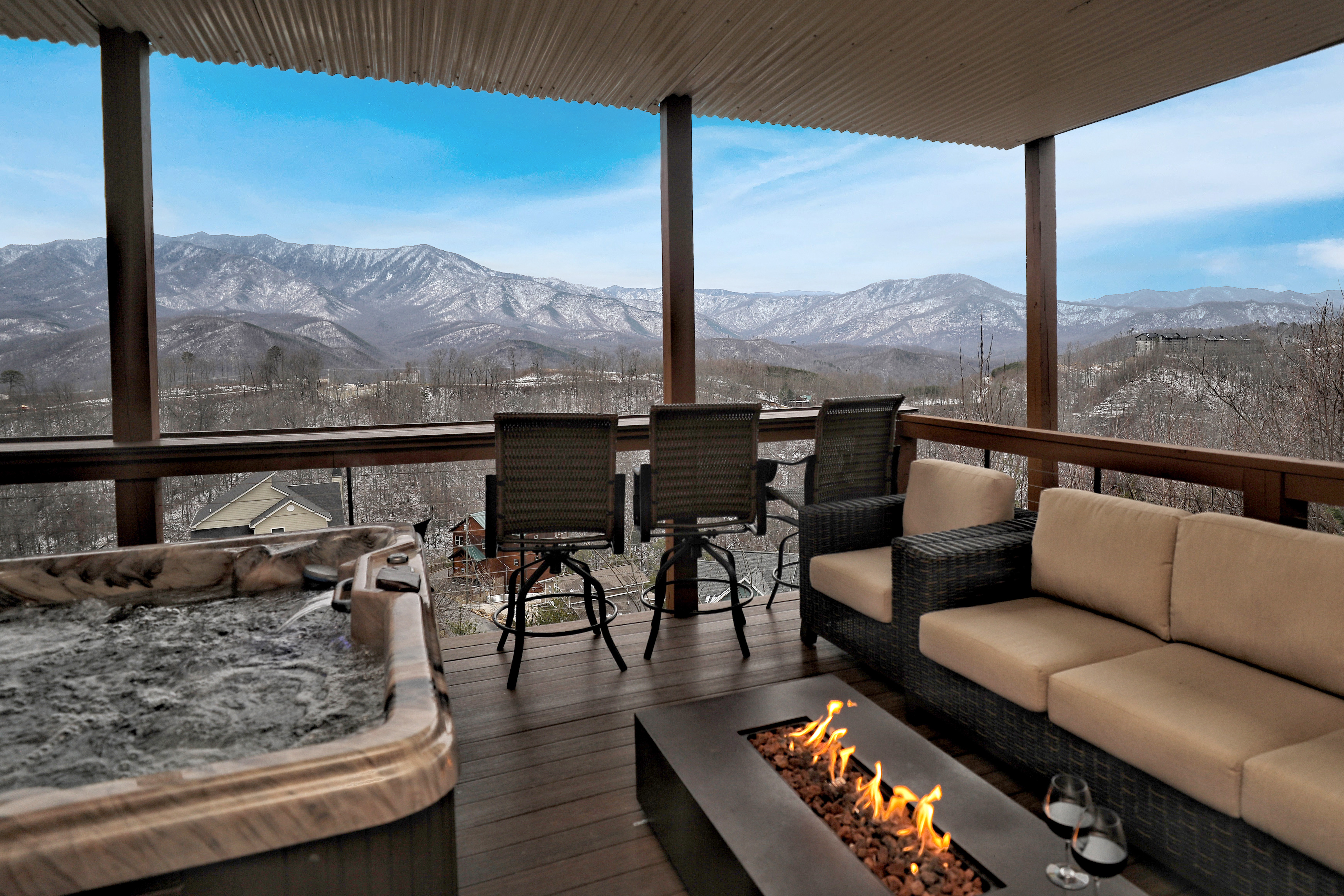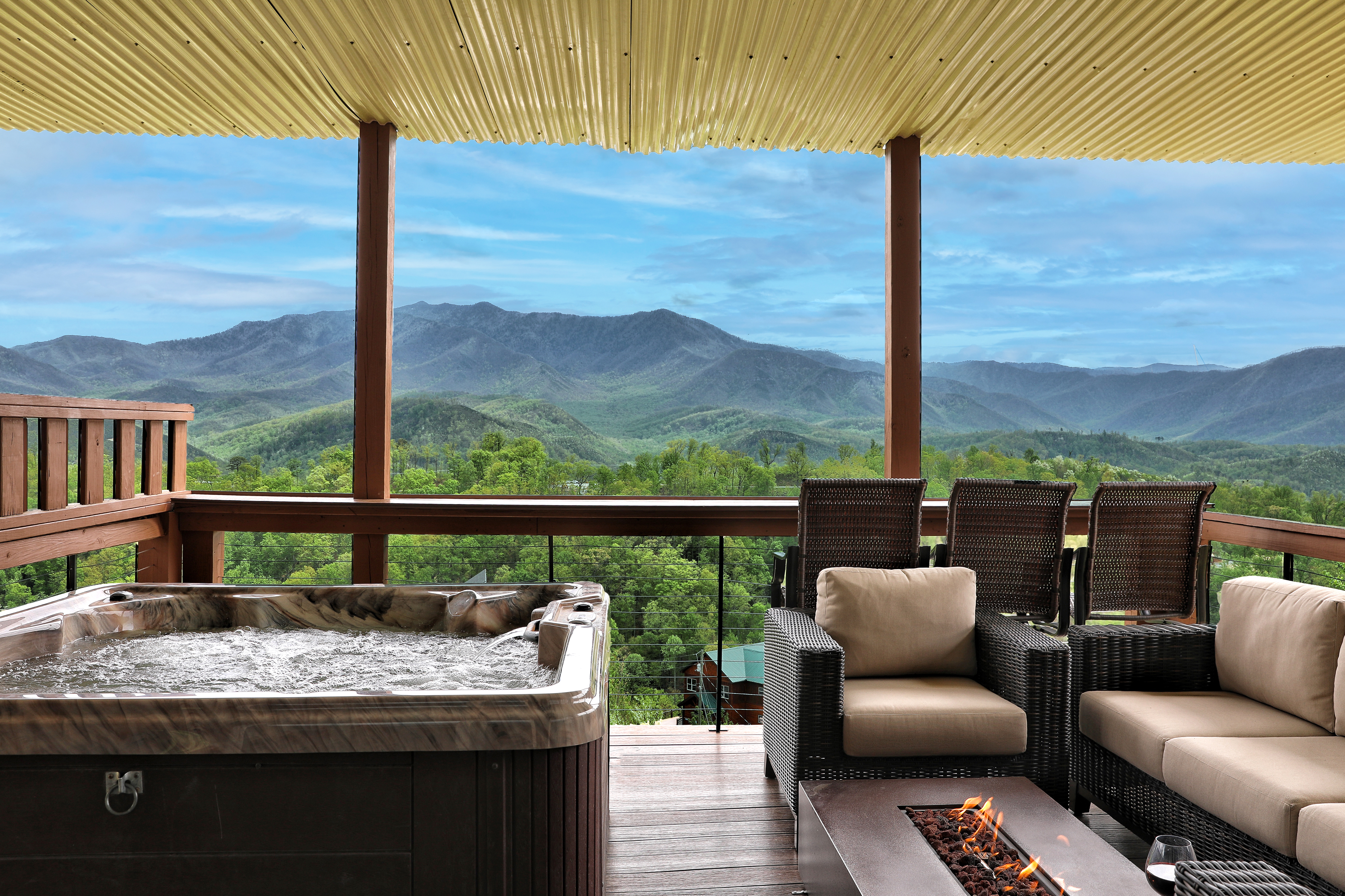 º AMENITIES: Hot tub, game room, fully stocked kitchen, fire pit, gas grill, ample outdoor seating, incredible view.