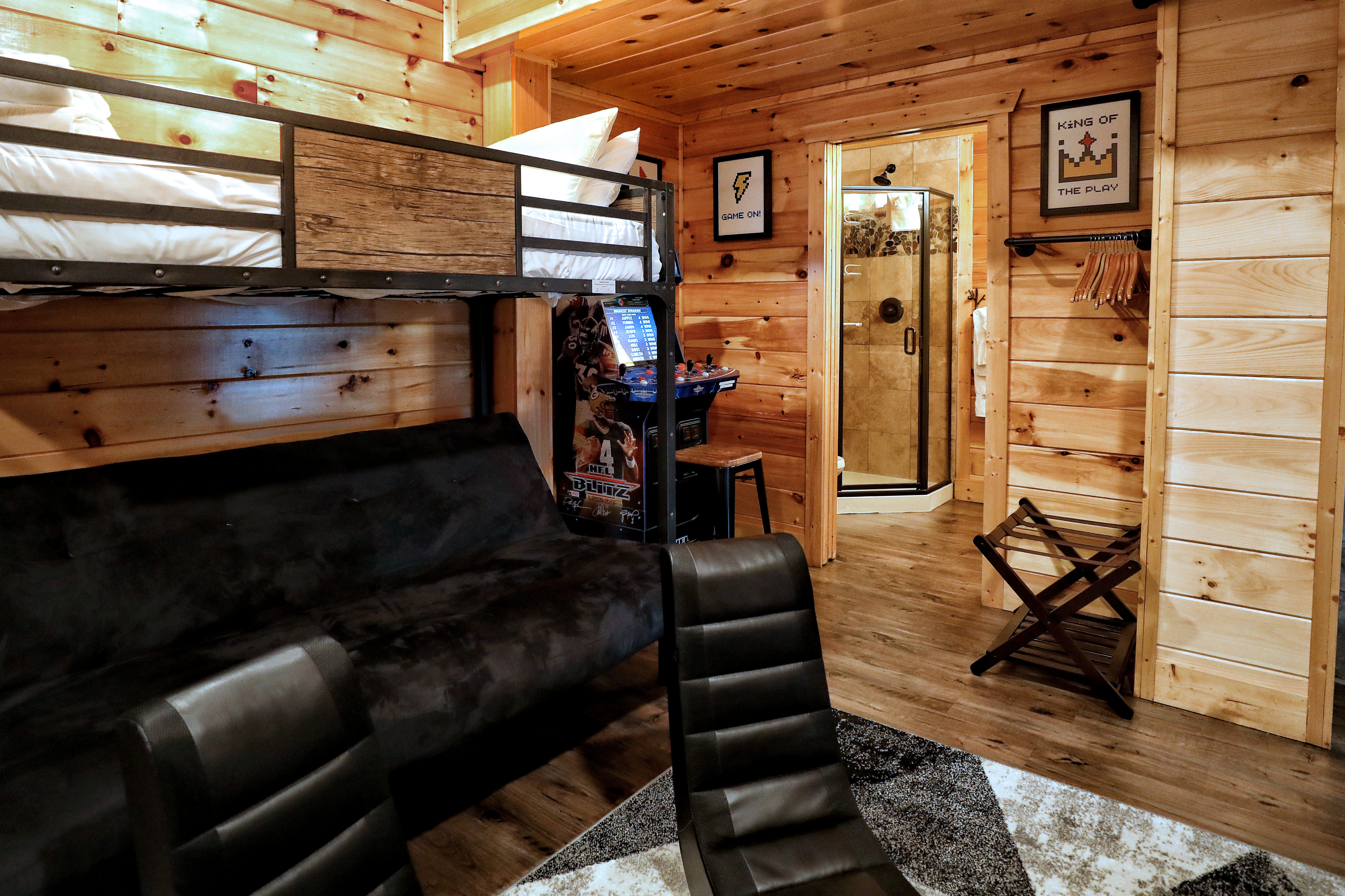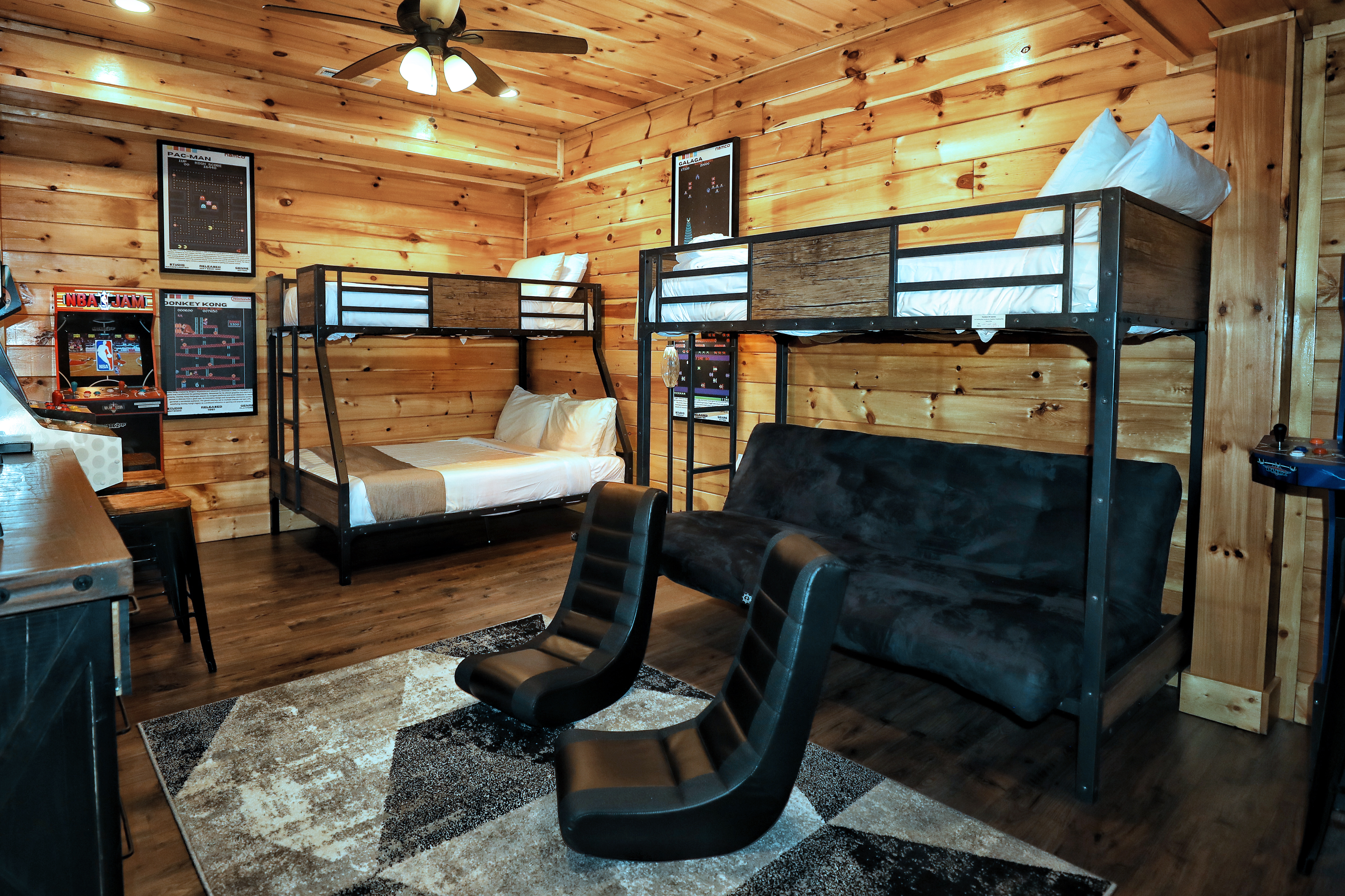 - Sleeping area 5: Bunk bed room includes 2 twin beds and 1 full size bed with en-suite bathroom.