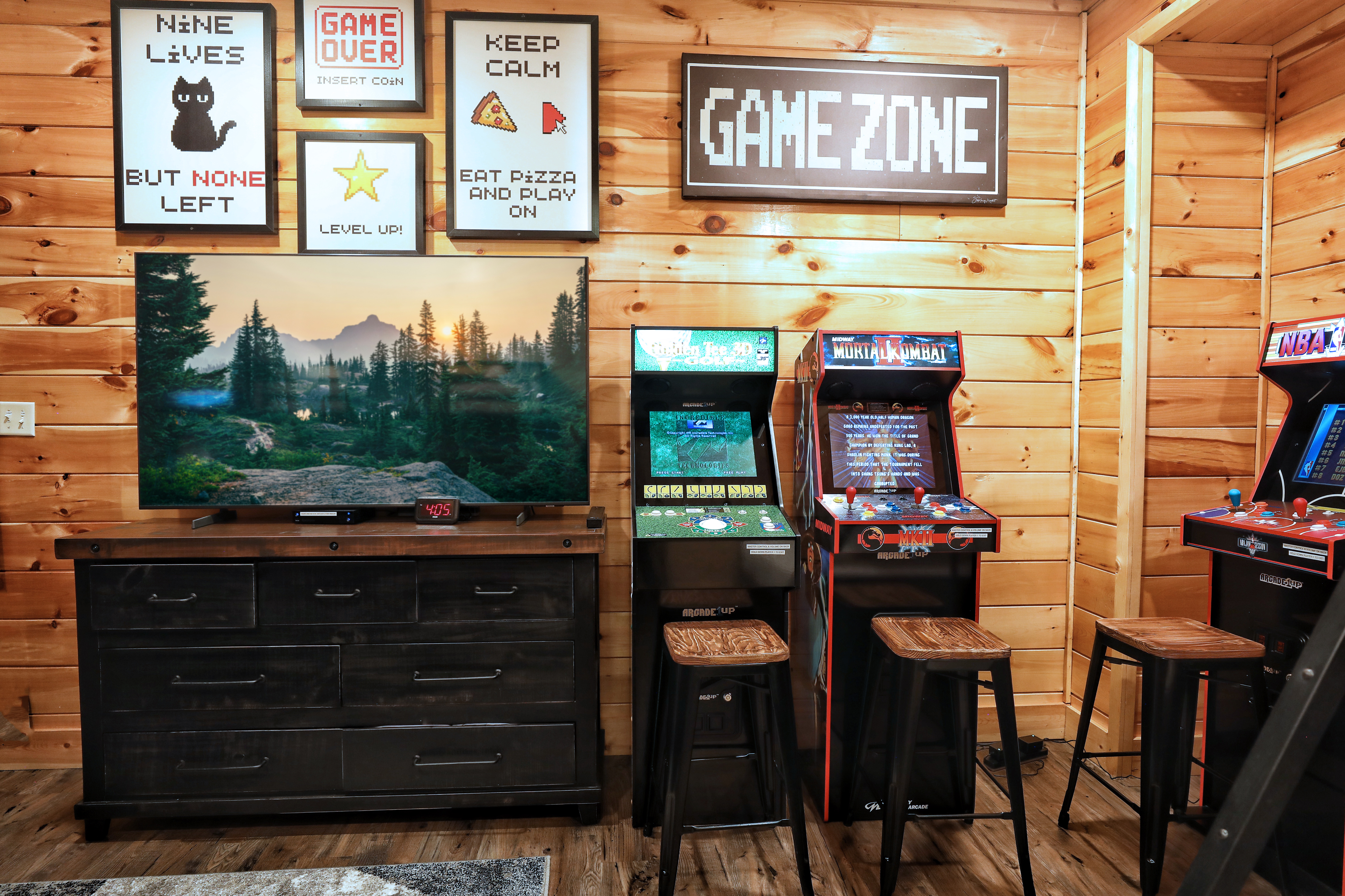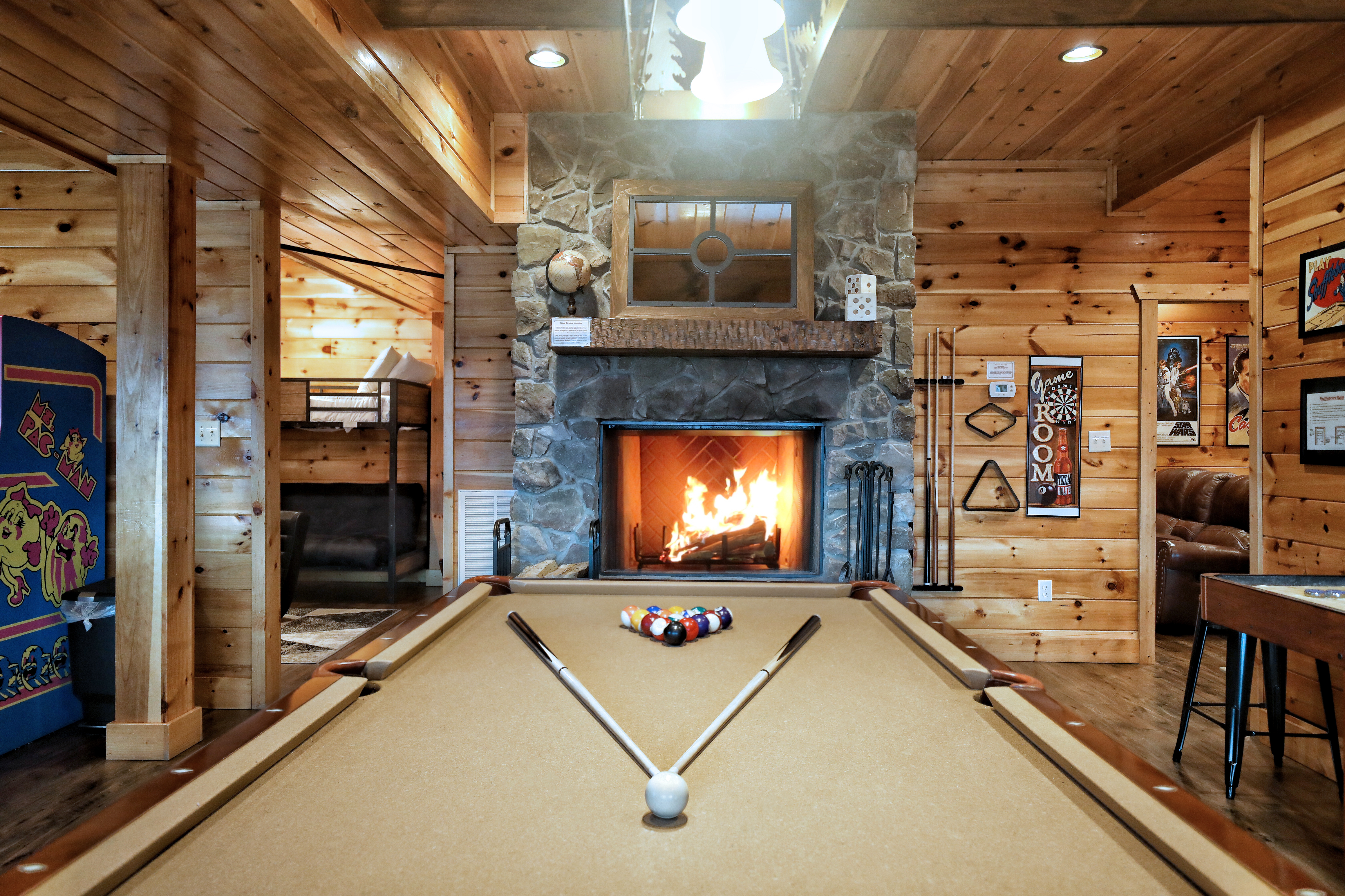 Absolutely Heaven is the ultimate mountain escape, offering a delightful 4-bedroom, 4-bathroom mountain home that immerses you in the breathtaking beauty of the Smoky Mountains. Beyond the four private bedrooms, a cozy bunk room open to the game room provides sleeping space for up to four children and features a selection of stand-up arcade games, making it an ideal retreat for families. With sweeping views of Mt. LeConte, the two expansive decks invite you to soak in the hot tub, dine al fresco, or unwind by the multiple fire pits, all while surrounded by stunning natural vistas. Inside, the cabin flawlessly combines rustic charm with modern comforts. The game room is packed with entertainment options, including pool, shuffleboard, foosball, arcade games, and poker, while a dedicated theater room promises unforgettable movie nights. With the added convenience of covered parking, every detail of Absolutely Heaven is thoughtfully designed for relaxation and enjoyment, ensuring it's the perfect getaway for your next mountain adventure.