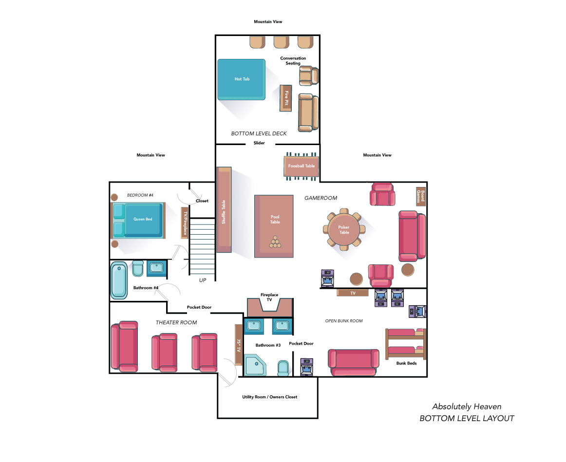 This was our second time to stay at Absolutely Heaven and once again, we were extremely satisfied. Plenty of room for the entire family (8 adults, 5 children), great floor plan, kitchen was well supplied and organized…and simply CANNOT beat the view! LOVE everything about this property.- Melanie T.