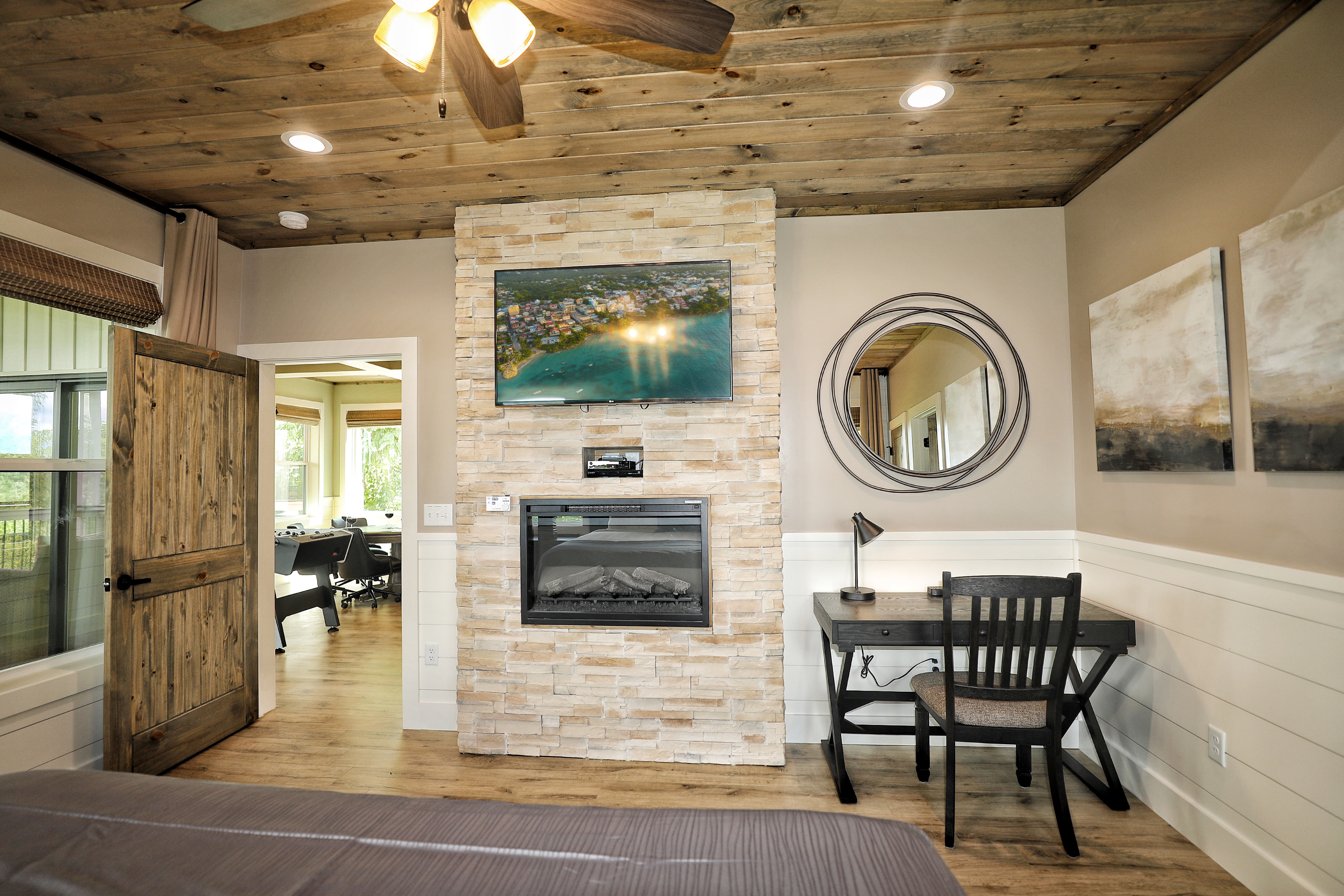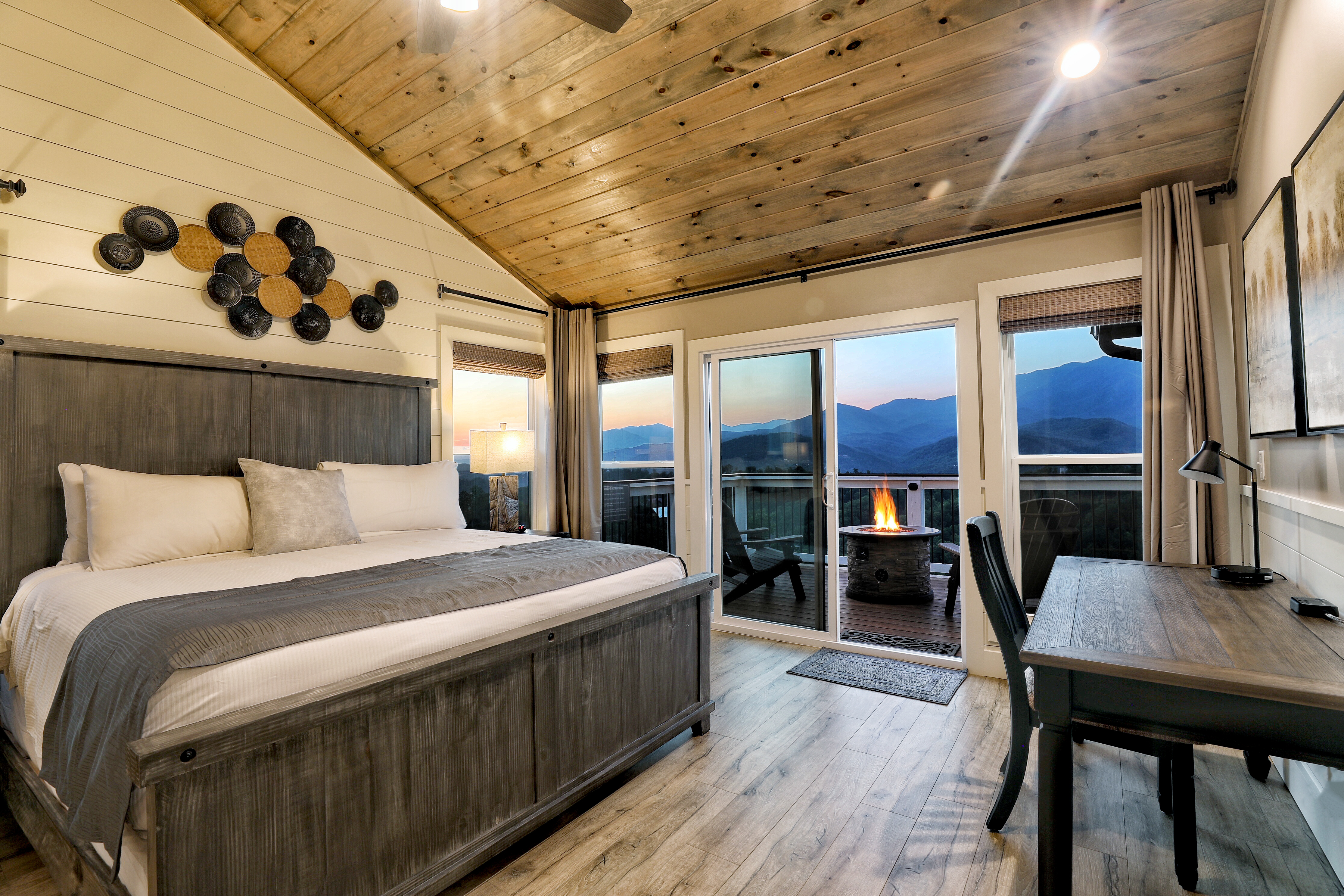 º AMENITIES: Office space, hot tub, game room, fully stocked kitchen, fire pits, gas grill, ample outdoor seating, incredible view.