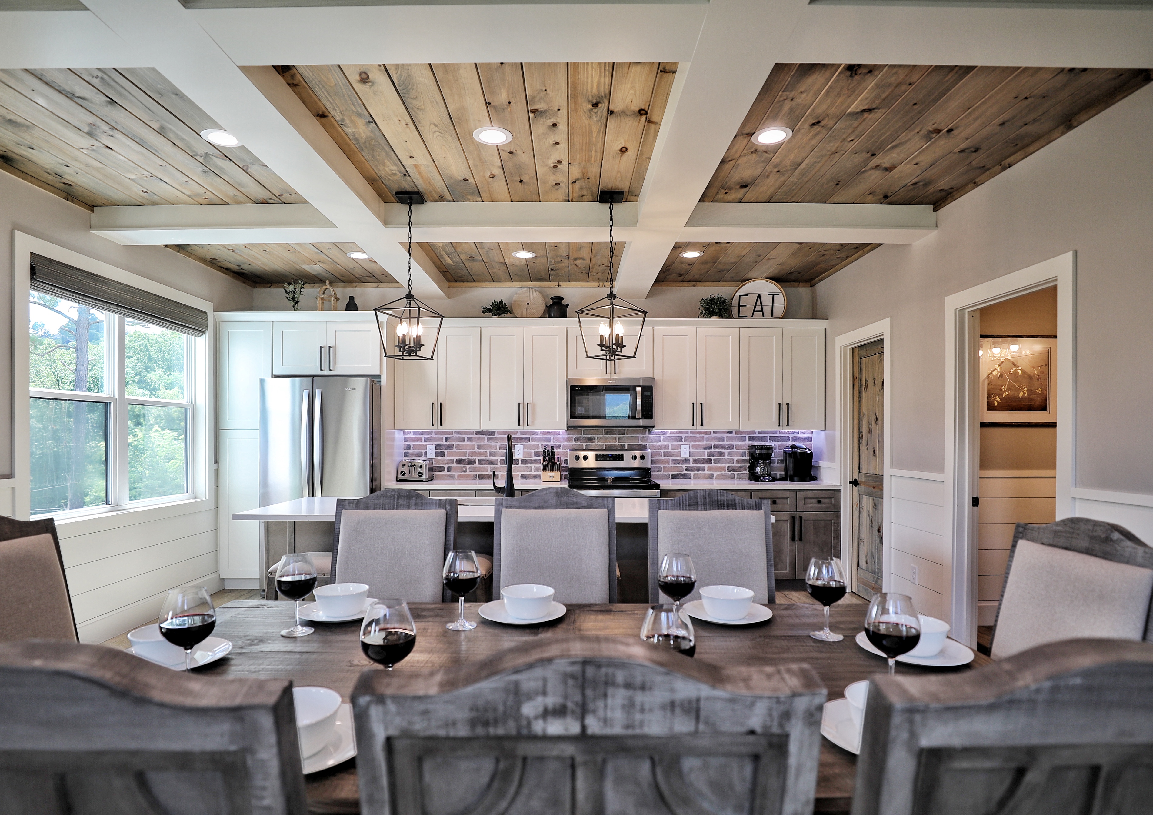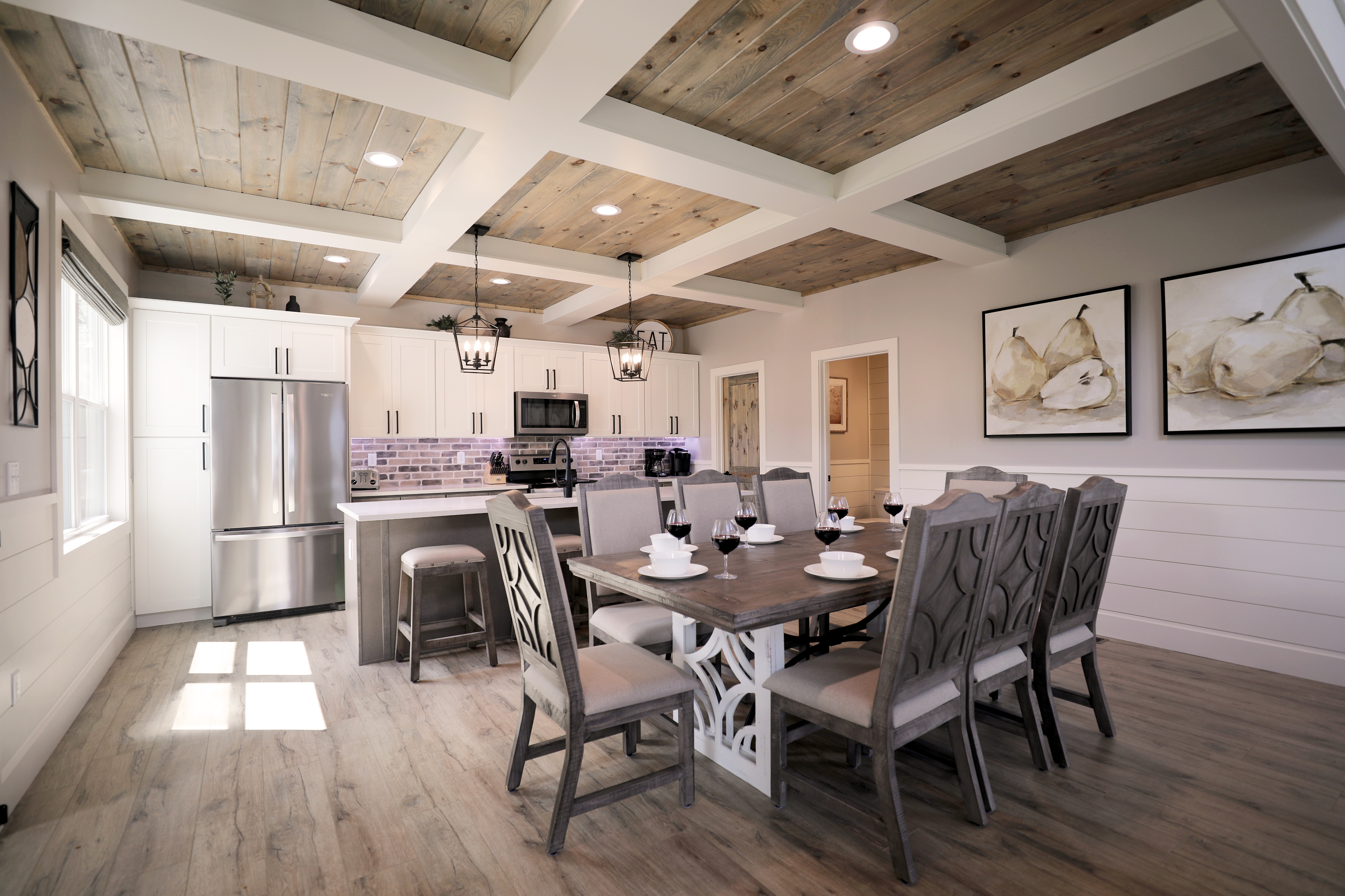 º DINING: Indoor dining for 8, plus outdoor dining table for 8.