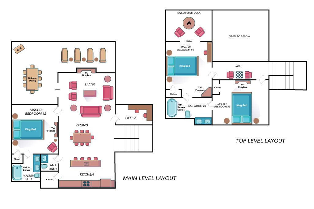 º FLOOR PLAN: The final 2 images in the photo gallery feature the cabin's floor plan.