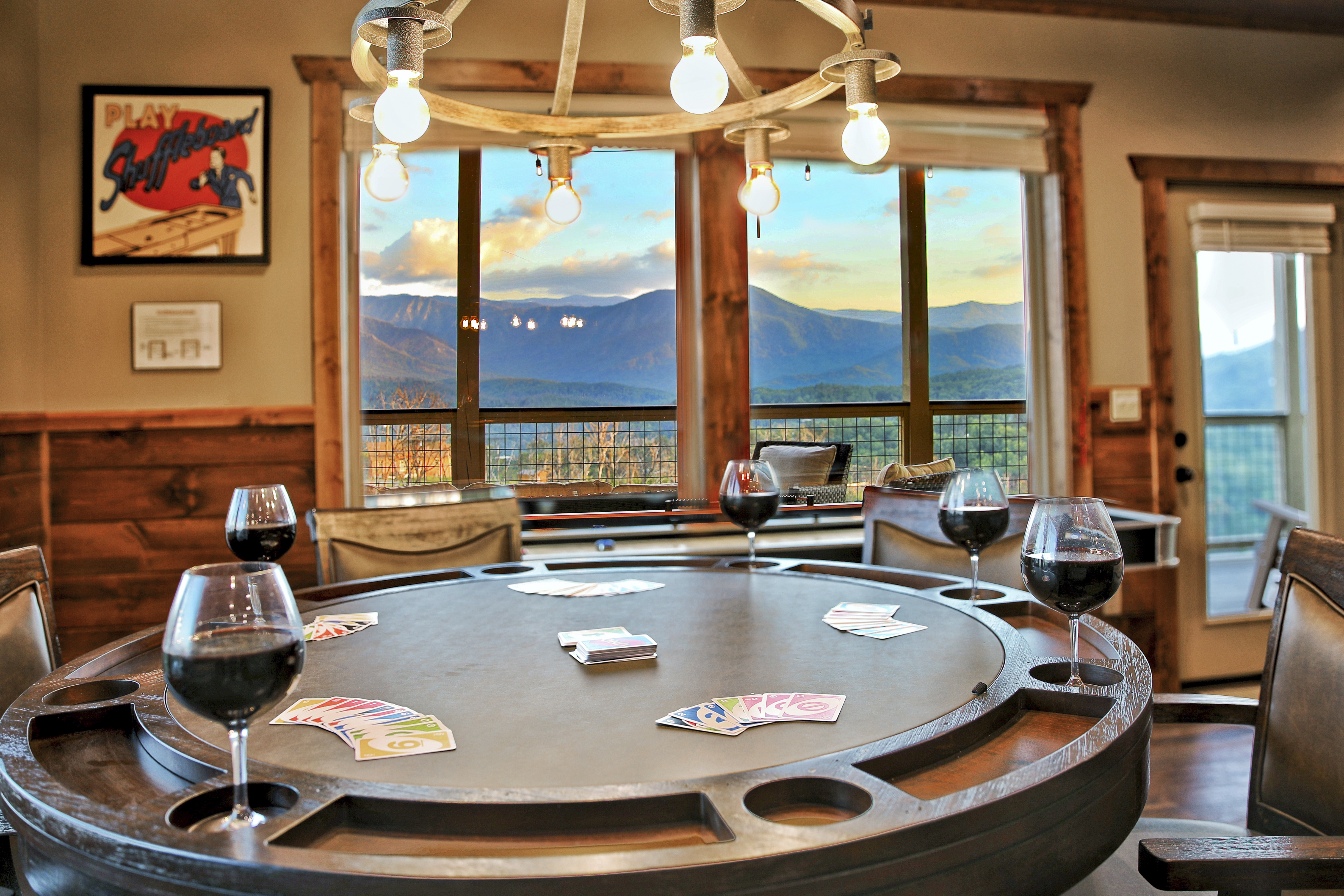 º AMENITIES: Hot tub, game room, fully stocked kitchen, fire pits, gas grill, ample outdoor seating, panoramic view.