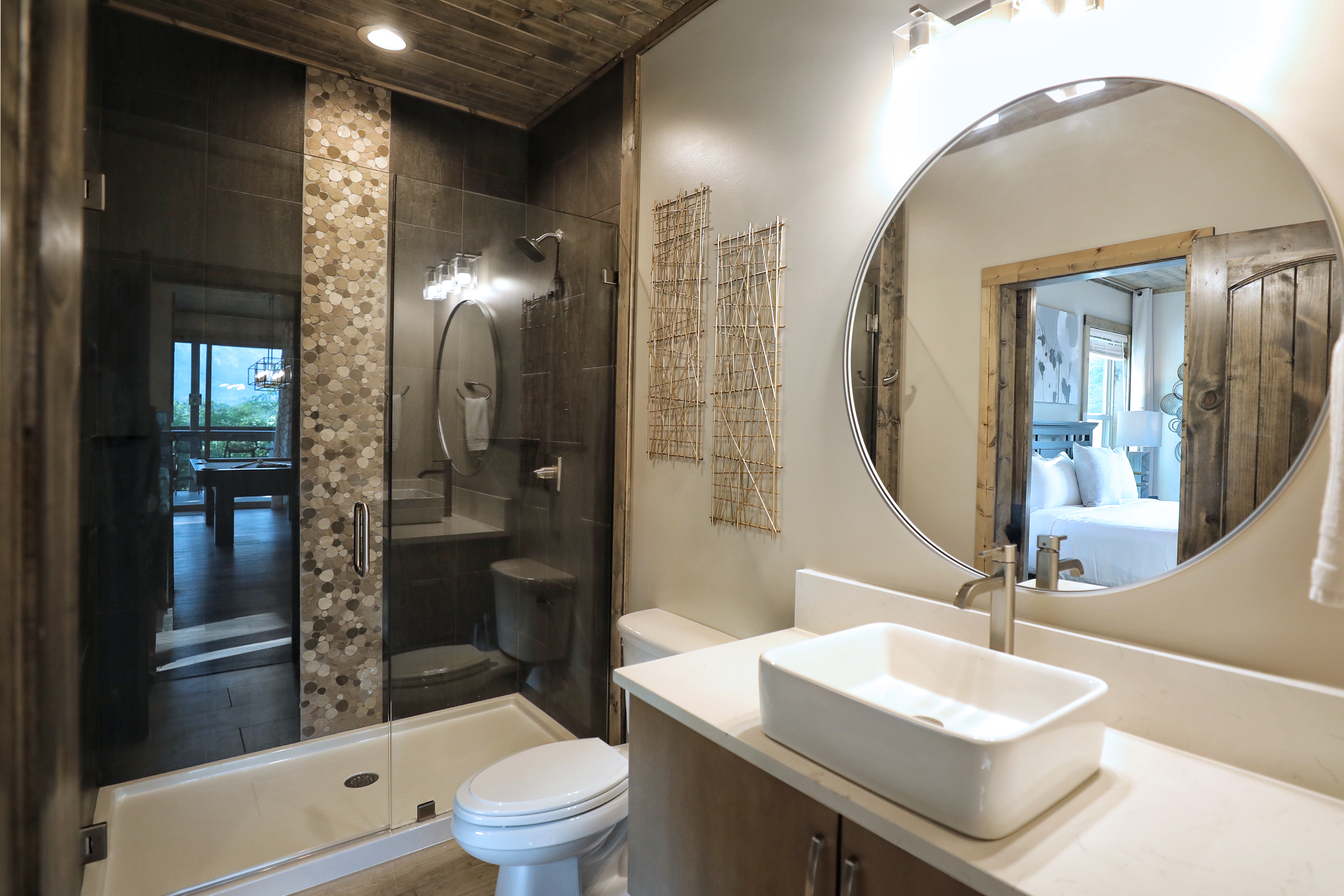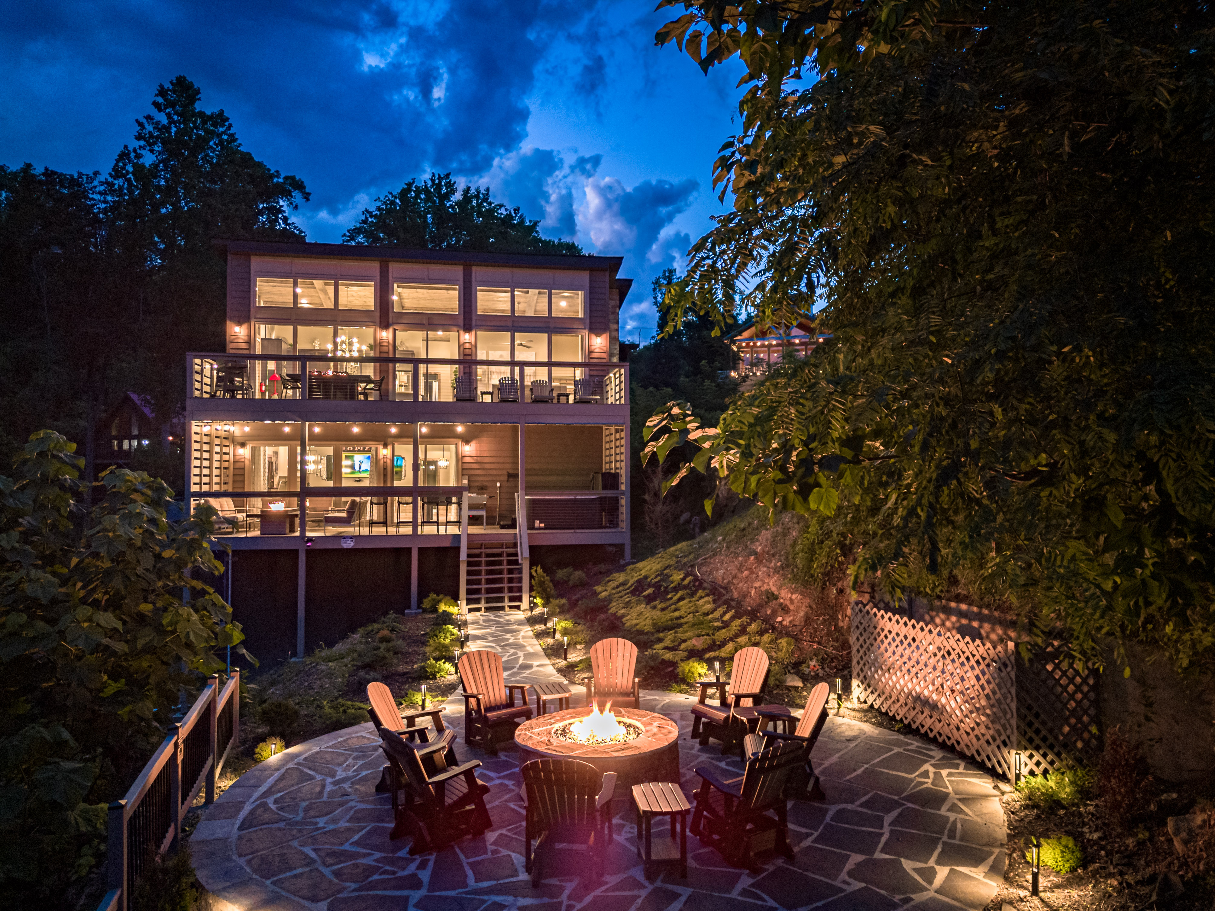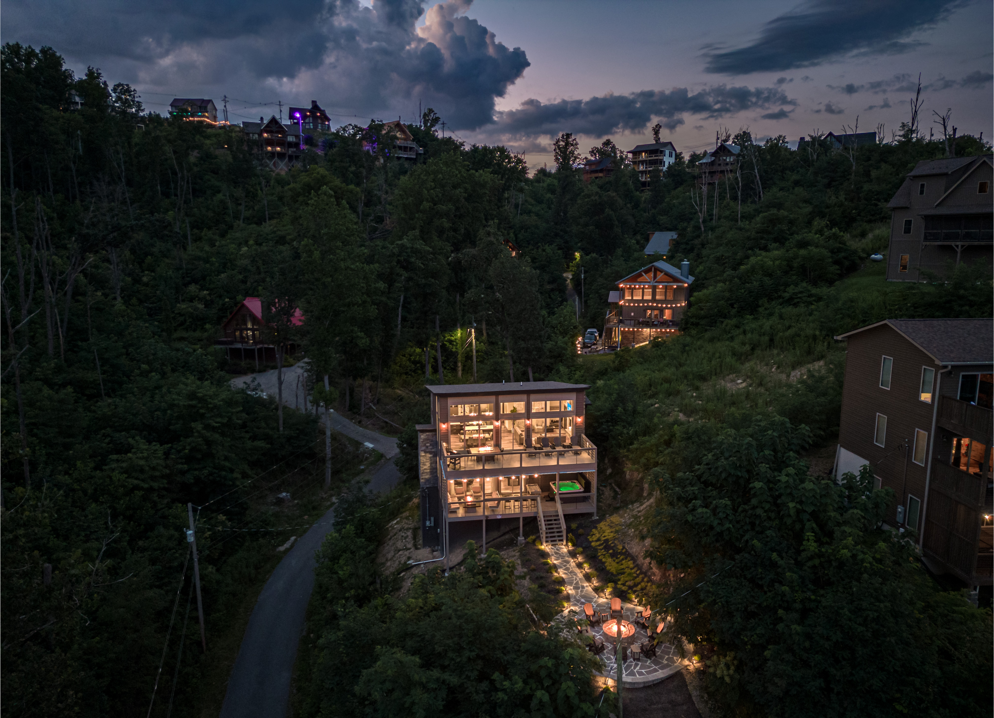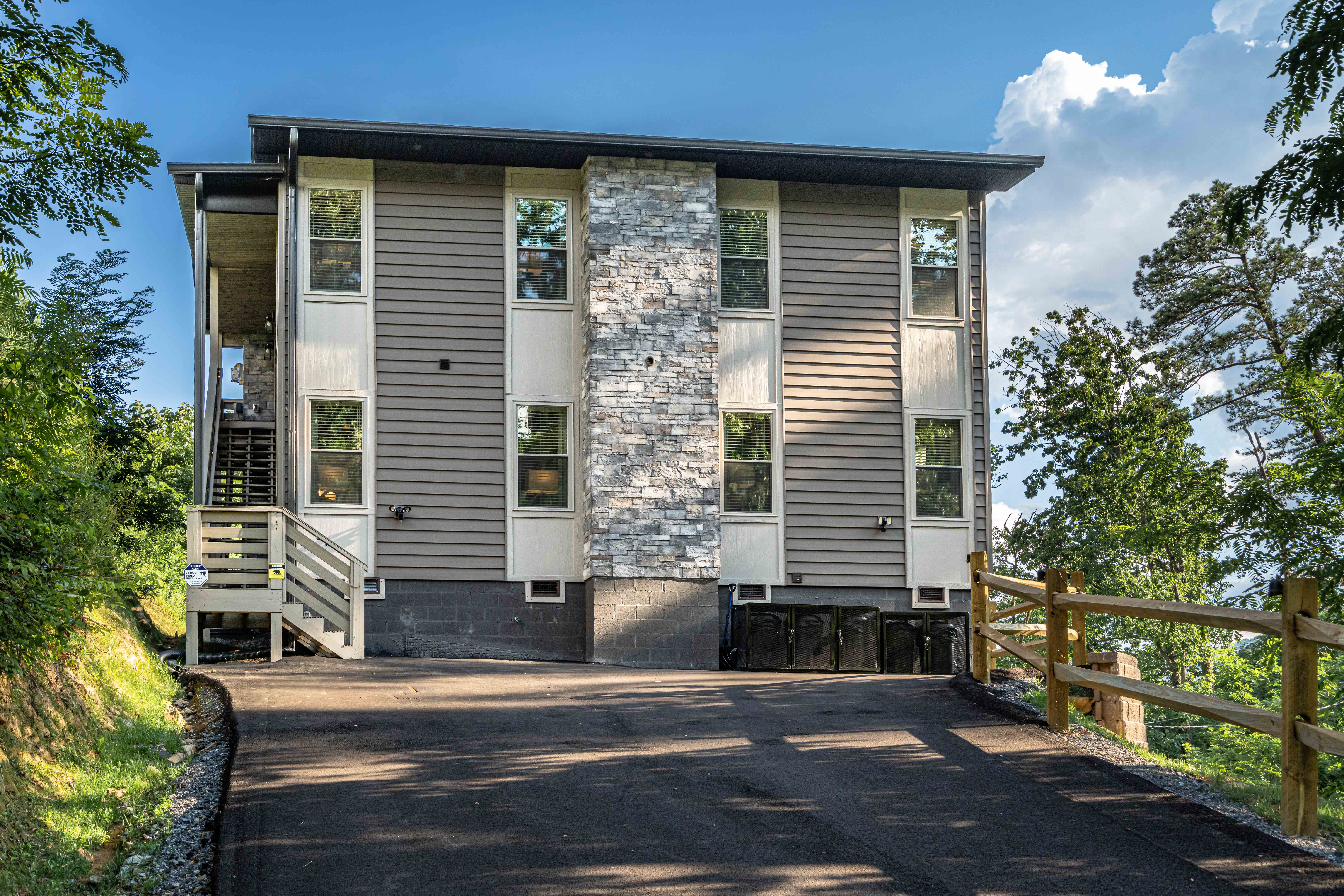 The property was super clean and beautifully decorated with modern decor. The firepit with landscaping out back is so relaxing as is the covered deck with comfy furniture on the lower level with hot tub and gas firepit. We liked that Every bedroom had its own full bath and great system in the theater room with its own mini fridge and plenty of room for pool, poker, or whatever game you chose. Some twists and turns to the property (like most of the properties in this area) but well worth it! After the second day was a breeze.- Sheila