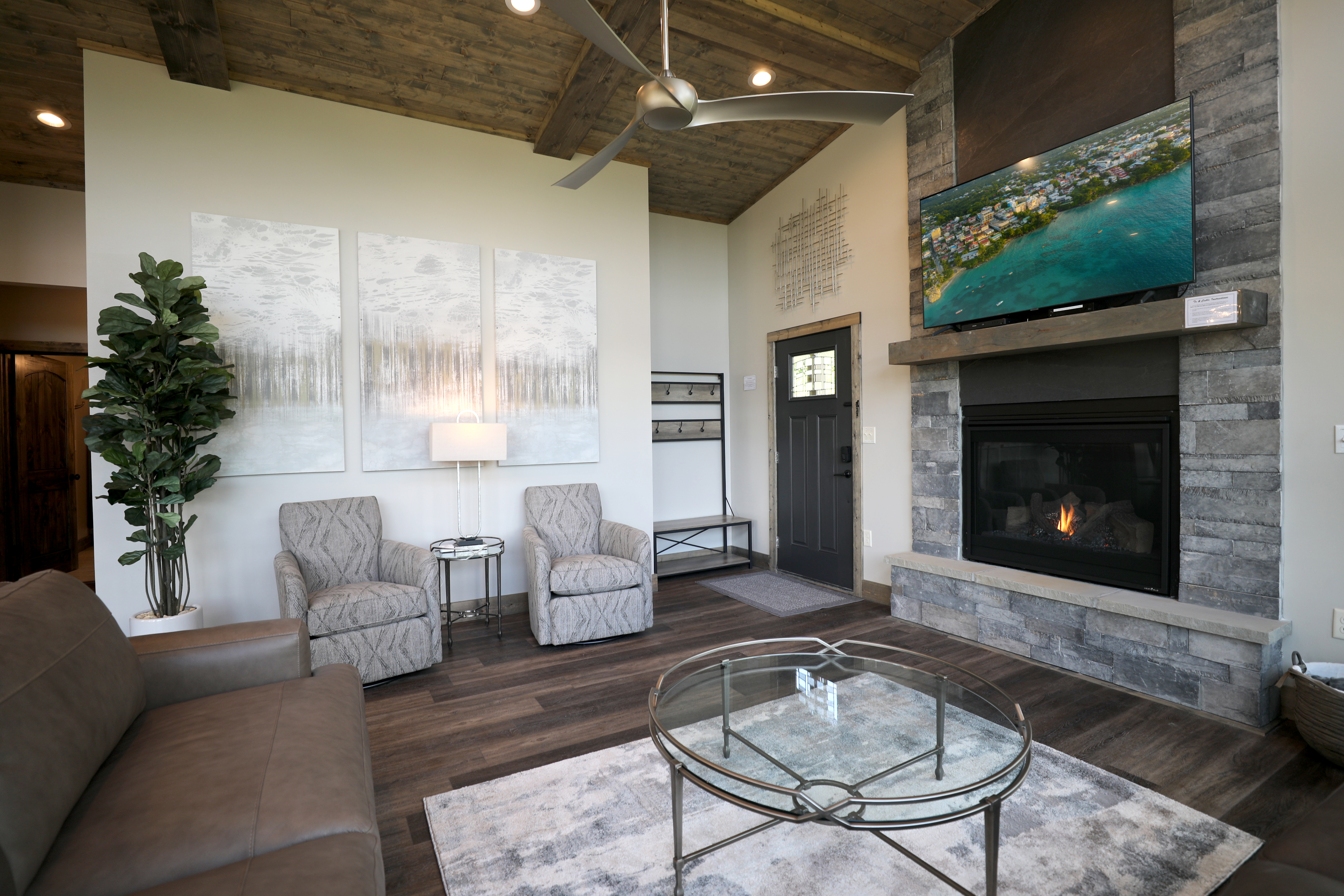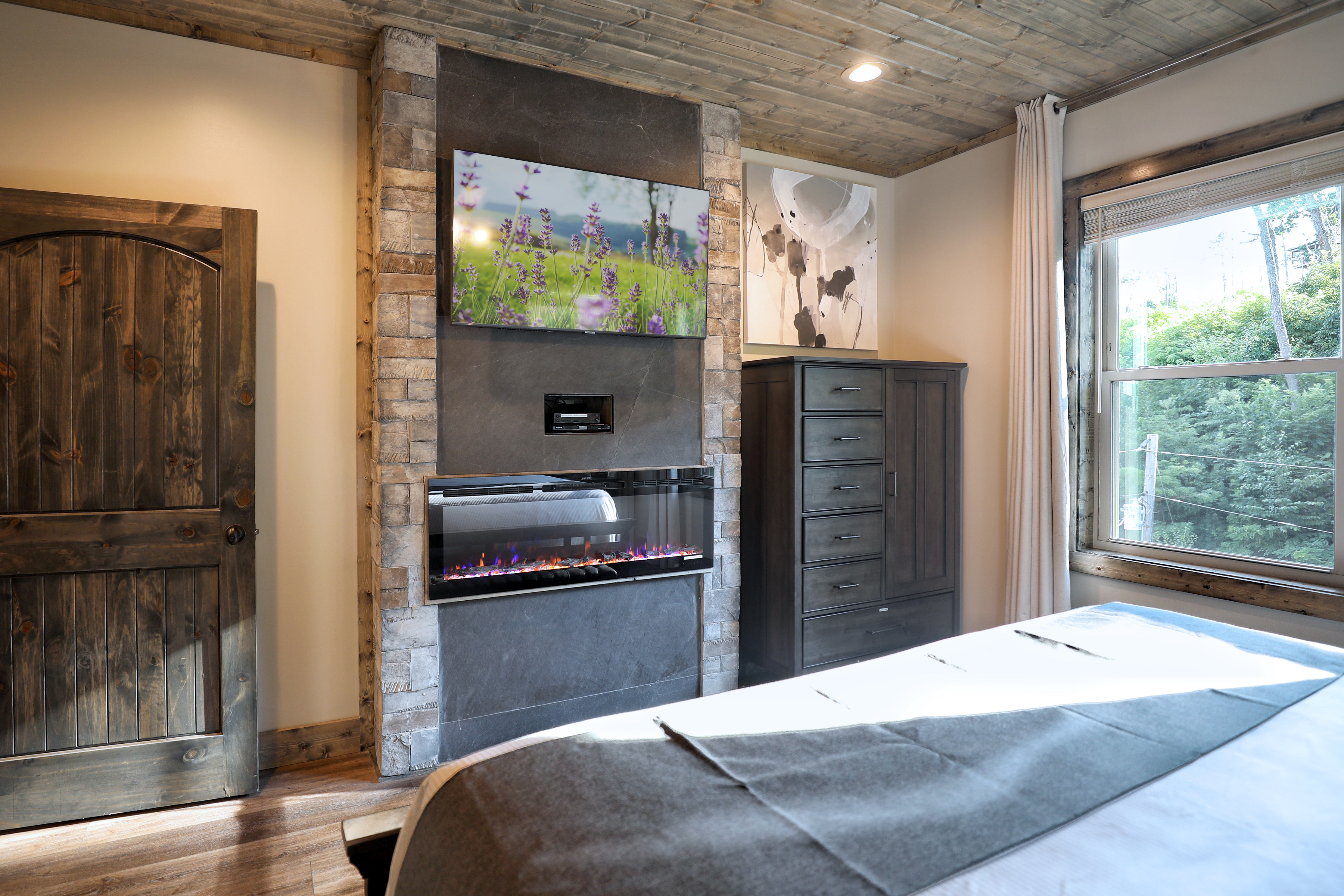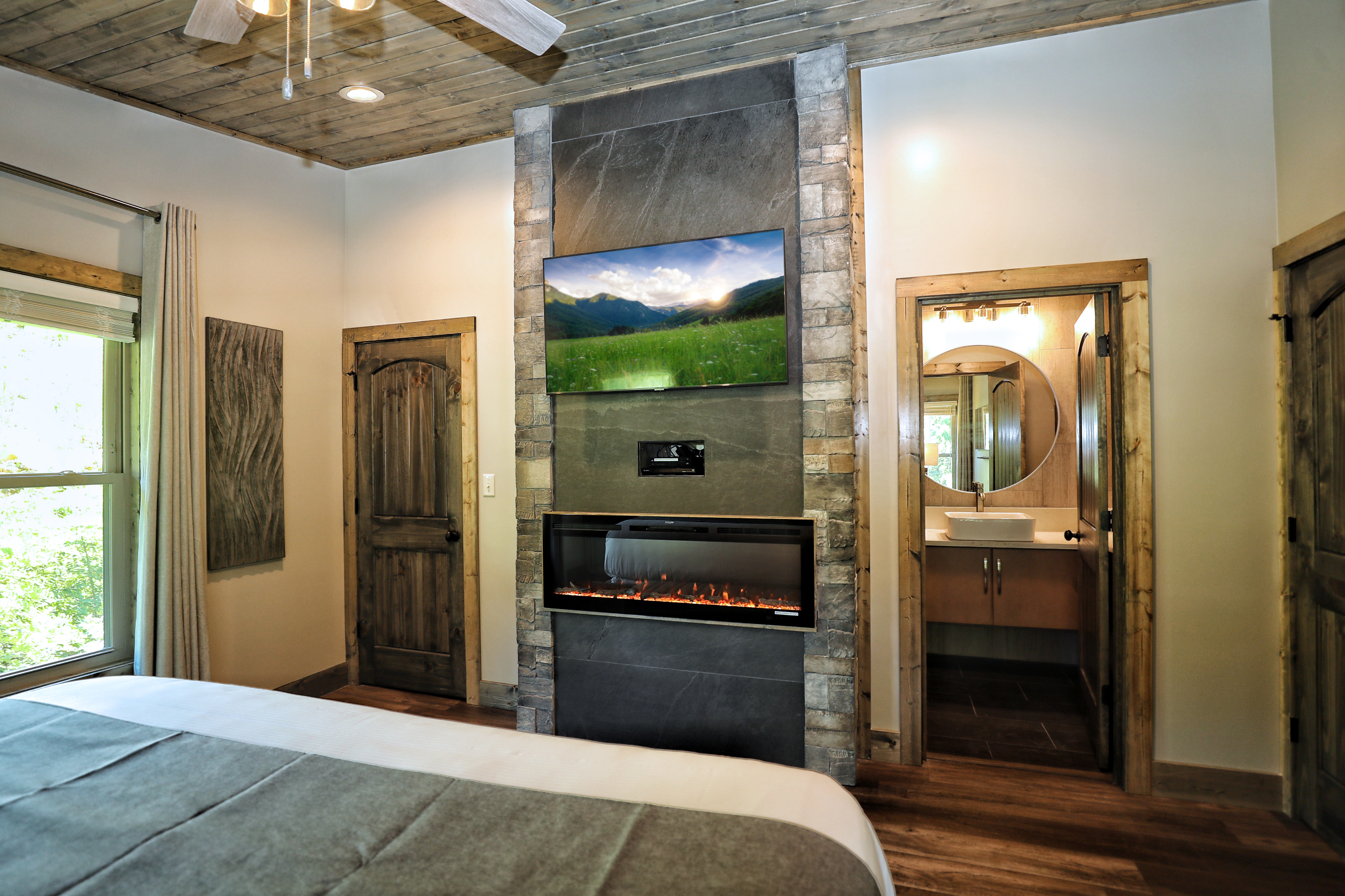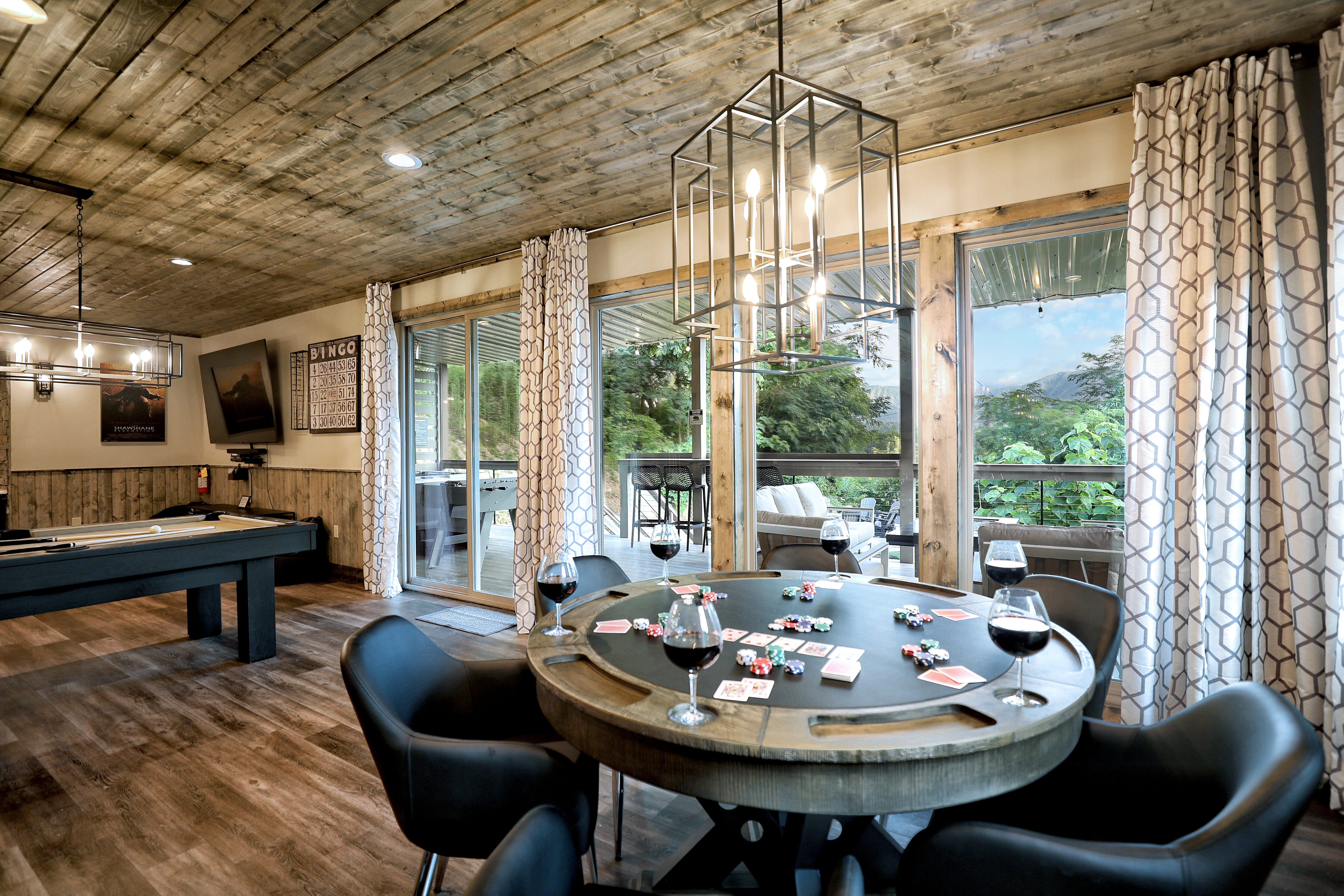 "Glimpse of Heaven" is the epitome of luxury cabin living, where modern elegance meets natural beauty. With floor-to-ceiling windows offering beautiful views of the Smoky Mountains, this 4-bedroom retreat invites you to relax in style. Indulge in the warmth of four master suites, each with its own fireplace and elegant ensuite bathroom. The open living space, featuring a gorgeous kitchen, cozy living room, and a charming dining area, is perfect for gathering with family and friends. For entertainment, the expansive game room offers endless fun, from pool and poker to air hockey and a theater-style experience. Outdoors, a walk down a stone path leads to a massive fire pit where you can gather under the stars for unforgettable evenings. Two decks with cable railings, additional fire pits, and a private hot tub ensure you experience the best of mountain life, whether you're dining al fresco or stargazing from the comfort of your lounger. Conveniently located yet wonderfully serene, "Glimpse of Heaven" is more than a getaway—it's a destination you'll never want to leave.