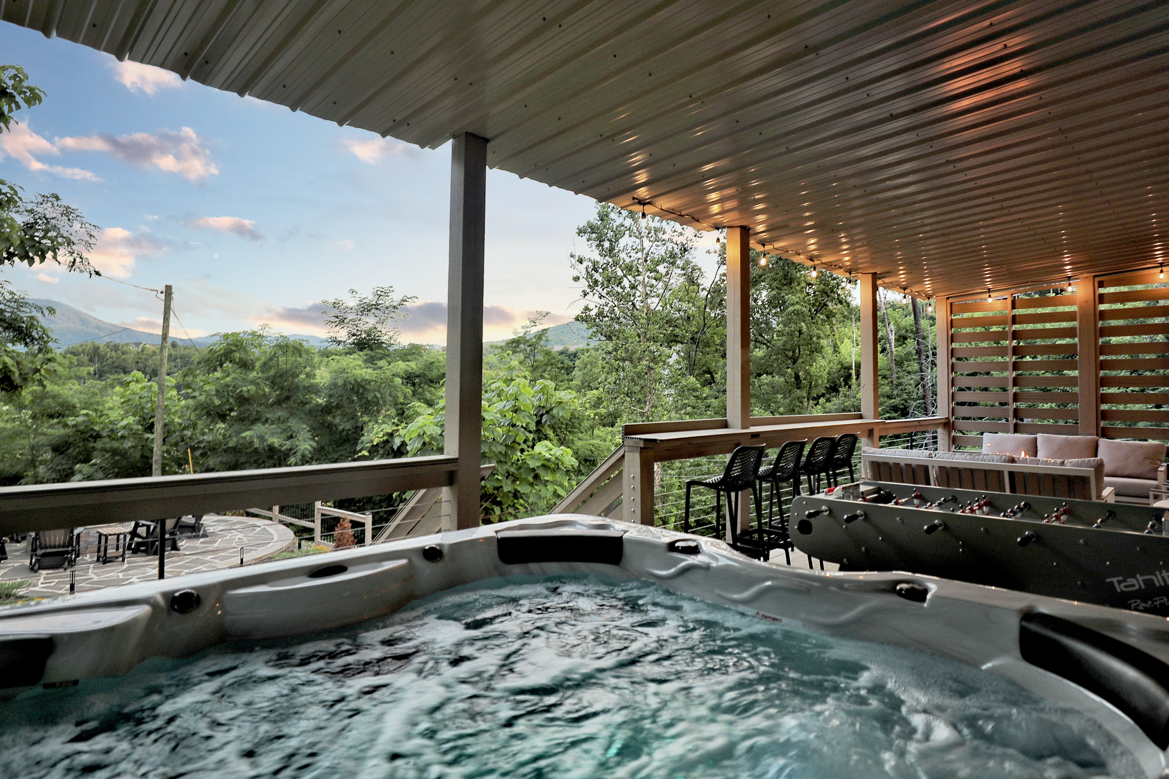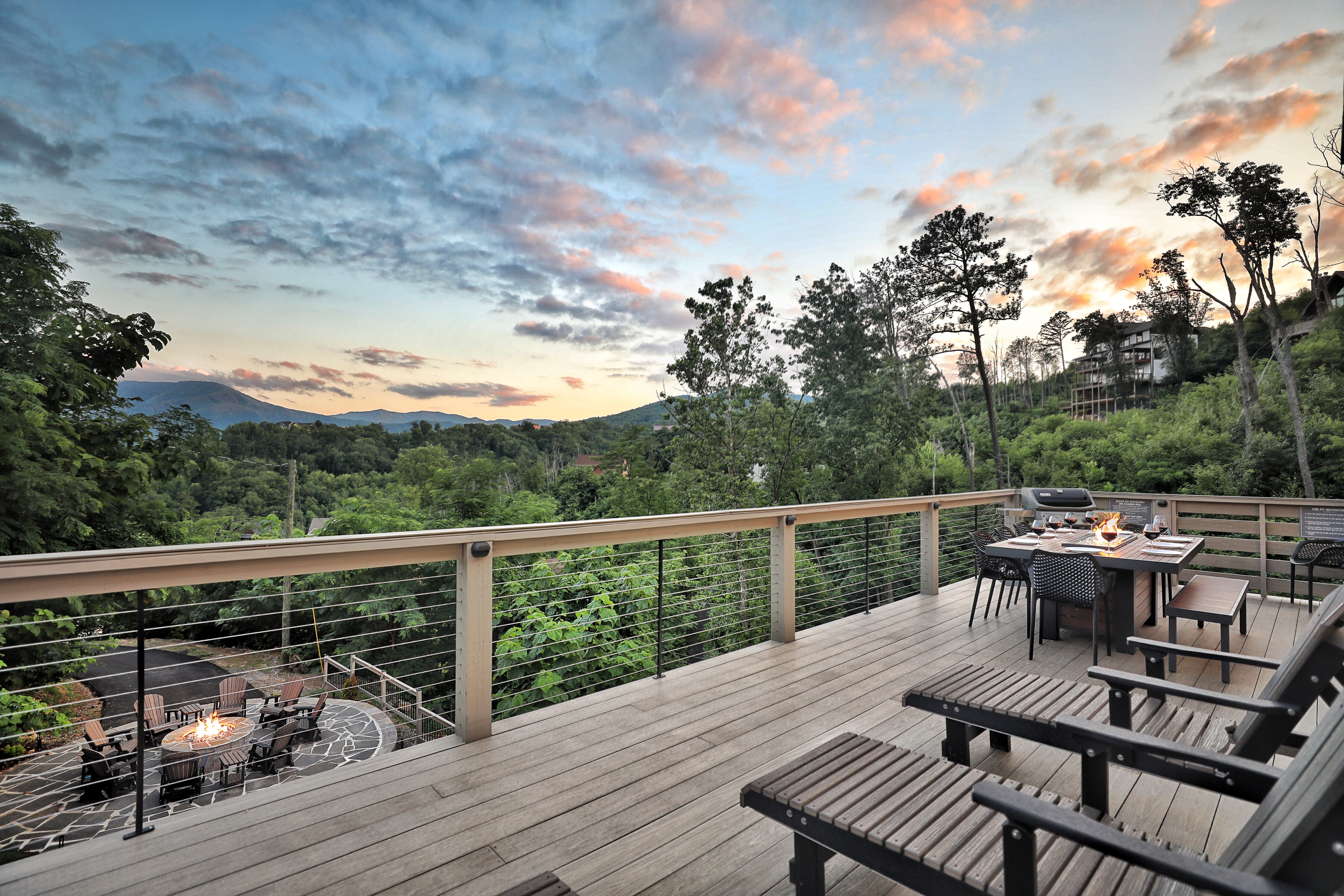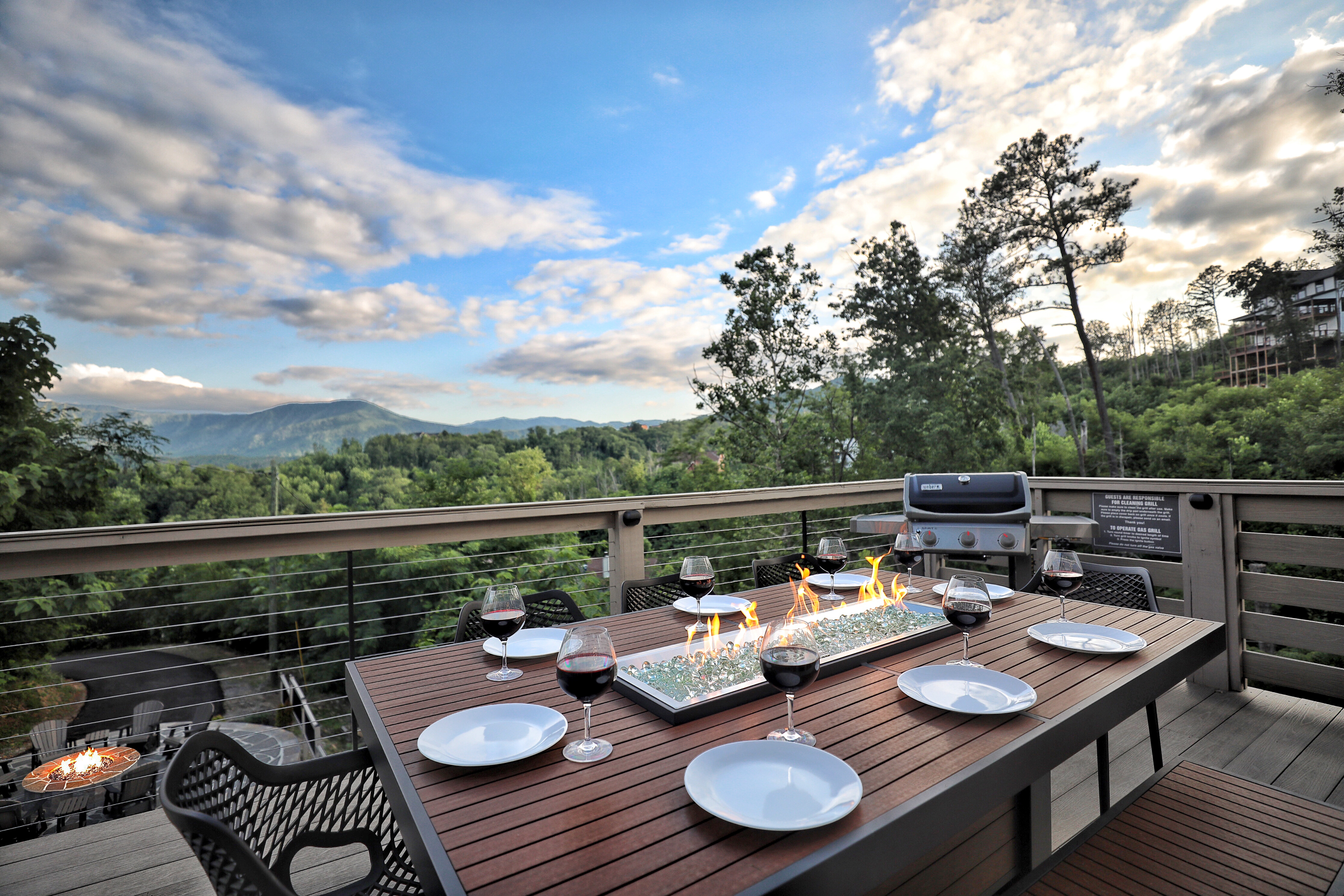 º AMENITIES: Hot tub, game room, fully stocked kitchen, fire pits, gas grill, ample outdoor seating, nice view.