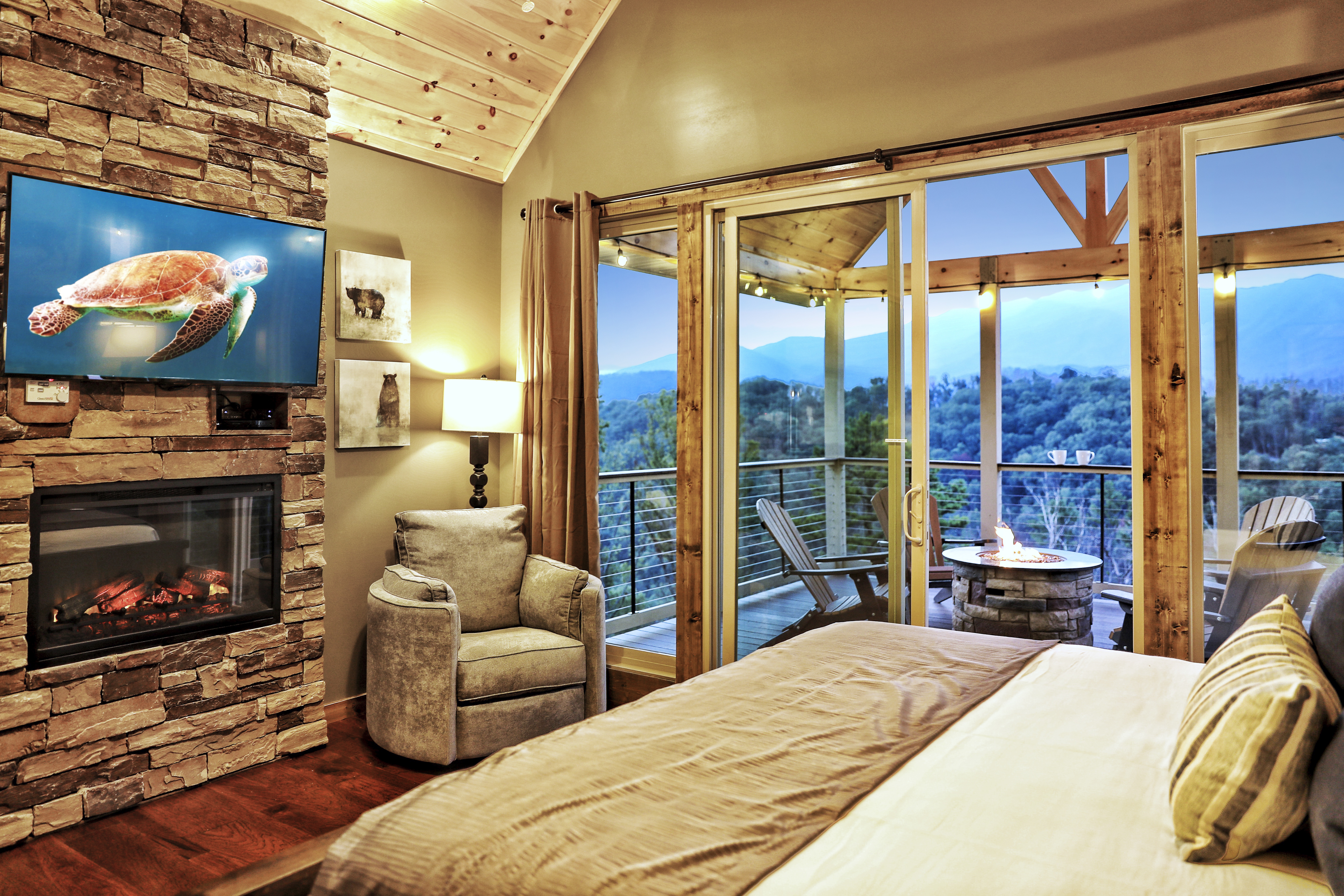 The cabin is stunning and the view absolutely breathtaking! Everything we needed was right there at the cabin. We absolutely loved it! Easy access, very clean, beautifully decorated and all new! We had a wonderful time celebrating our son’s 30th birthday! Made memories for a lifetime.- Dawn W.