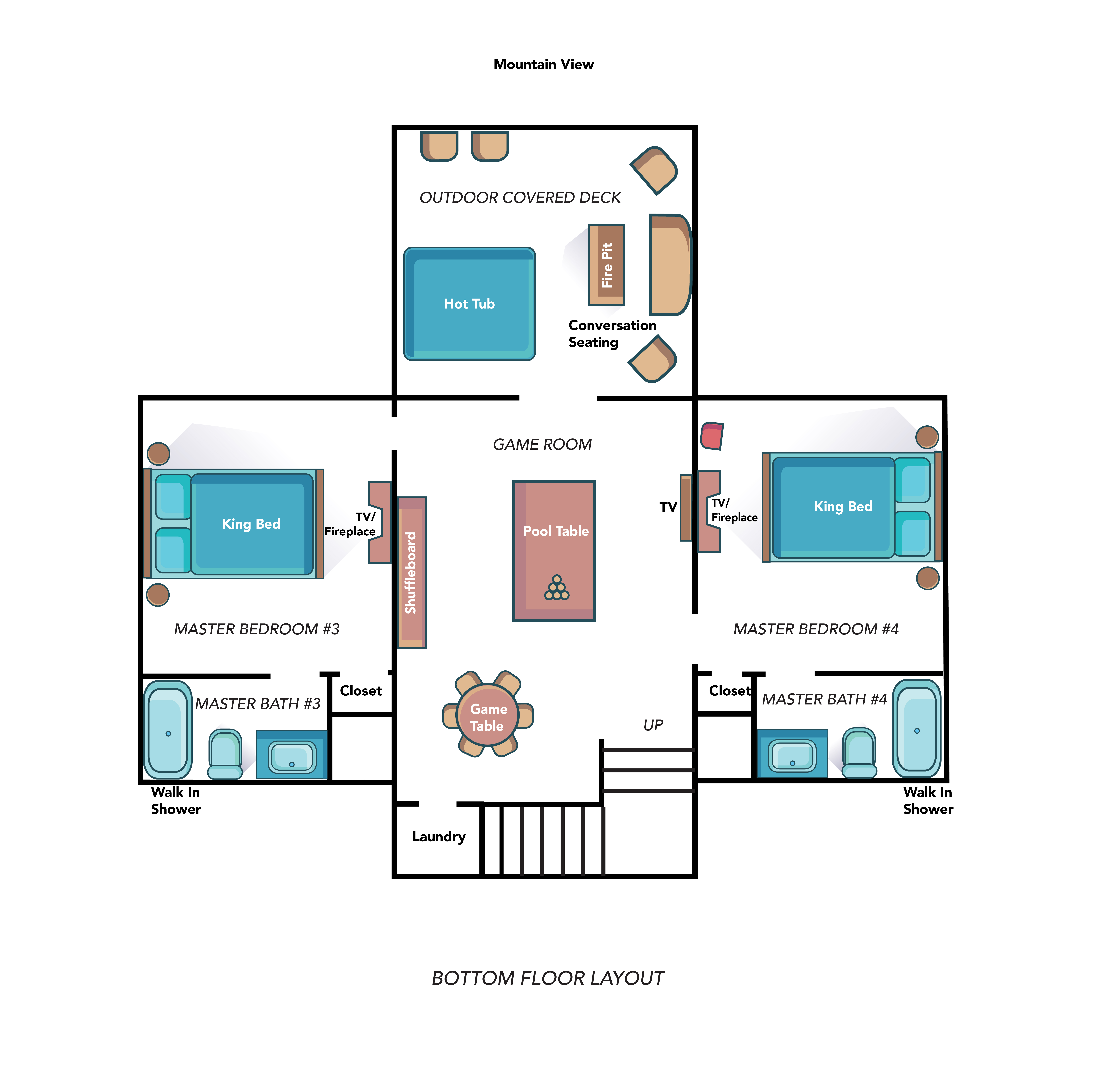 Great property with sweeping unobstructed views of the mountains. The multiple decks and fire pits allowed for a comfortable stay. The electric fireplace in each master suite was a great feature and added to the cabin feeling. Property manager was very responsive and on top of any issues.- Todd G.