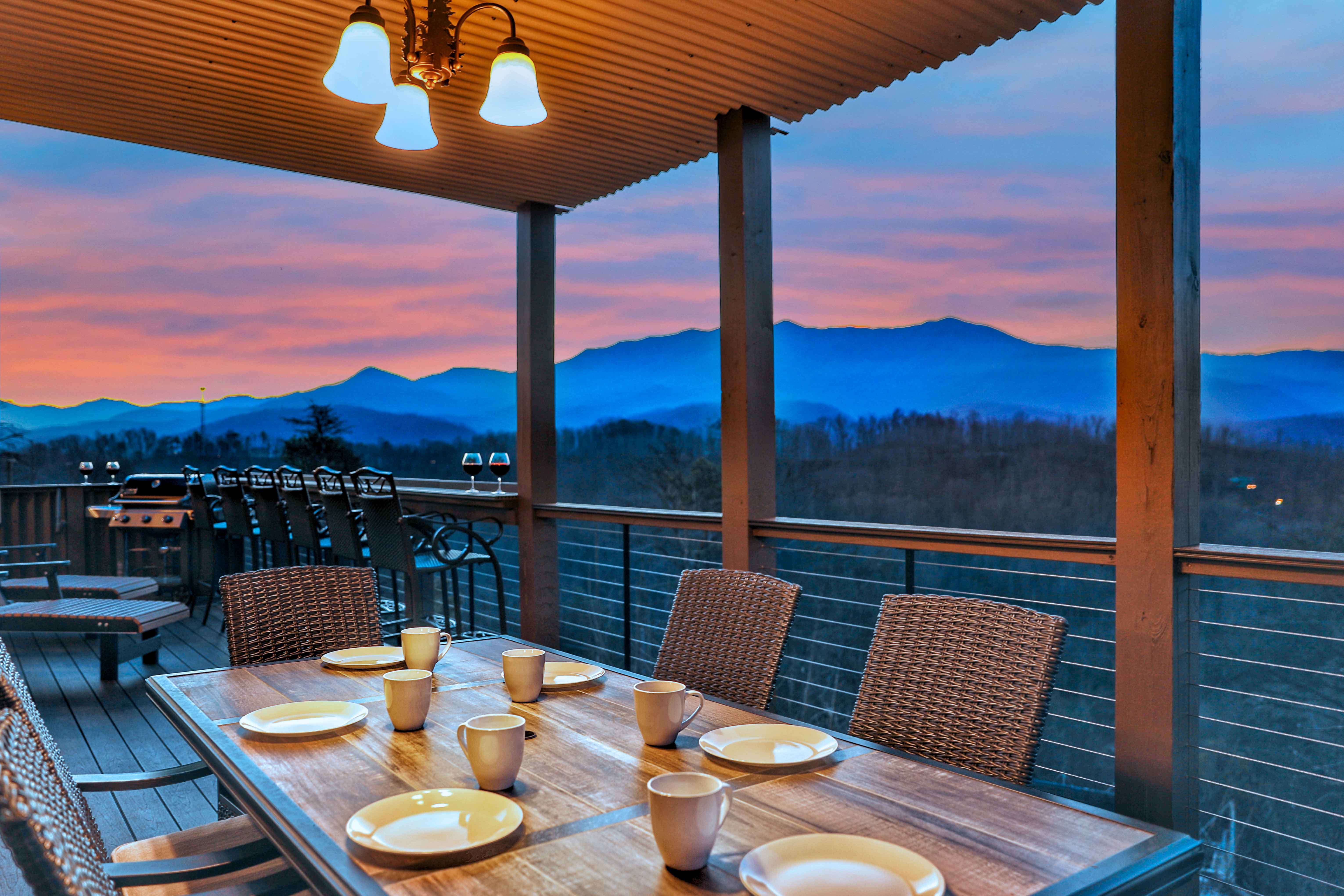 º AMENITIES: Hot tub, game room, fully stocked kitchen, fire pits, gas grill, ample outdoor seating, incredible view.
