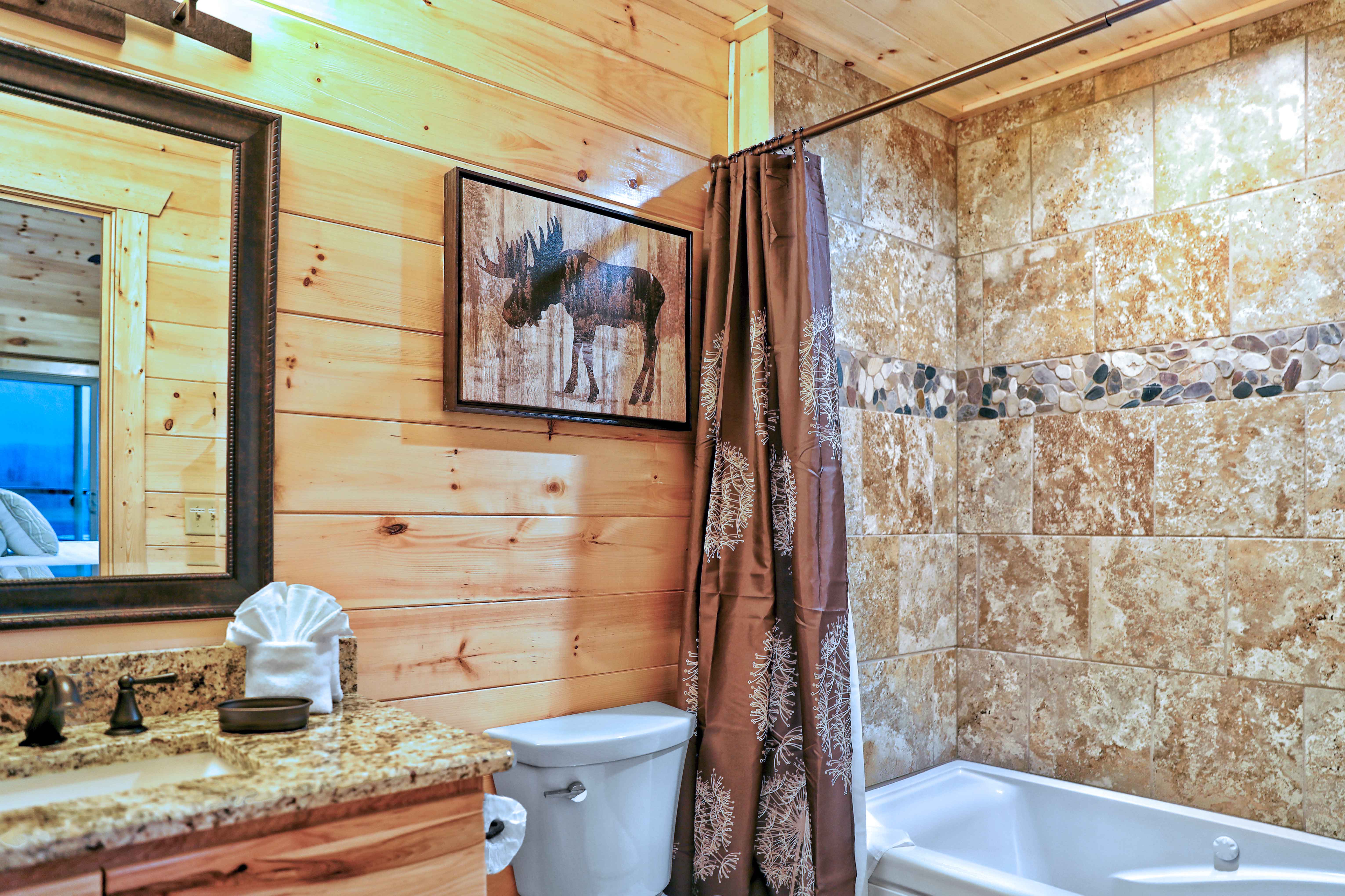 The cabin was even better than we expected. Having the game room was so much fun for the family to gather in the evenings and hang out. The cabin was exceptionally clean and well stocked. The views from the deck were awesome! The manager of the cabin was very responsive and easy to deal with. We will return!- Maureen W.