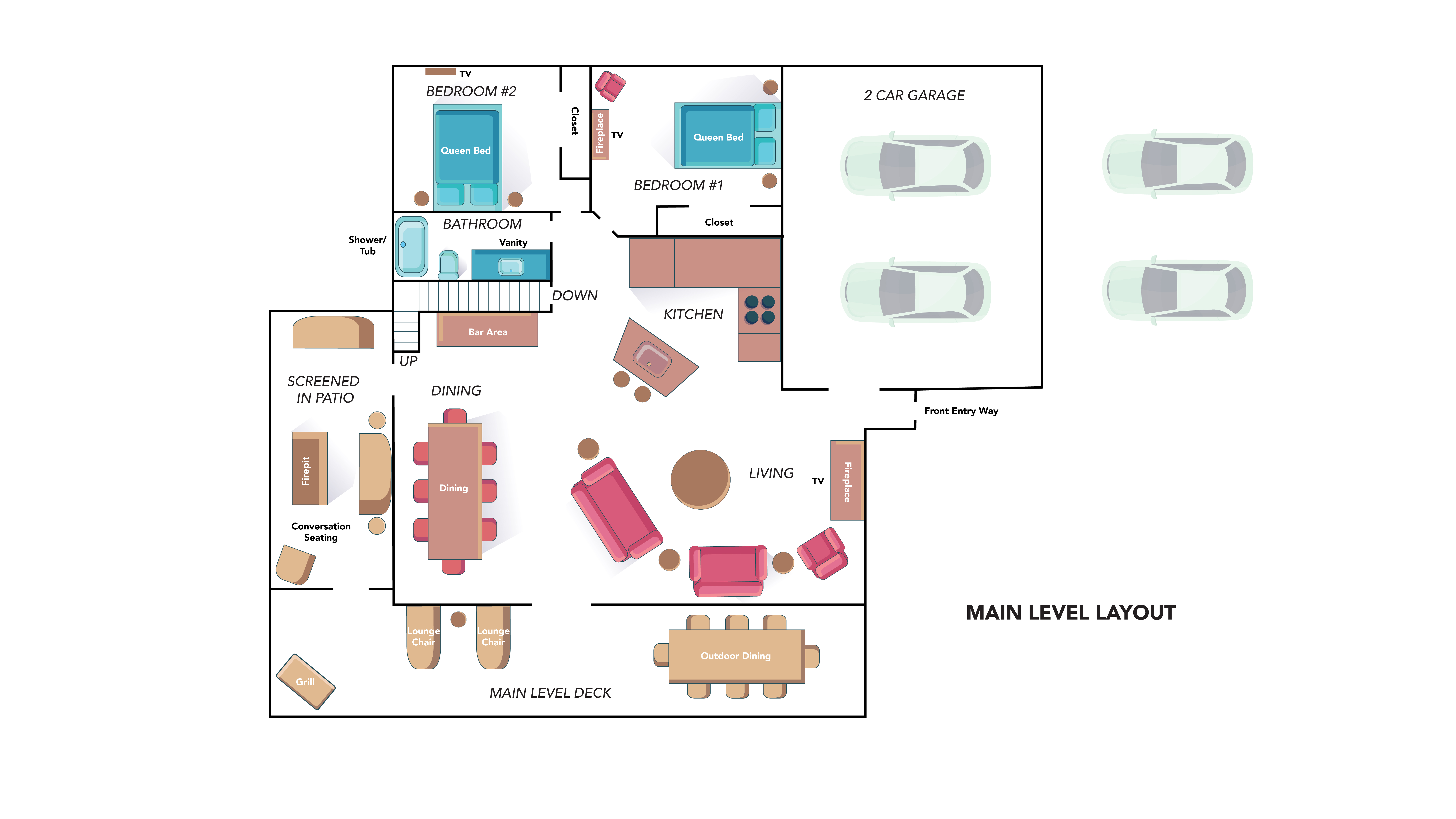 º FLOOR PLAN: The final 2 images in the photo gallery feature the cabin's floor plan.