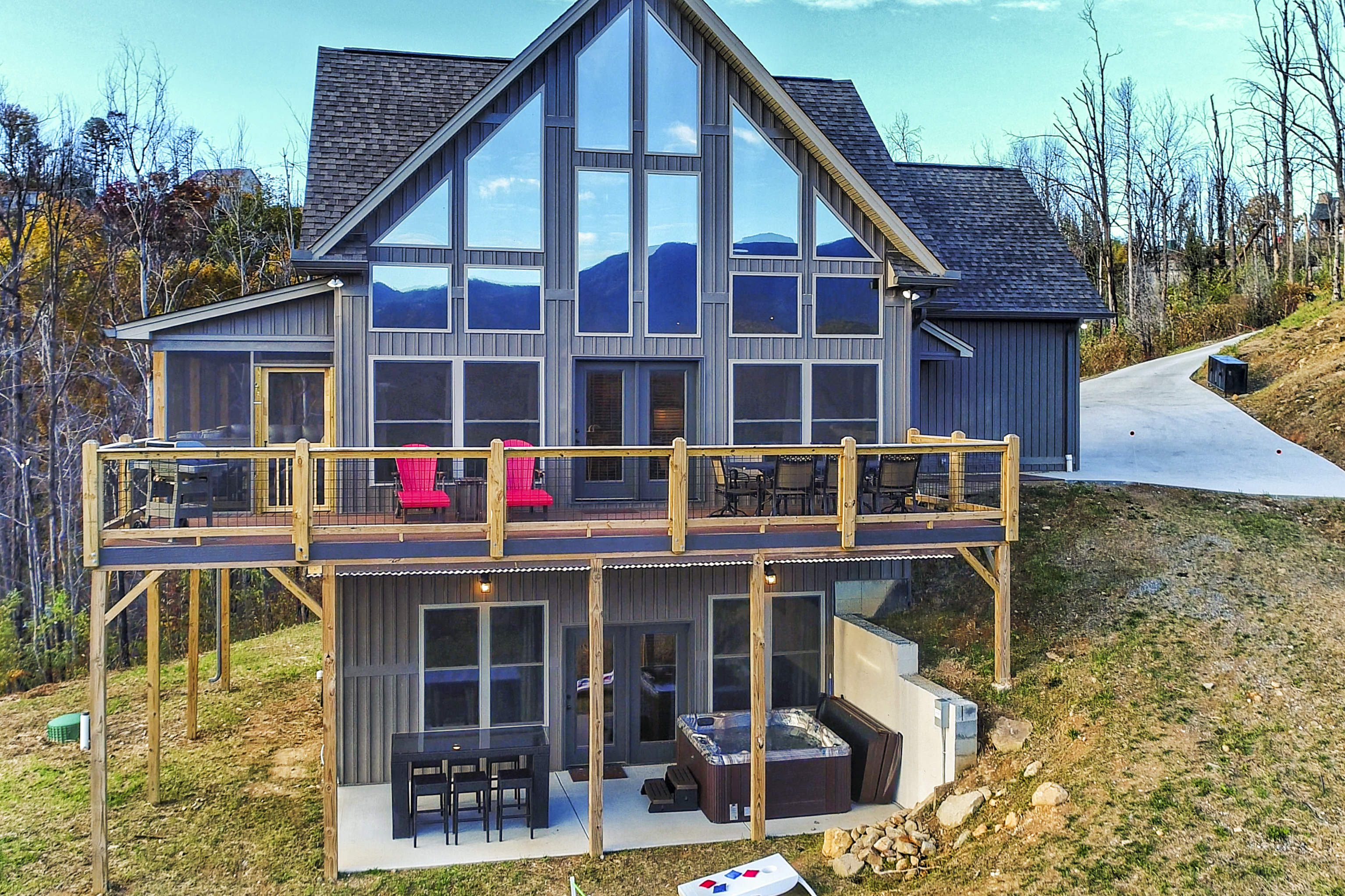 º AMENITIES: Hot tub, game room, fully stocked kitchen, fire pit, gas grill, ample outdoor seating, incredible view.