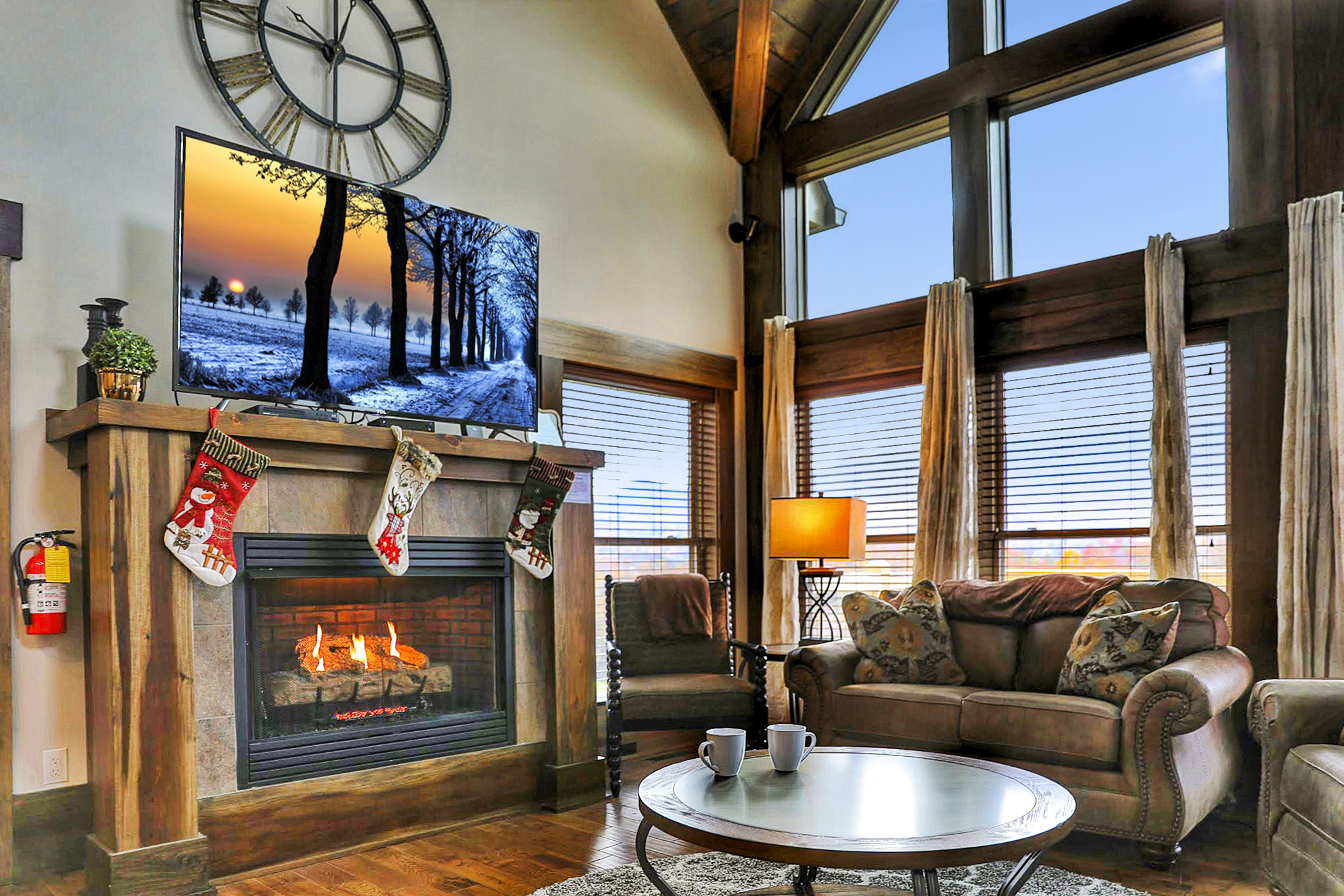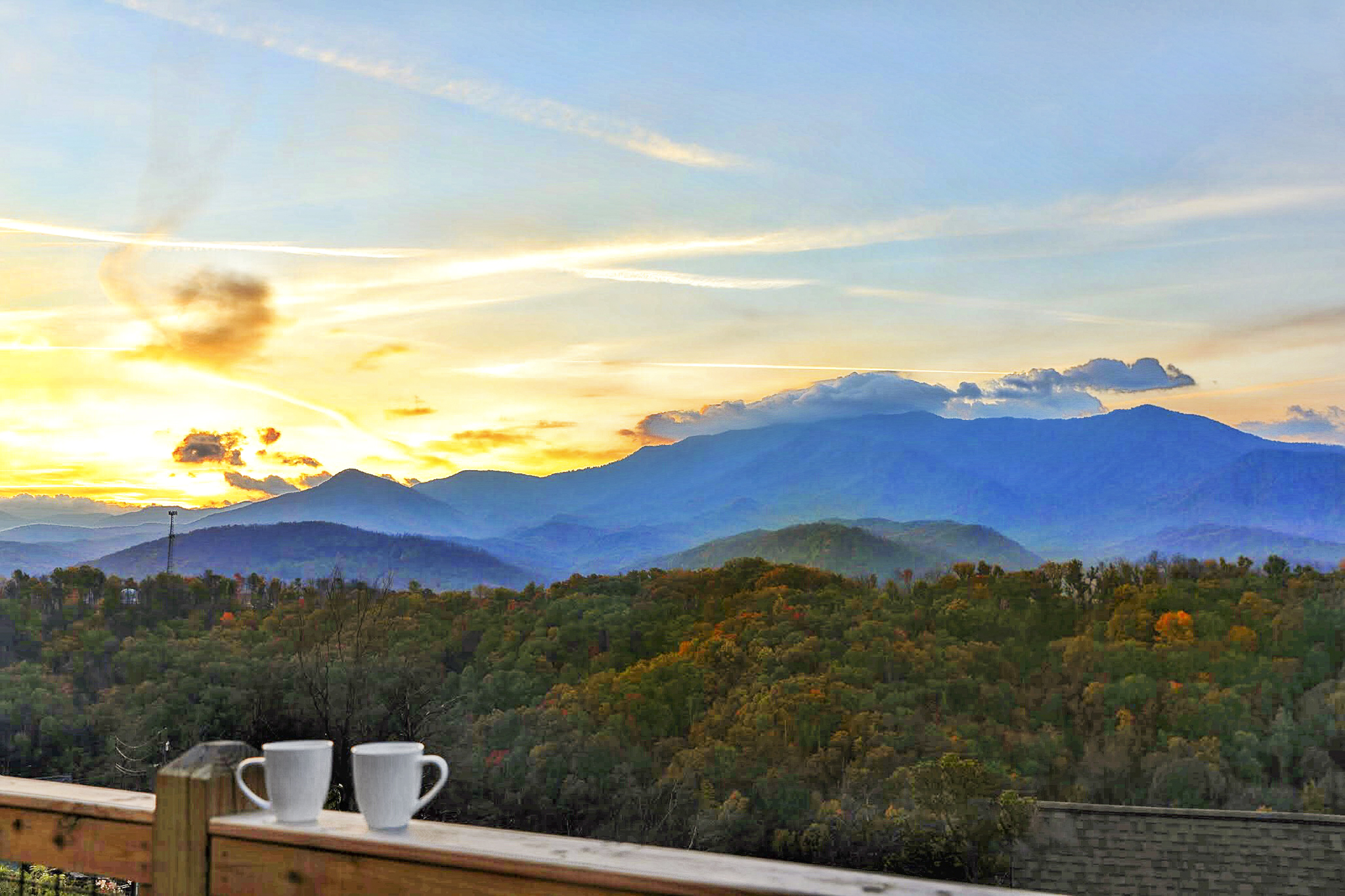 I love that this cabin was as beautiful, if not more than, the pictures on the listing! I never had to worry about my two-year-old and my 9-month-old because every landing had a baby gate or door that closed off the stairs. The pack-n-play and high chair provided also saved us from having to pack those essentials on our trip. The views are great and catching a sunrise coming over the mountain was really a highlight of the trip for me!- Hayden D.
