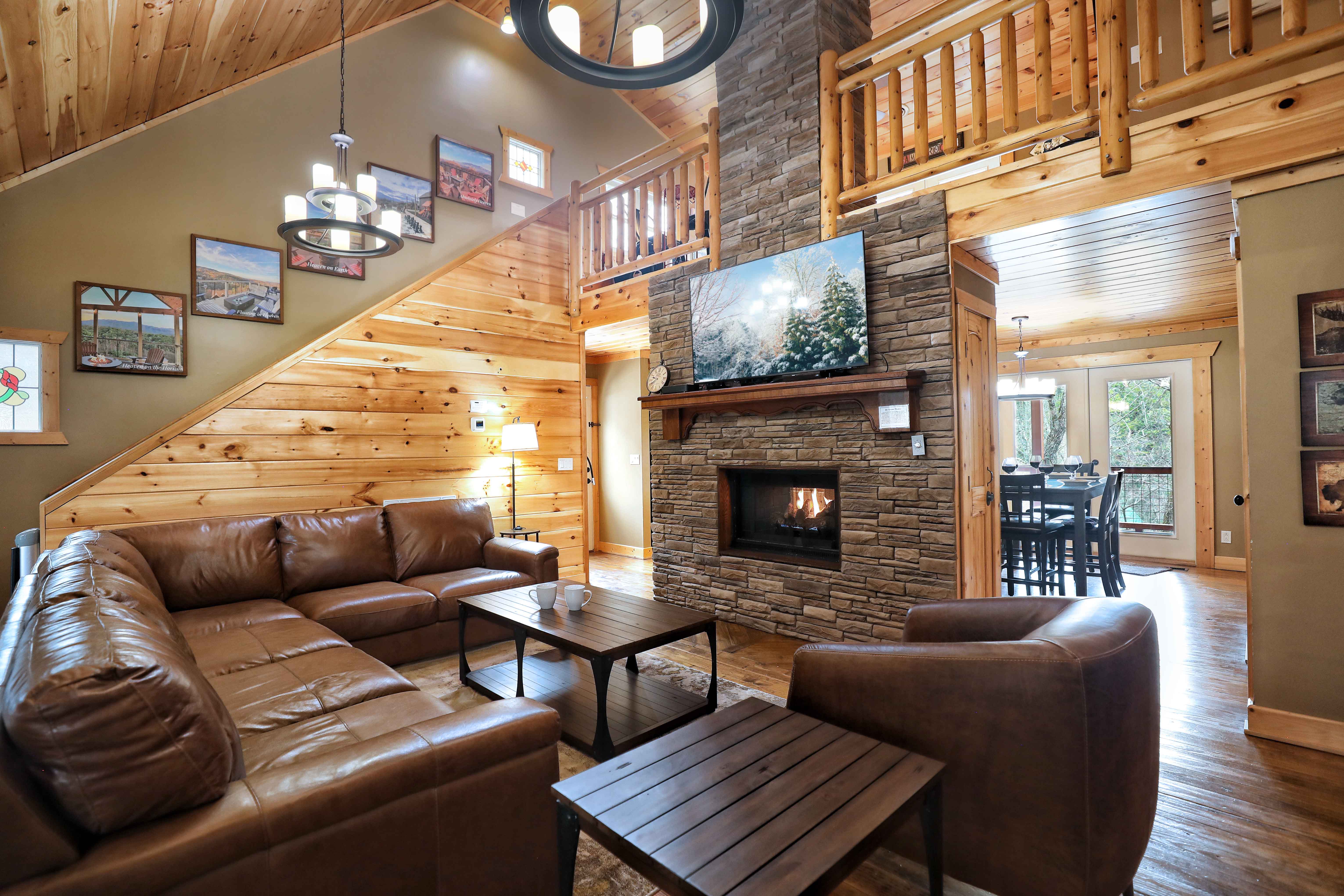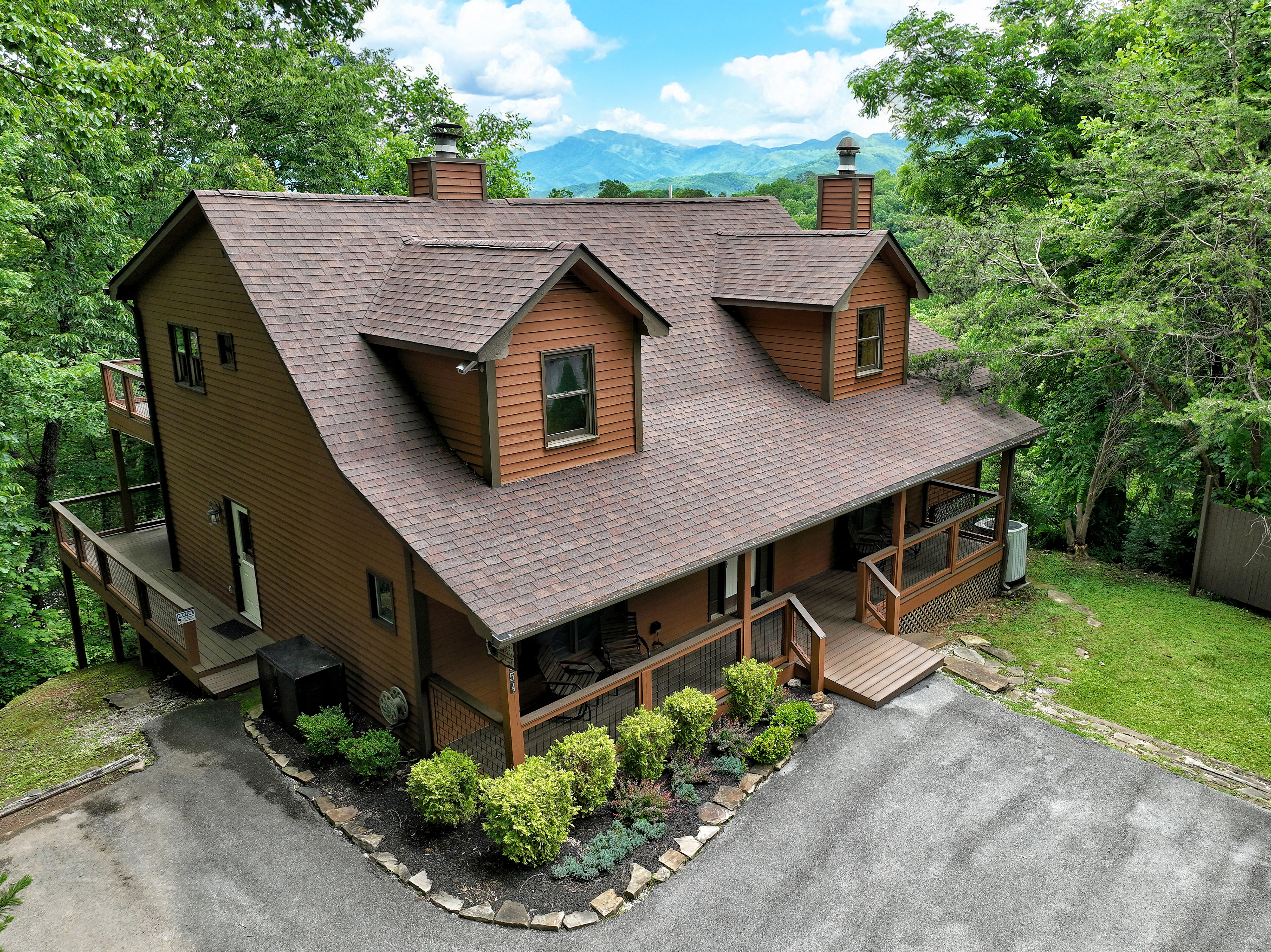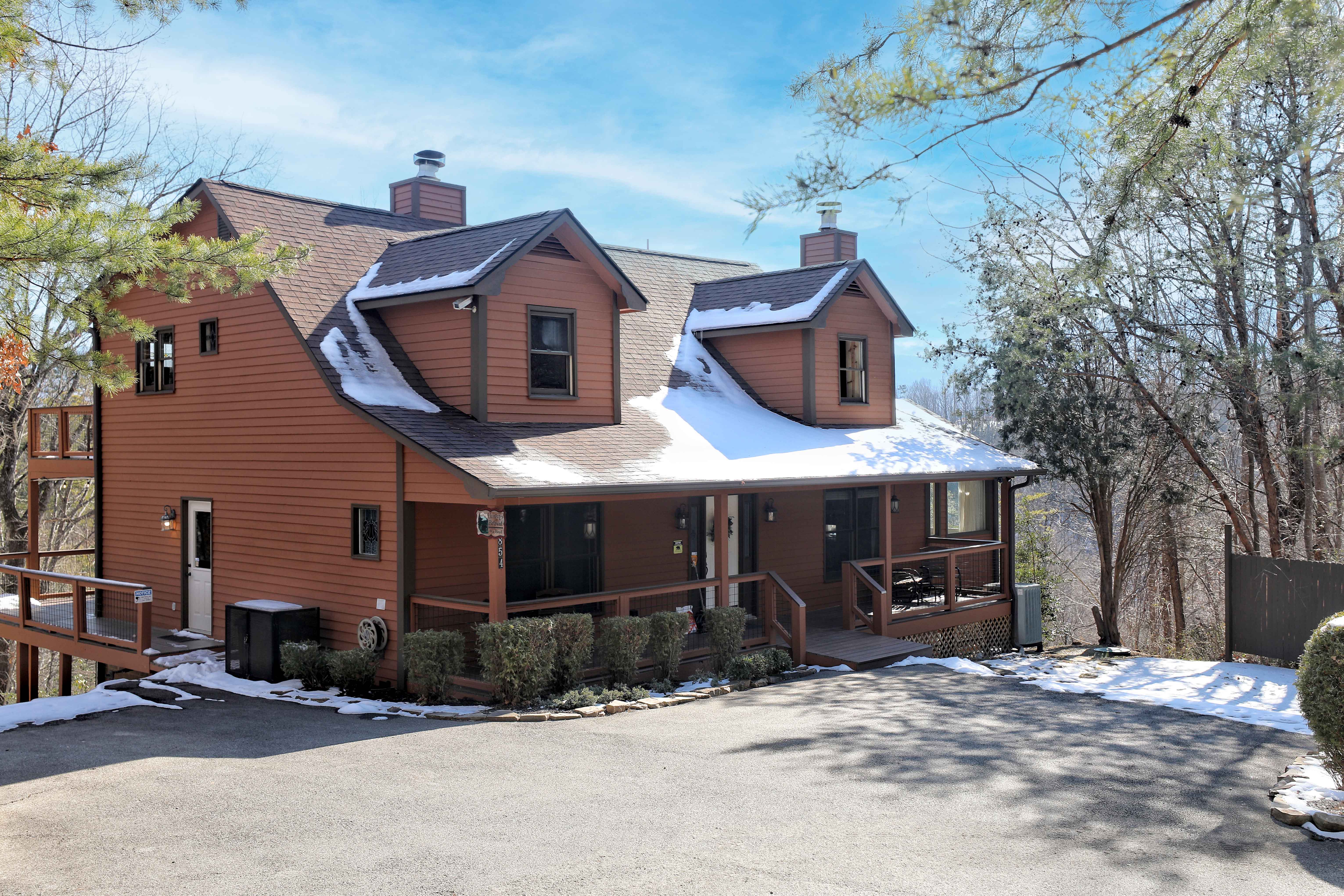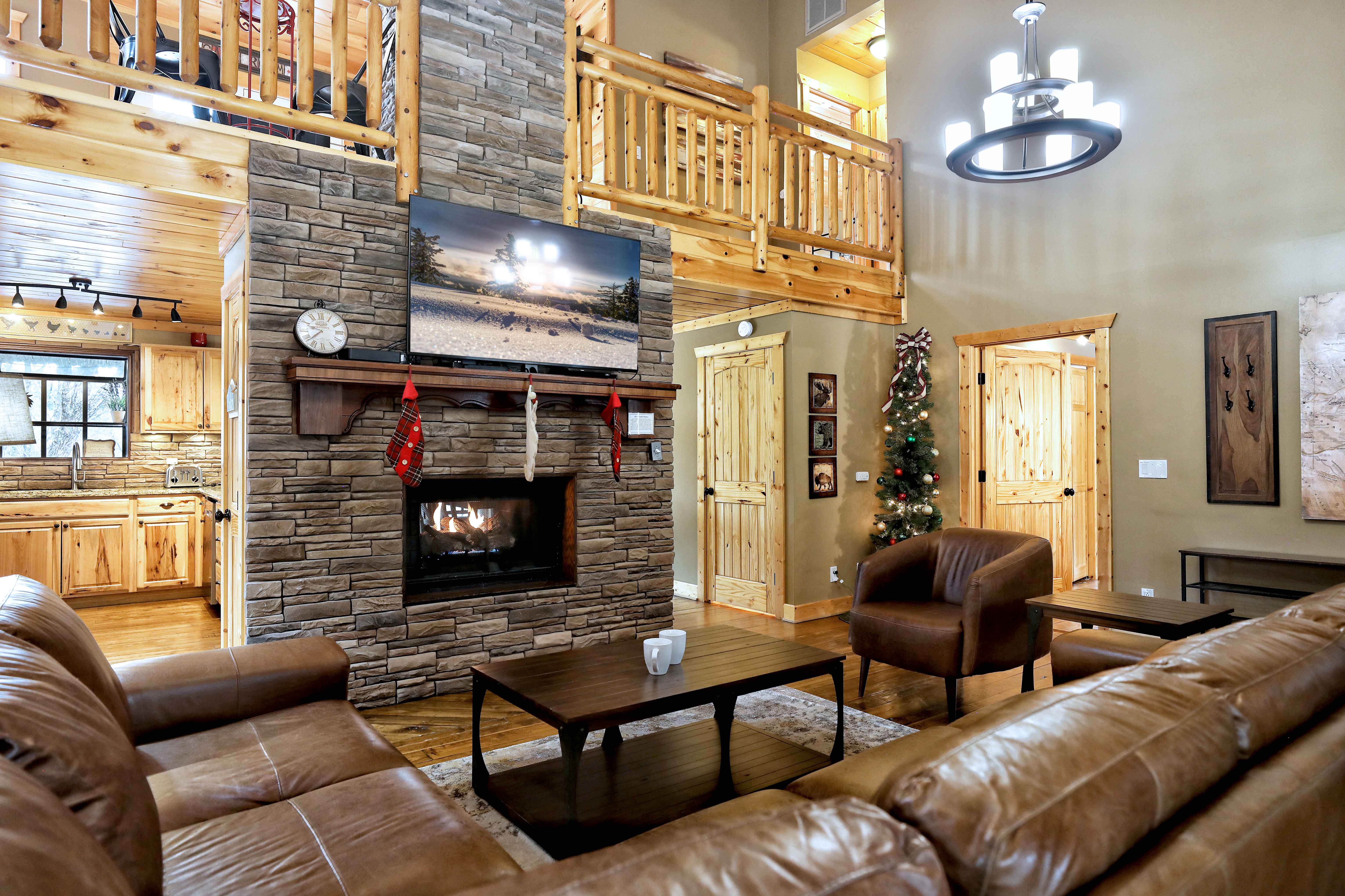Nestled in the heart of the Smokies, "Heaven's Retreat" is a warm and inviting 3-bedroom cabin where rustic charm is paired with thoughtful comfort. With breathtaking views of Mt. LeConte from its two expansive decks, this mountain sanctuary is designed for pure relaxation. Whether you're savoring a meal in the outdoor dining area, soaking in the hot tub, or enjoying the warmth of the fire pit under a starlit sky, every moment feels serene. Inside, you'll find an open living space with a soaring 20-foot ceiling and a stunning floor-to-ceiling fireplace. The cabin is well-equipped with all the conveniences you need, including a fully stocked kitchen, a game room, and a cozy sunroom with a card table. Each of the three bedrooms offers a peaceful retreat after a day of adventure. Located in the charming Arts and Crafts community, Heaven's Retreat isn't just a cabin; it's a haven of mountain comfort and creative spirit.