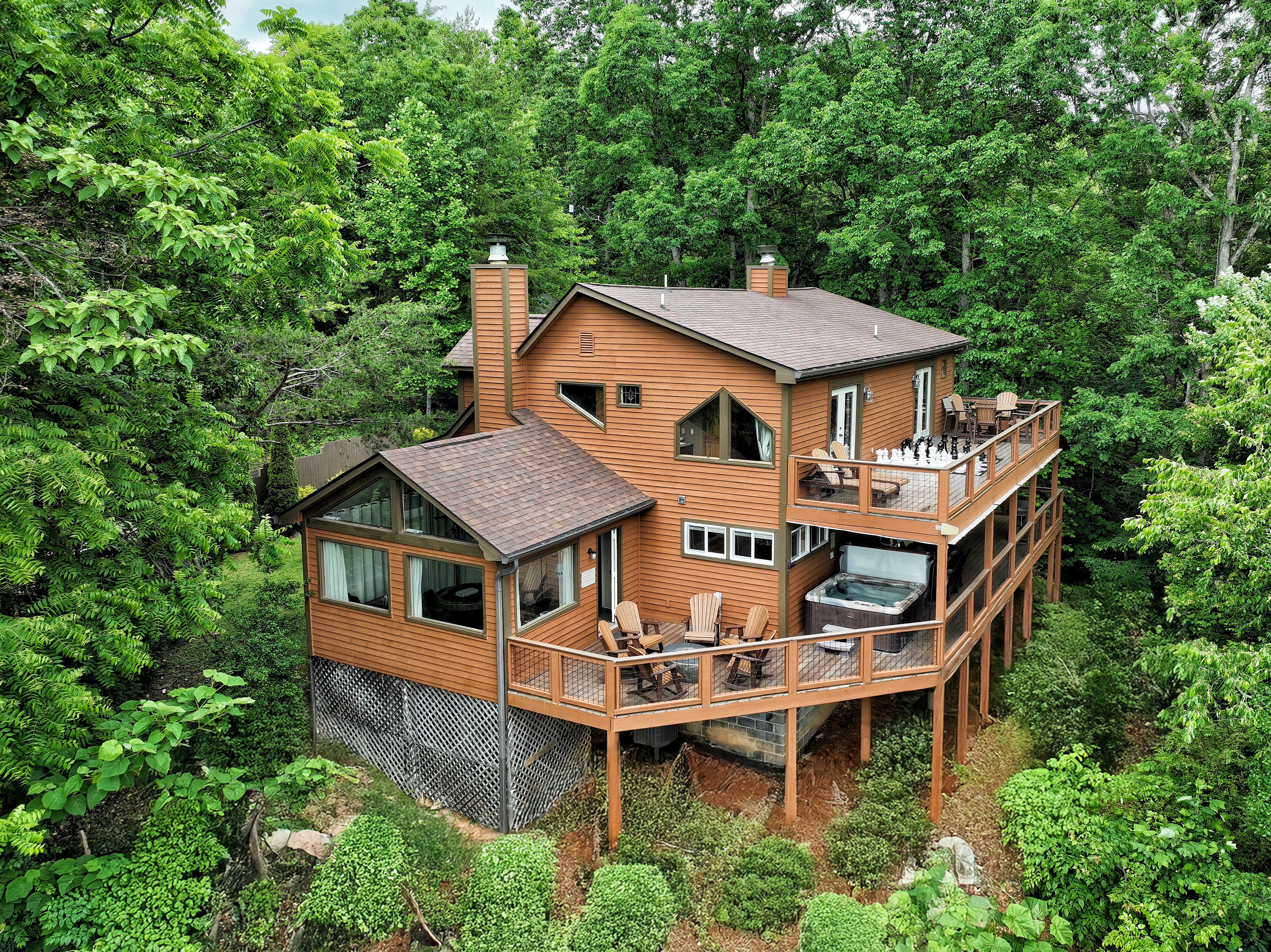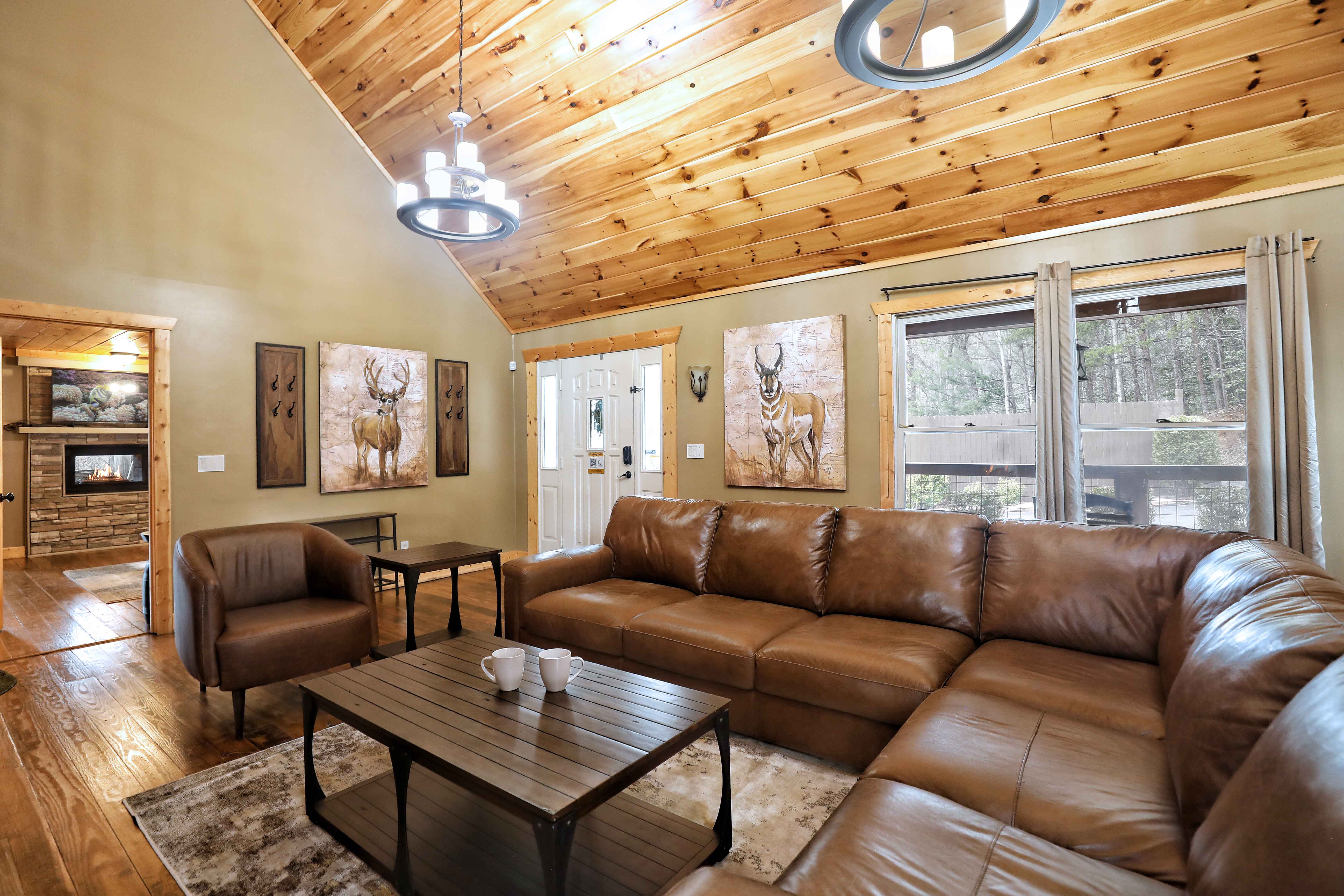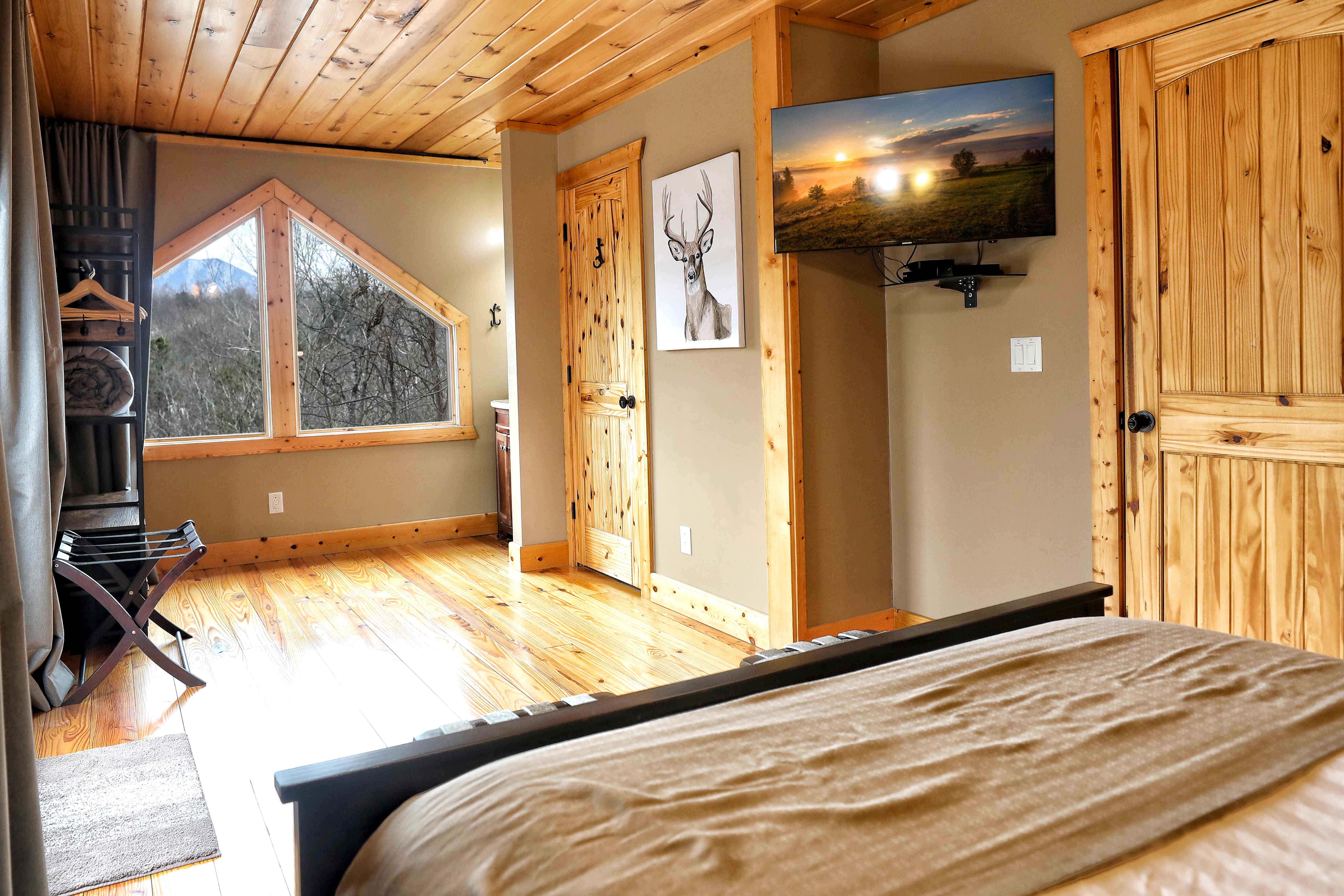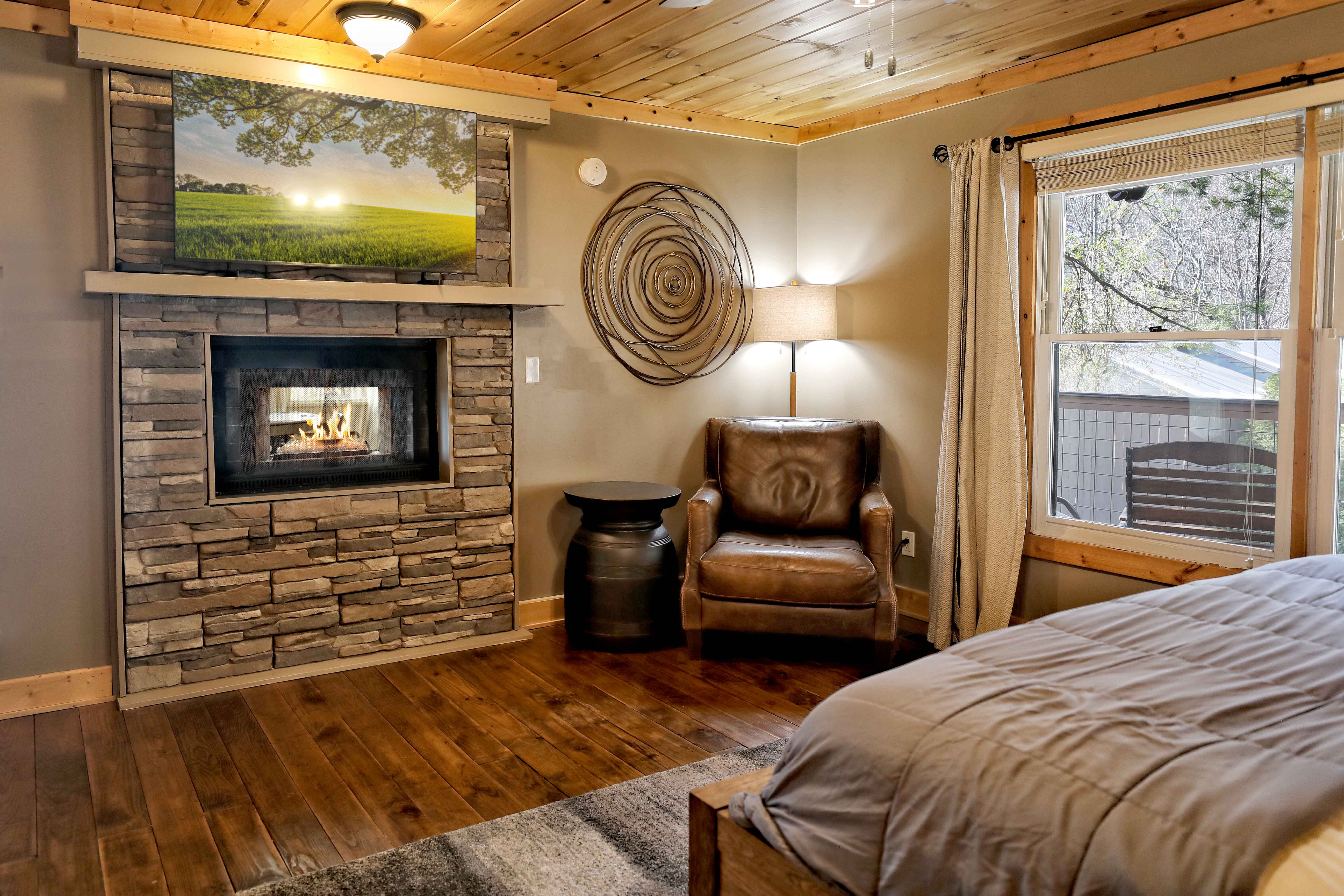 Nestled in the heart of the Smokies, "Heaven's Retreat" is a warm and inviting 3-bedroom cabin where rustic charm is paired with thoughtful comfort. With breathtaking views of Mt. LeConte from its two expansive decks, this mountain sanctuary is designed for pure relaxation. Whether you're savoring a meal in the outdoor dining area, soaking in the hot tub, or enjoying the warmth of the fire pit under a starlit sky, every moment feels serene. Inside, you'll find an open living space with a soaring 20-foot ceiling and a stunning floor-to-ceiling fireplace. The cabin is well-equipped with all the conveniences you need, including a fully stocked kitchen, a game room, and a cozy sunroom with a card table. Each of the three bedrooms offers a peaceful retreat after a day of adventure. Located in the charming Arts and Crafts community, Heaven's Retreat isn't just a cabin; it's a haven of mountain comfort and creative spirit.