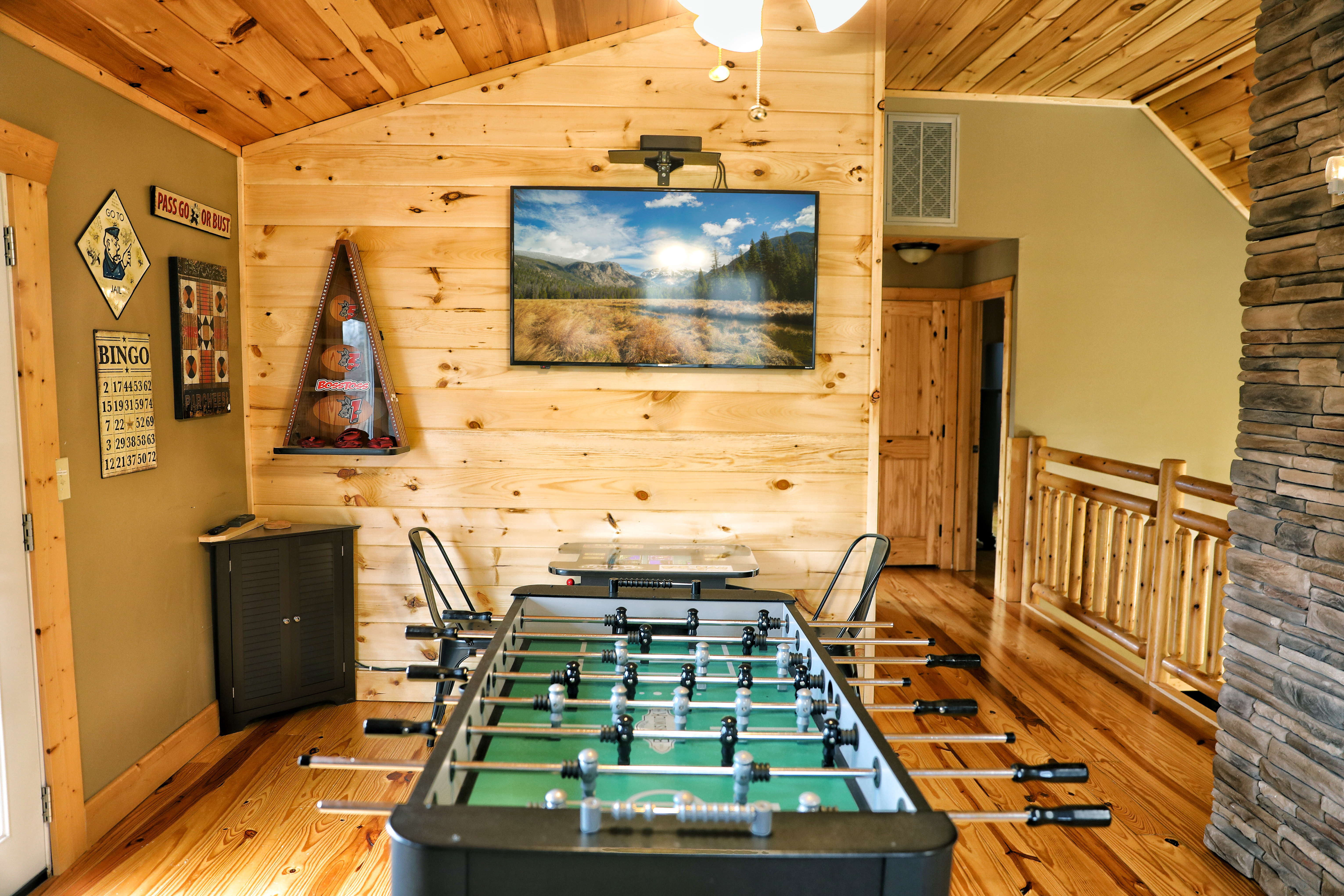 This was our first stay with a Heavens Cabins rental and we will definitely book with them again! The updates were beautiful and the cabin was very clean. The cabin was well stocked with items from towels to kitchen appliances and everything was labeled. My kids especially loved the game room. We were very happy with our stay!- Katlyn D.