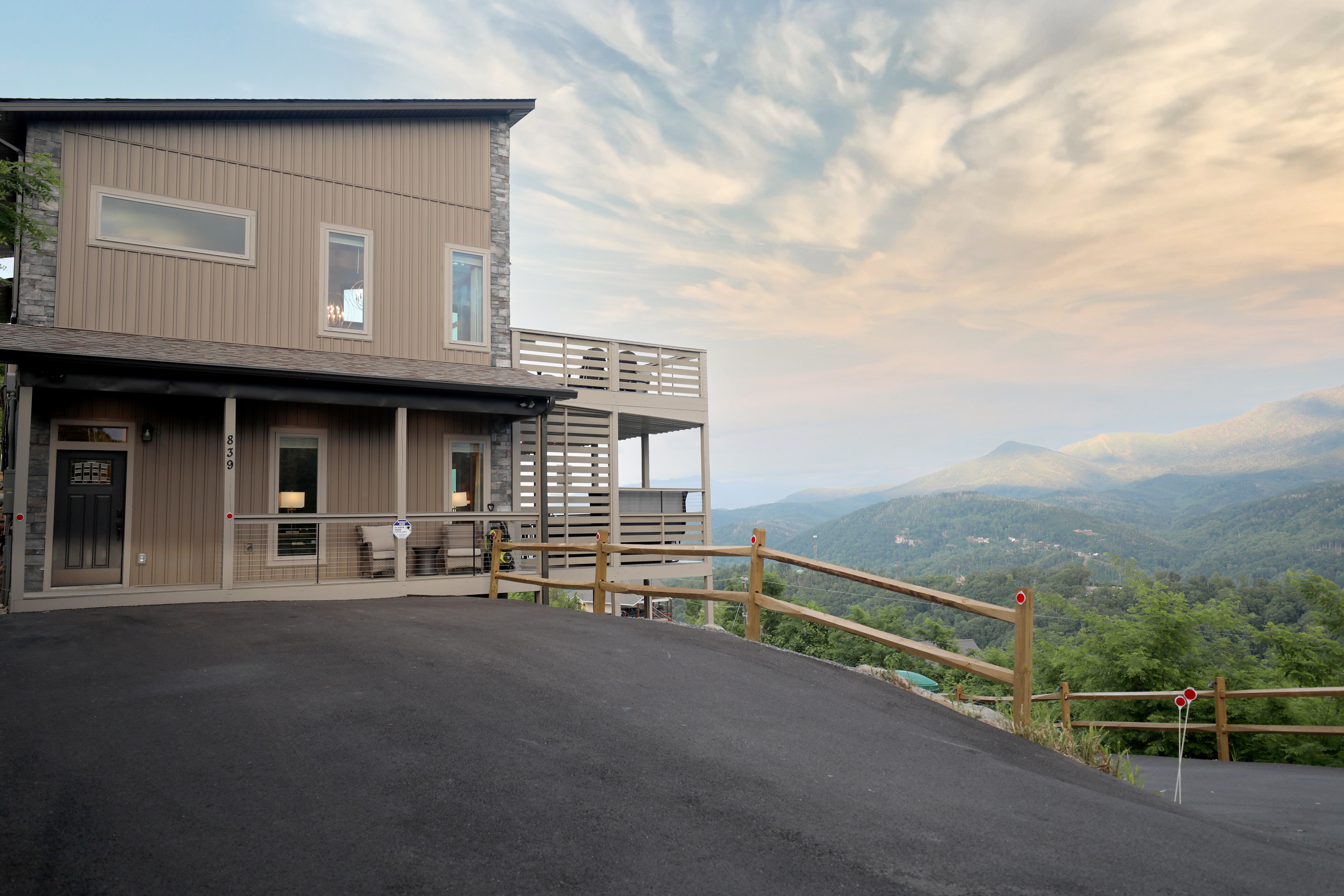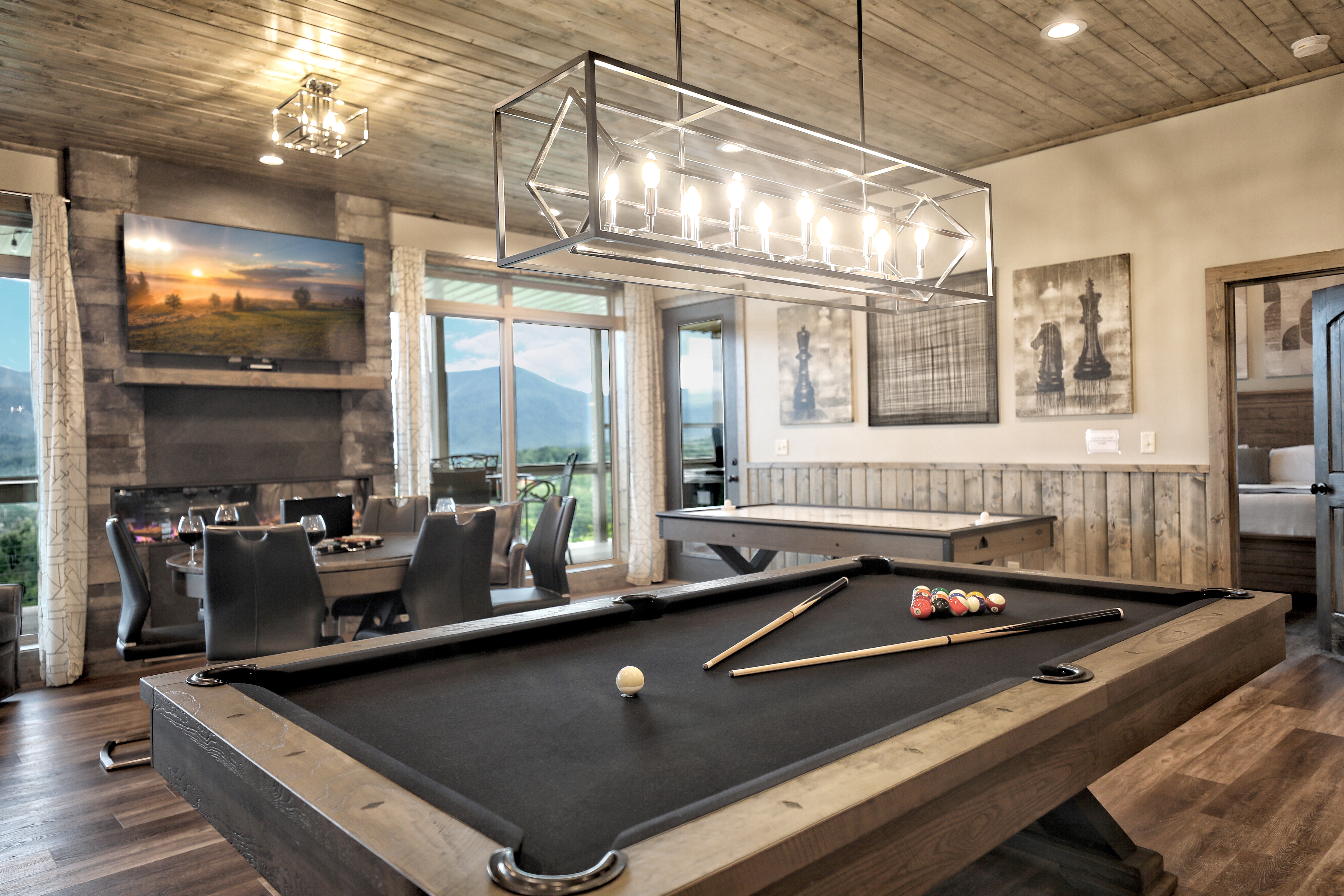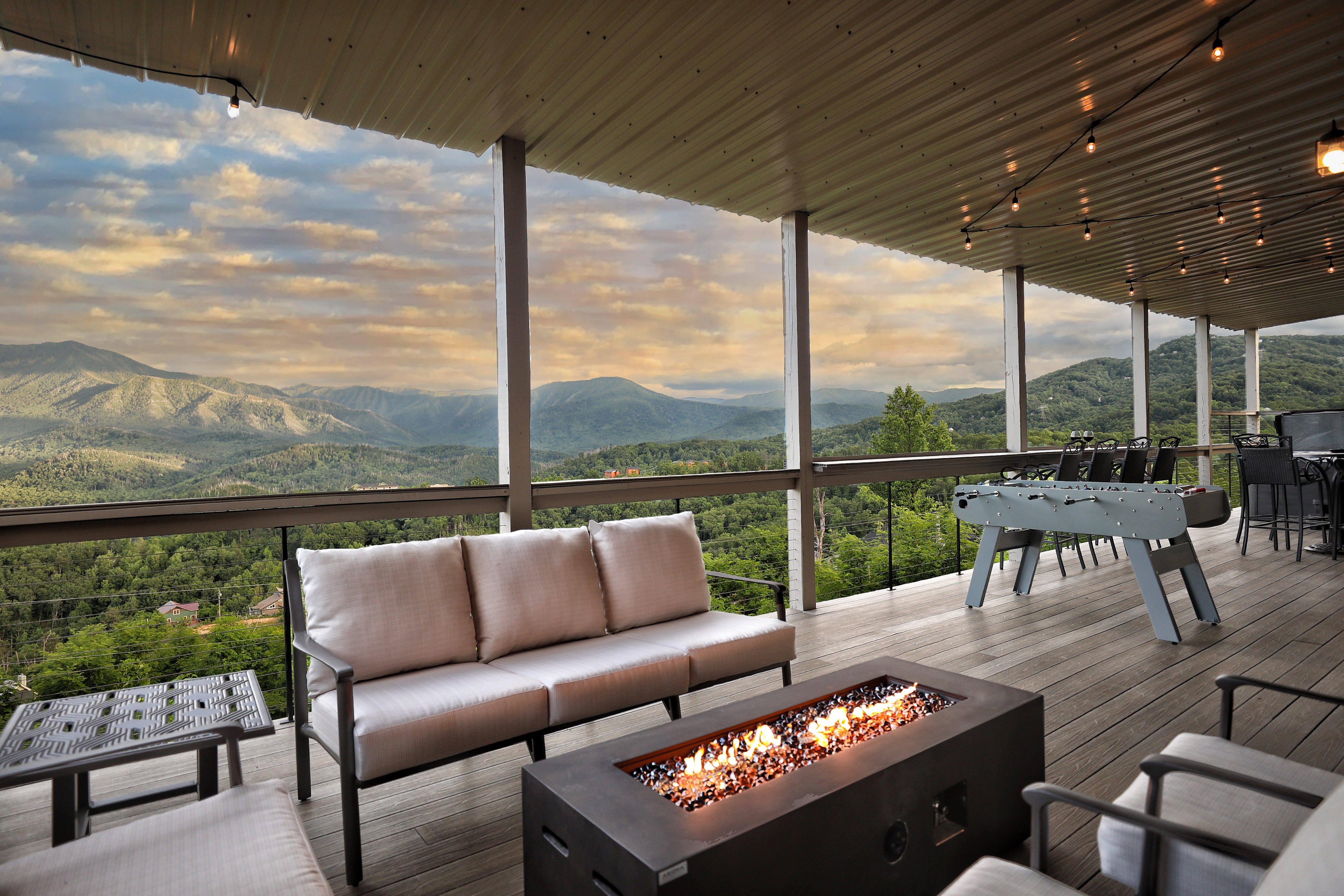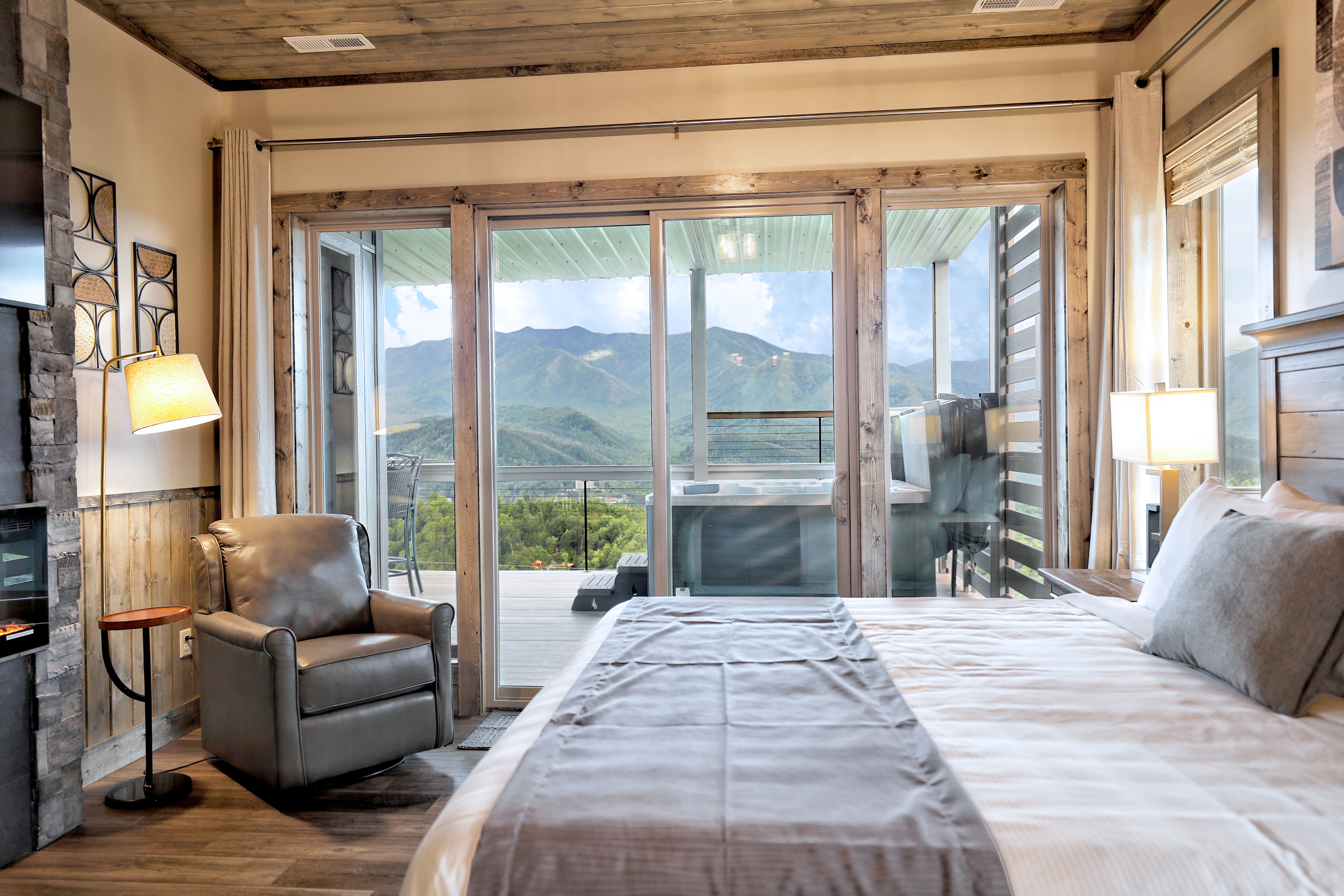 Welcome to Heaven's Skyline, where luxury meets the breathtaking beauty of the Smoky Mountains. This stunning 4-bedroom, 4-bathroom cabin is a modern mountain retreat, boasting panoramic views of the iconic Mt. LeConte from nearly every room. Step onto one of two expansive decks, complete with sleek cable railings, and immerse yourself in nature's grandeur. Enjoy al fresco dining by the fire, unwind in the hot tub, or gather around one of the two cozy fire pits. Inside, floor-to-ceiling windows and a grand stone fireplace create a warm, inviting atmosphere. Each of the four master suites offers a private fireplace and a luxurious ensuite bathroom, ensuring ultimate comfort. The open-concept living space flows seamlessly into a gourmet kitchen, perfect for entertaining. And for fun, the expansive game room will keep guests of all ages entertained. With close proximity to Gatlinburg and Pigeon Forge, Heaven's Skyline is not just a place to stay—it's an unforgettable experience.
