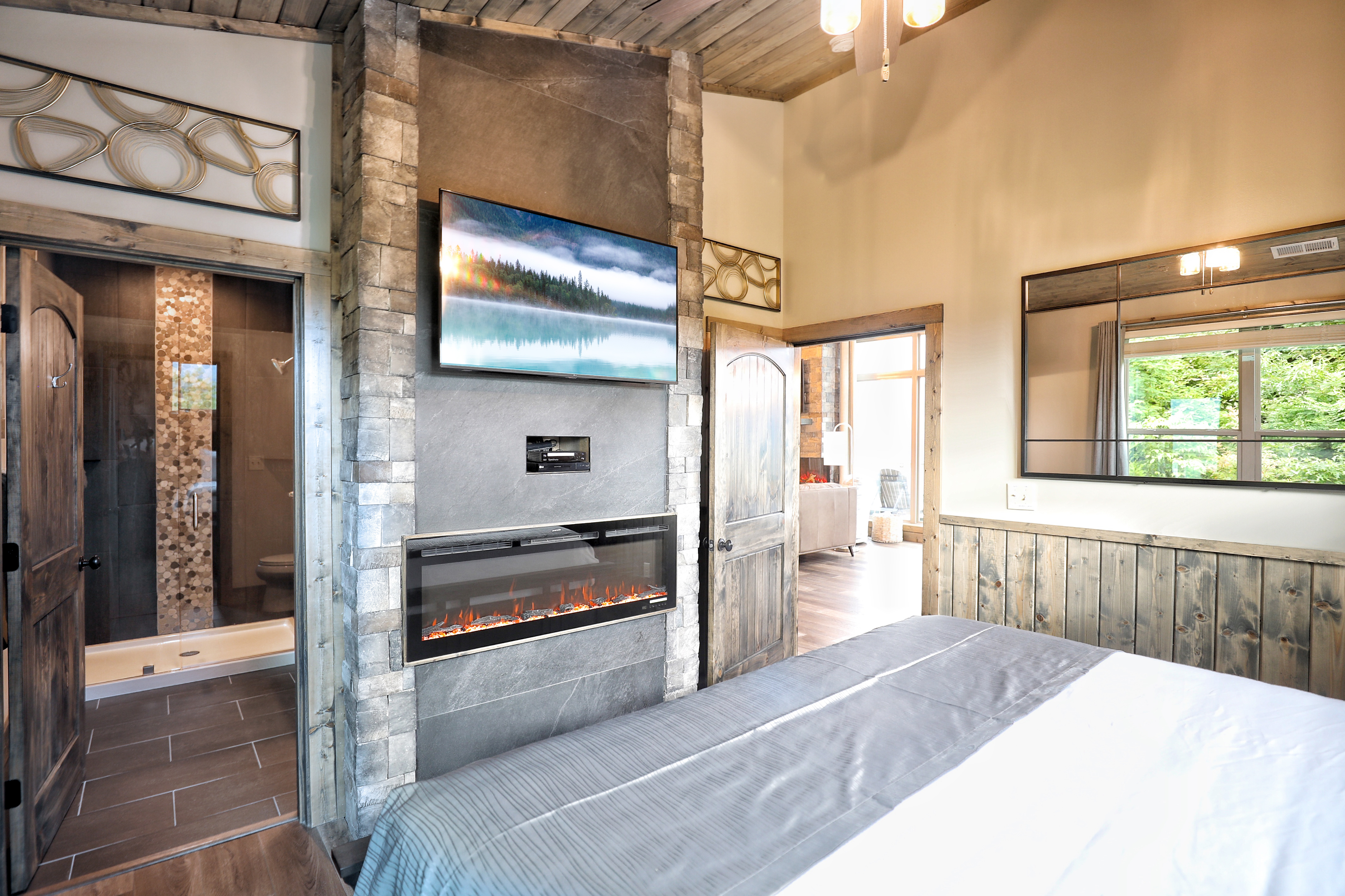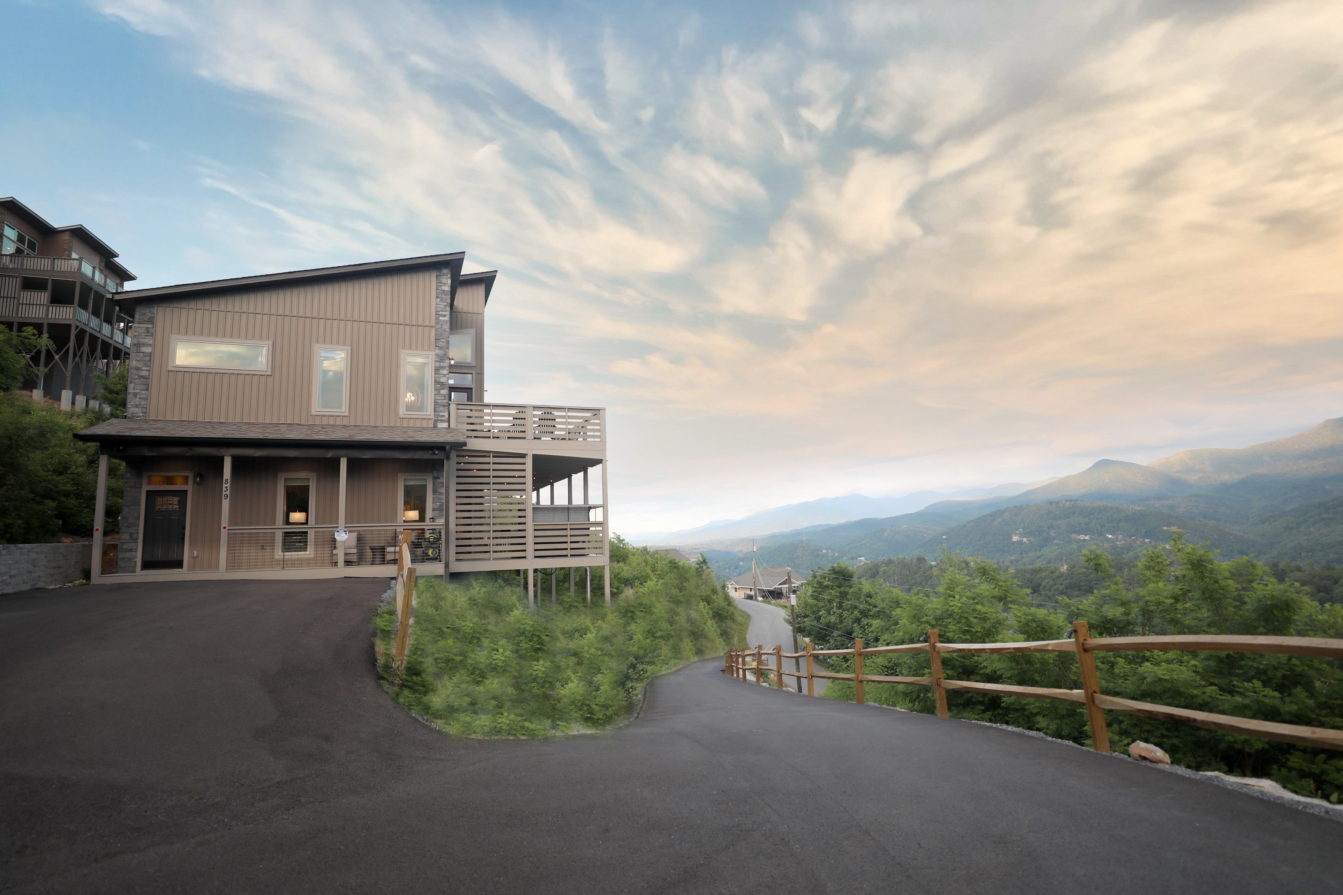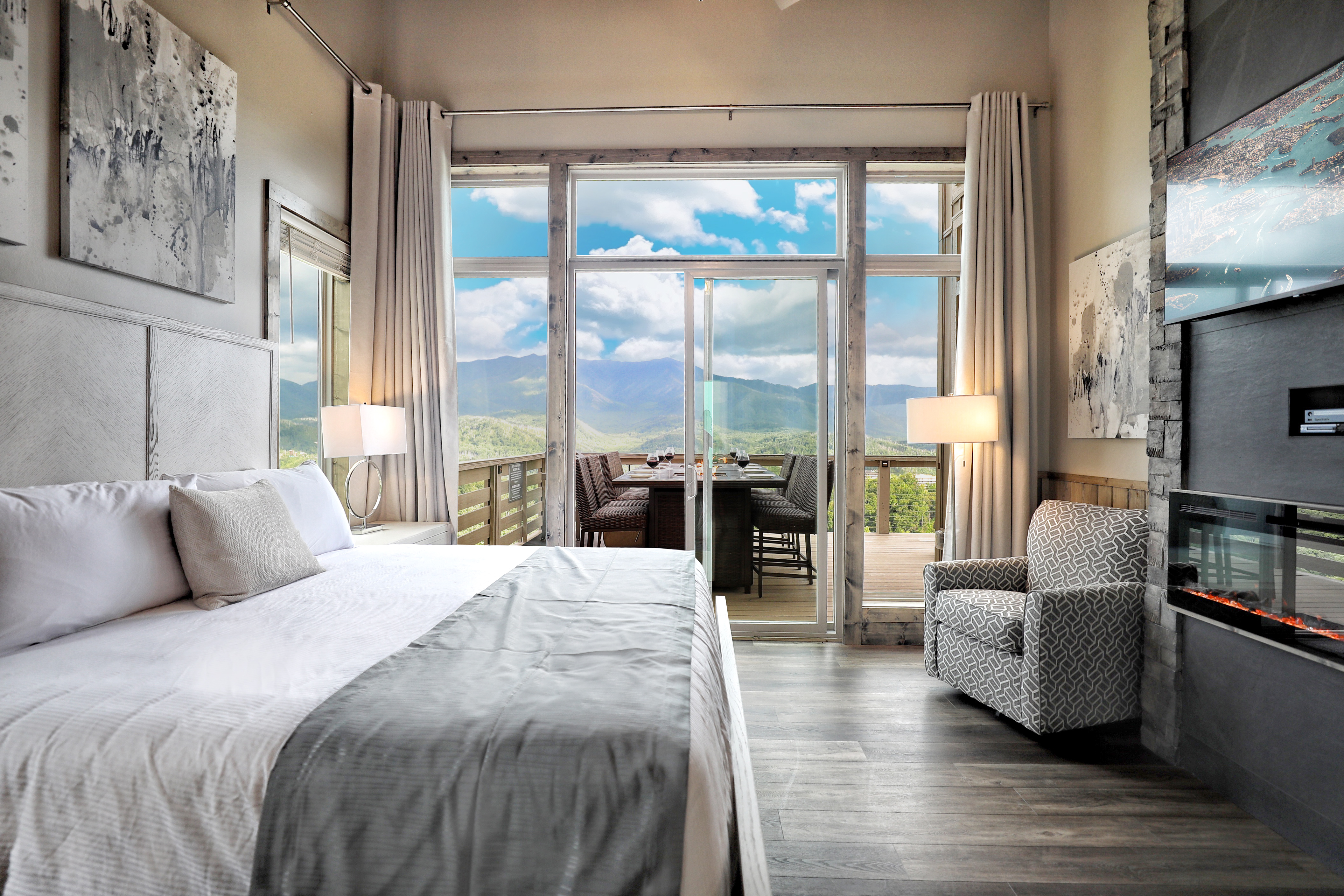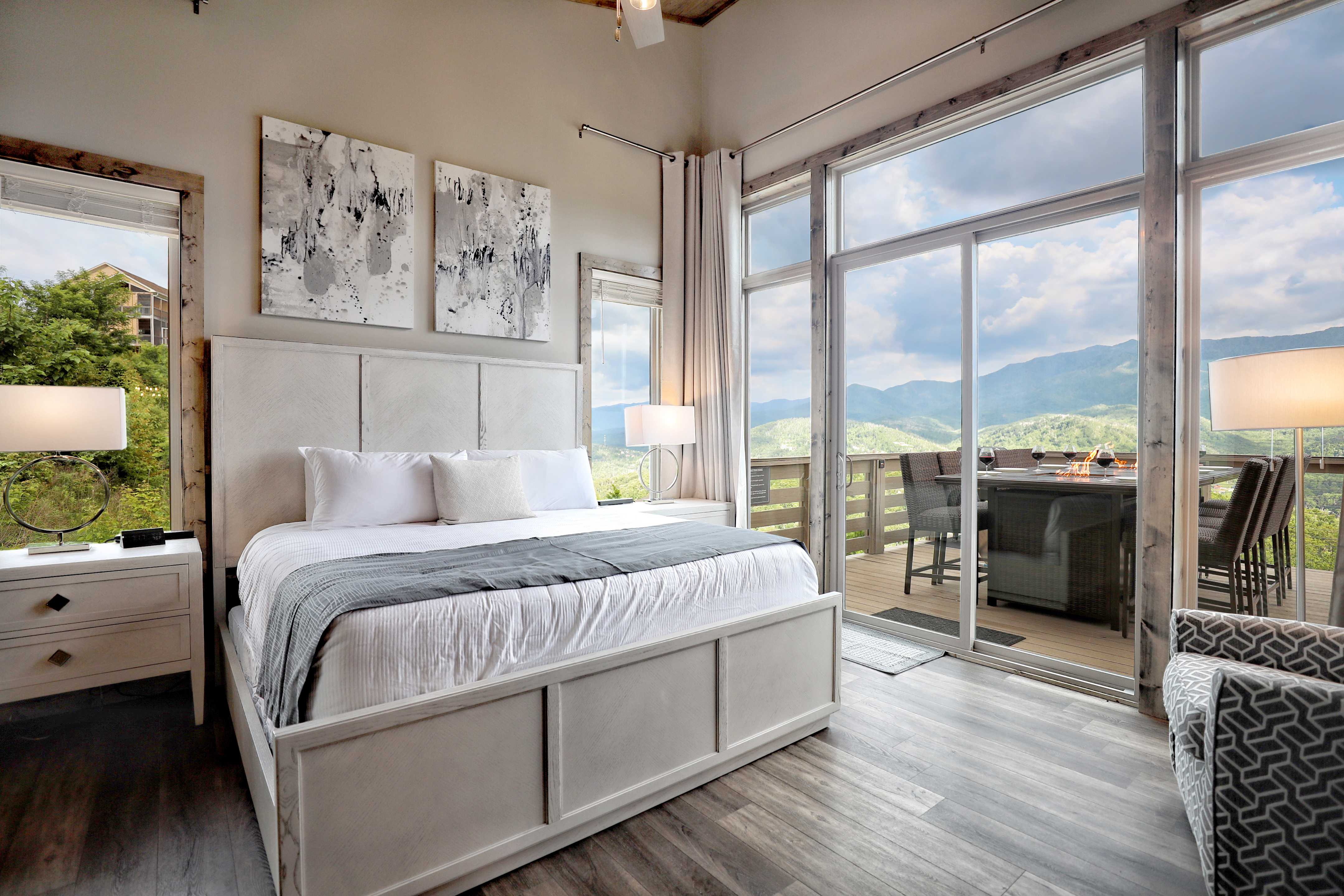 Welcome to Heaven's Skyline, where luxury meets the breathtaking beauty of the Smoky Mountains. This stunning 4-bedroom, 4-bathroom cabin is a modern mountain retreat, boasting panoramic views of the iconic Mt. LeConte from nearly every room. Step onto one of two expansive decks, complete with sleek cable railings, and immerse yourself in nature's grandeur. Enjoy al fresco dining by the fire, unwind in the hot tub, or gather around one of the two cozy fire pits. Inside, floor-to-ceiling windows and a grand stone fireplace create a warm, inviting atmosphere. Each of the four master suites offers a private fireplace and a luxurious ensuite bathroom, ensuring ultimate comfort. The open-concept living space flows seamlessly into a gourmet kitchen, perfect for entertaining. And for fun, the expansive game room will keep guests of all ages entertained. With close proximity to Gatlinburg and Pigeon Forge, Heaven's Skyline is not just a place to stay—it's an unforgettable experience.