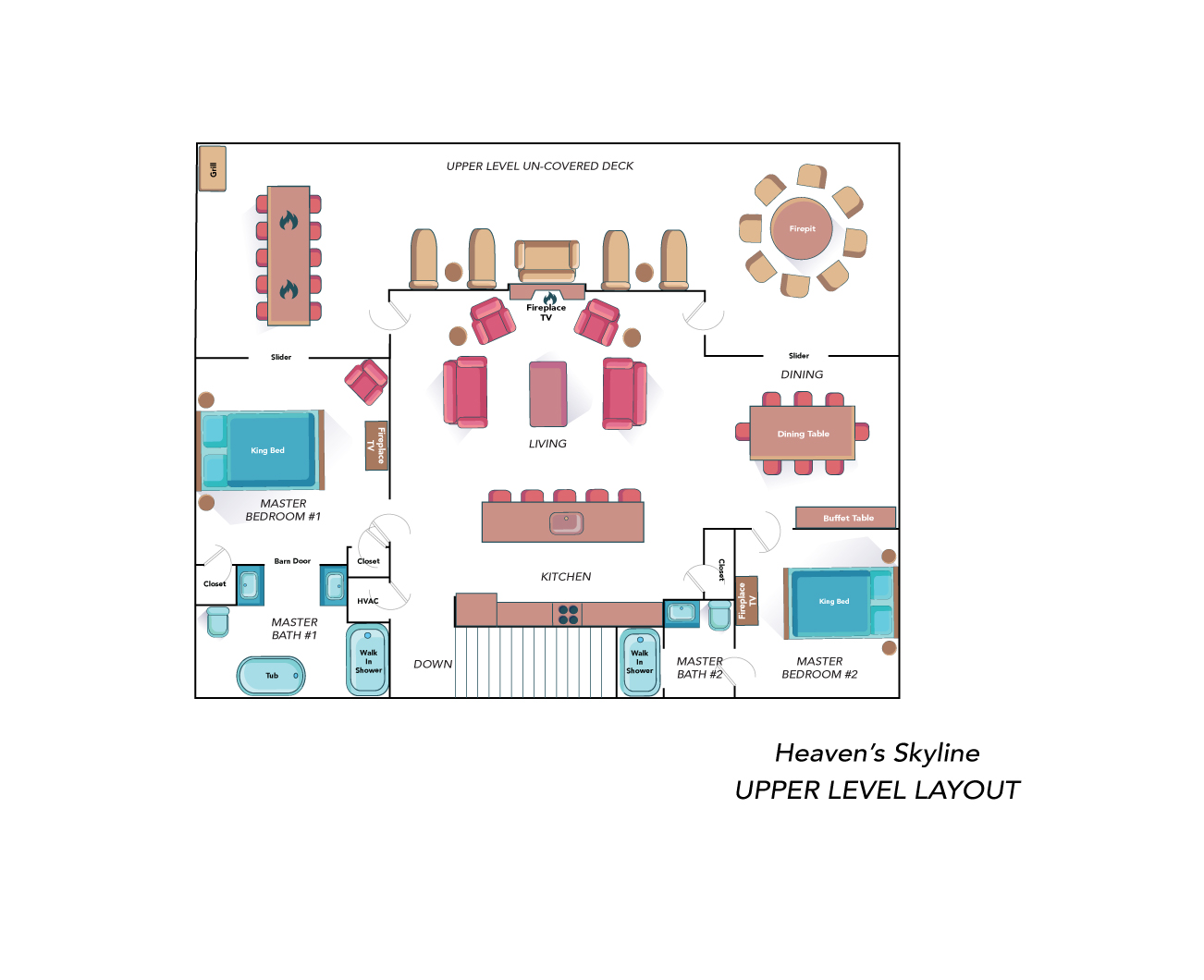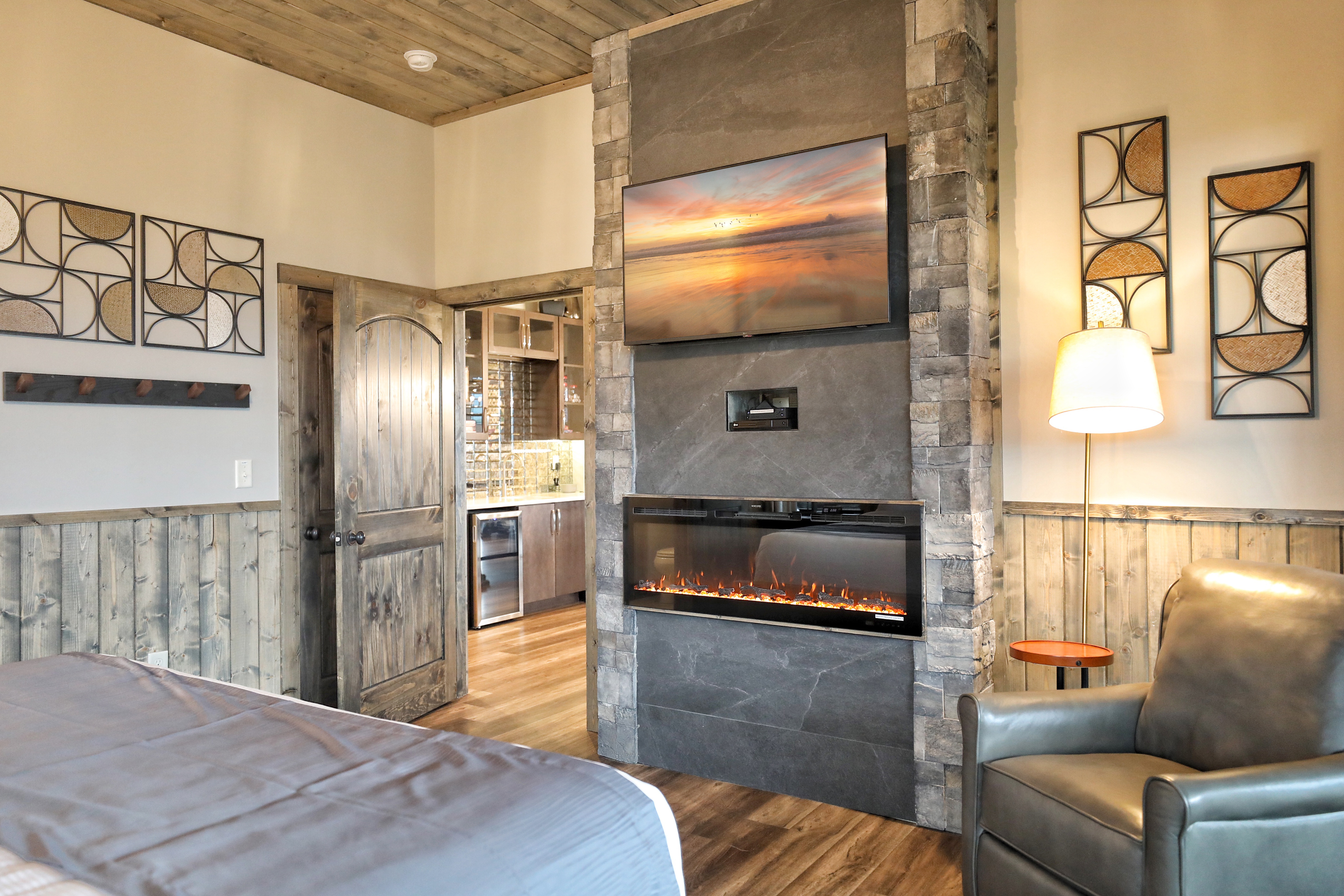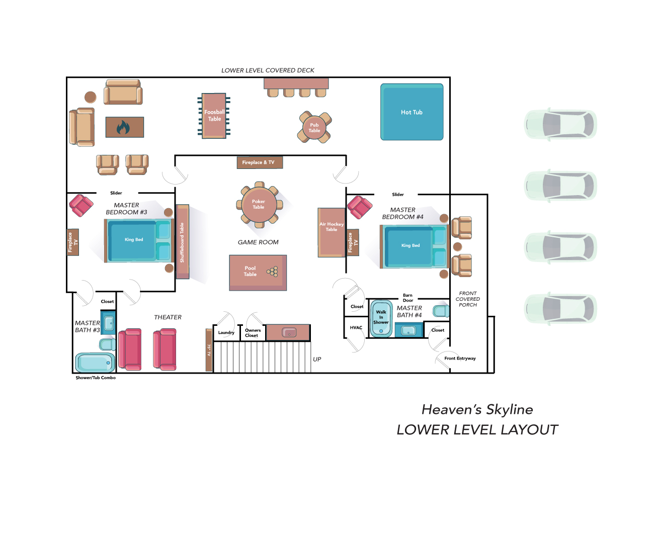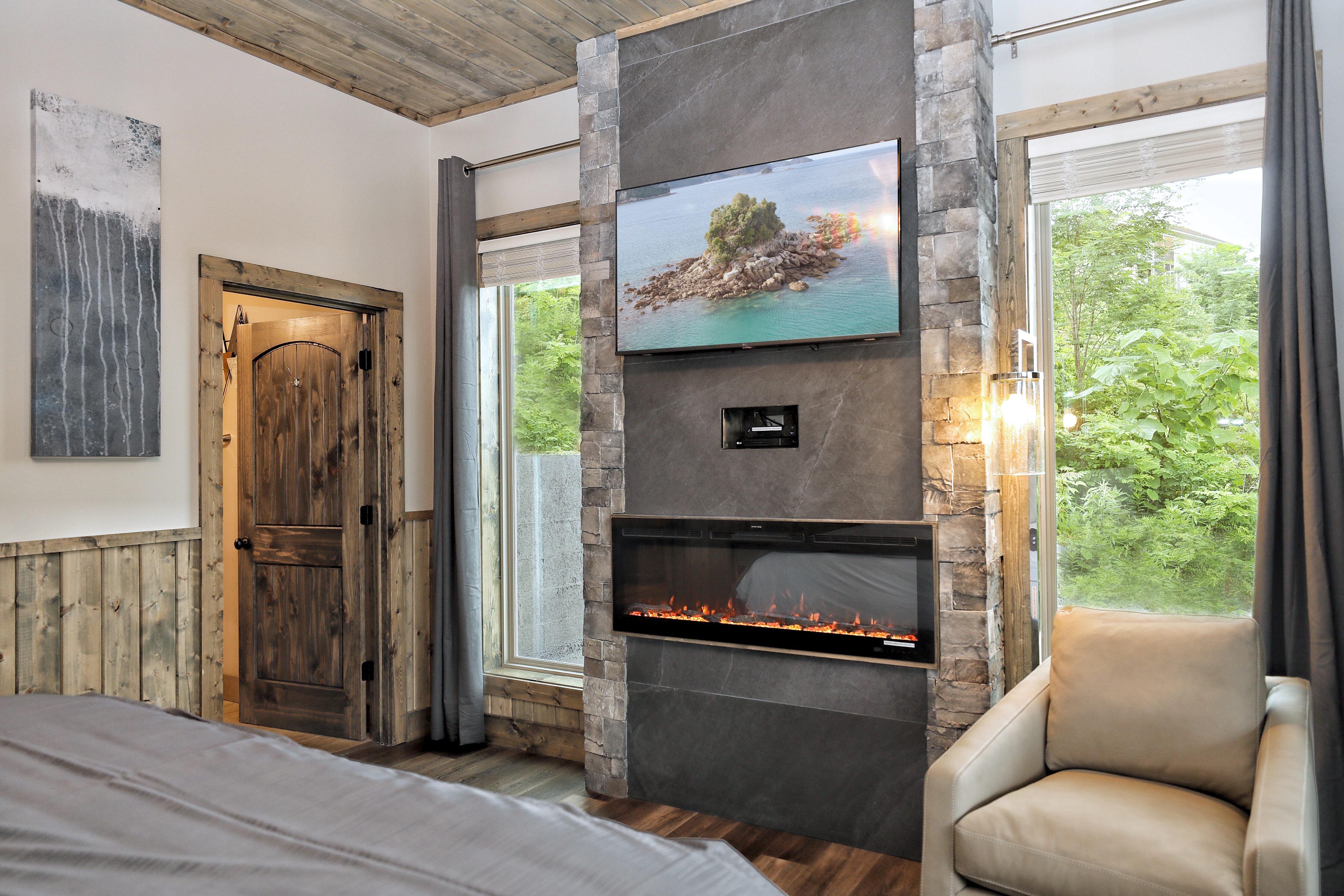 Welcome to Heaven's Skyline, where luxury meets the breathtaking beauty of the Smoky Mountains. This stunning 4-bedroom, 4-bathroom cabin is a modern mountain retreat, boasting panoramic views of the iconic Mt. LeConte from nearly every room. Step onto one of two expansive decks, complete with sleek cable railings, and immerse yourself in nature's grandeur. Enjoy al fresco dining by the fire, unwind in the hot tub, or gather around one of the two cozy fire pits. Inside, floor-to-ceiling windows and a grand stone fireplace create a warm, inviting atmosphere. Each of the four master suites offers a private fireplace and a luxurious ensuite bathroom, ensuring ultimate comfort. The open-concept living space flows seamlessly into a gourmet kitchen, perfect for entertaining. And for fun, the expansive game room will keep guests of all ages entertained. With close proximity to Gatlinburg and Pigeon Forge, Heaven's Skyline is not just a place to stay—it's an unforgettable experience.