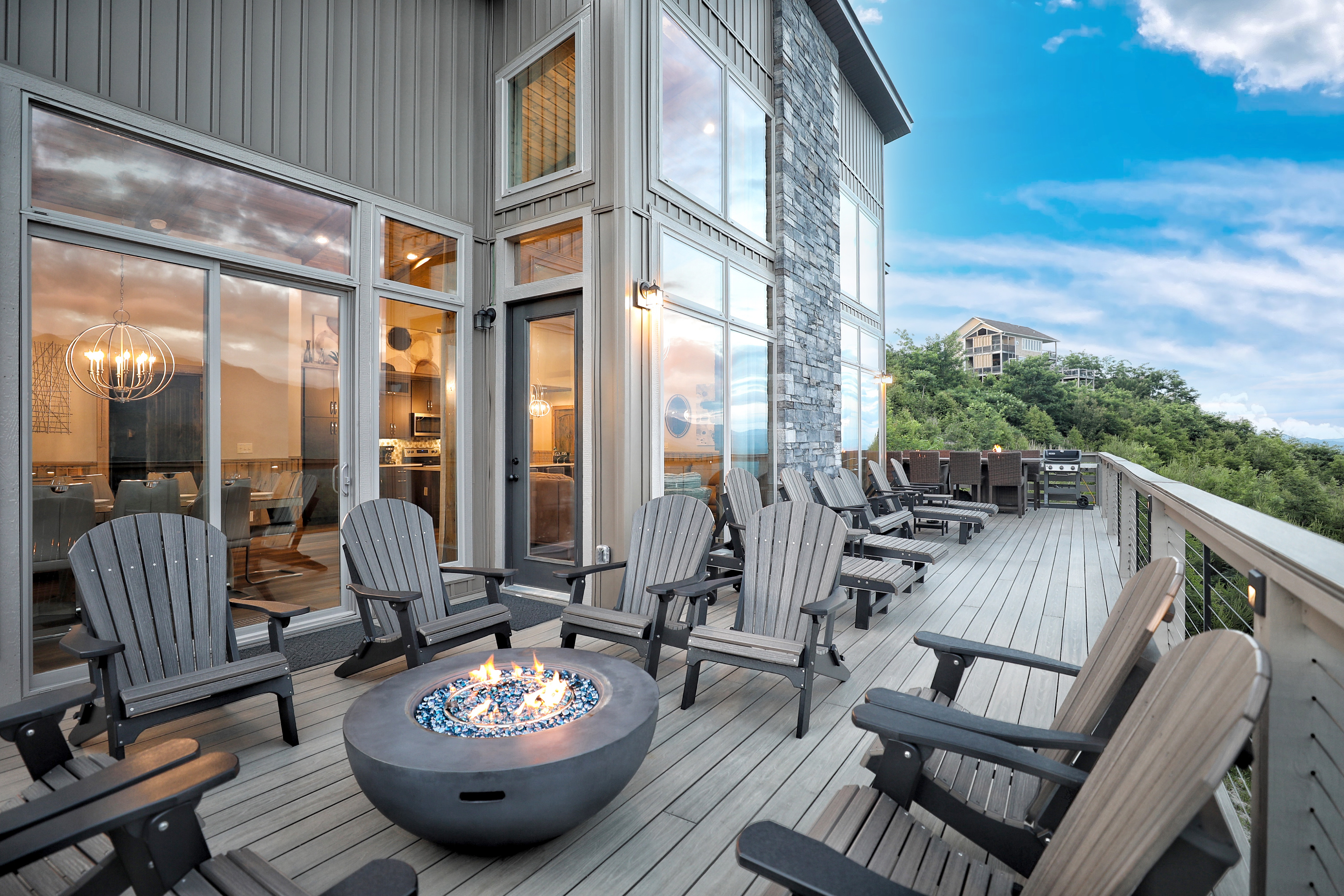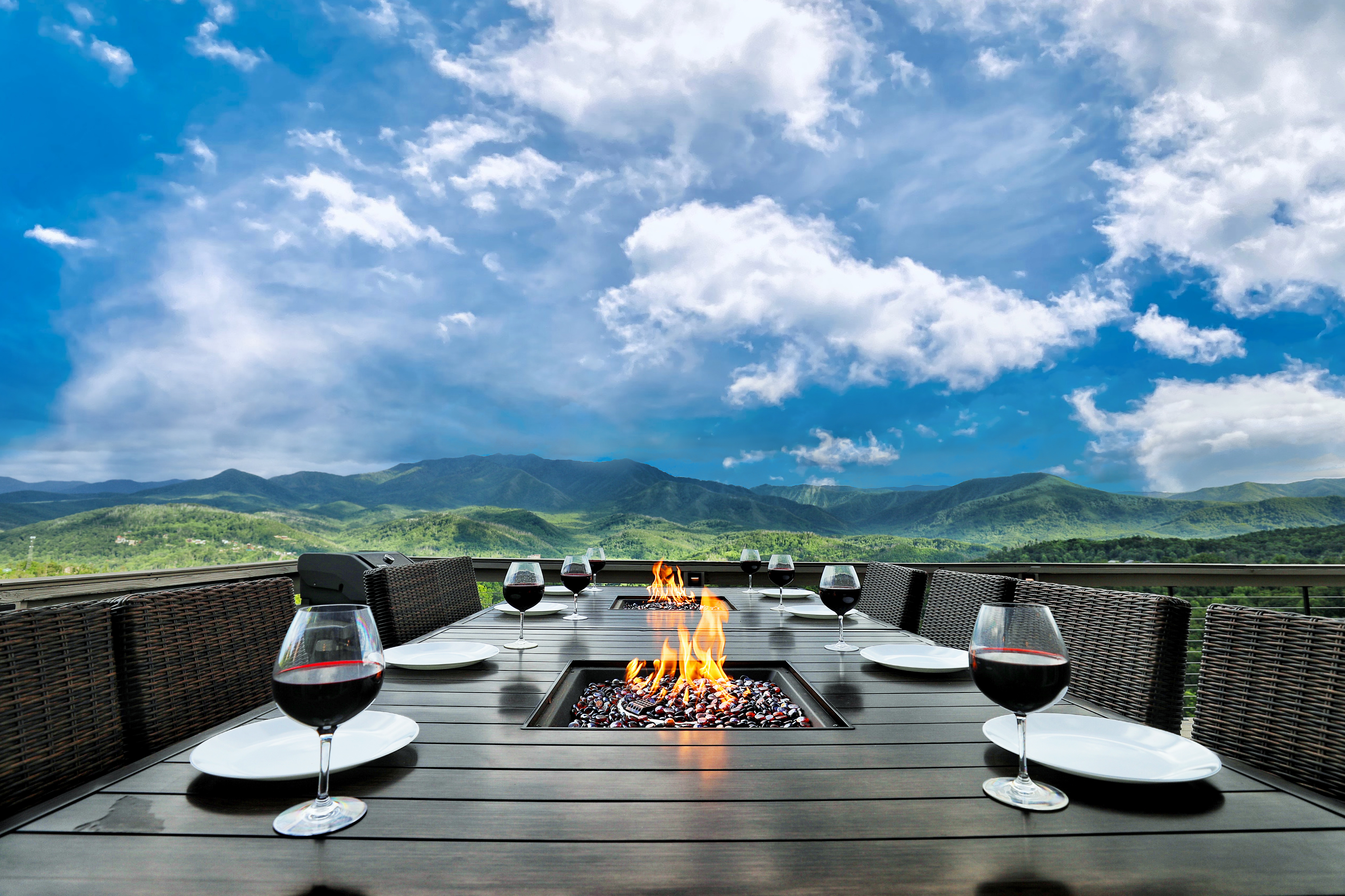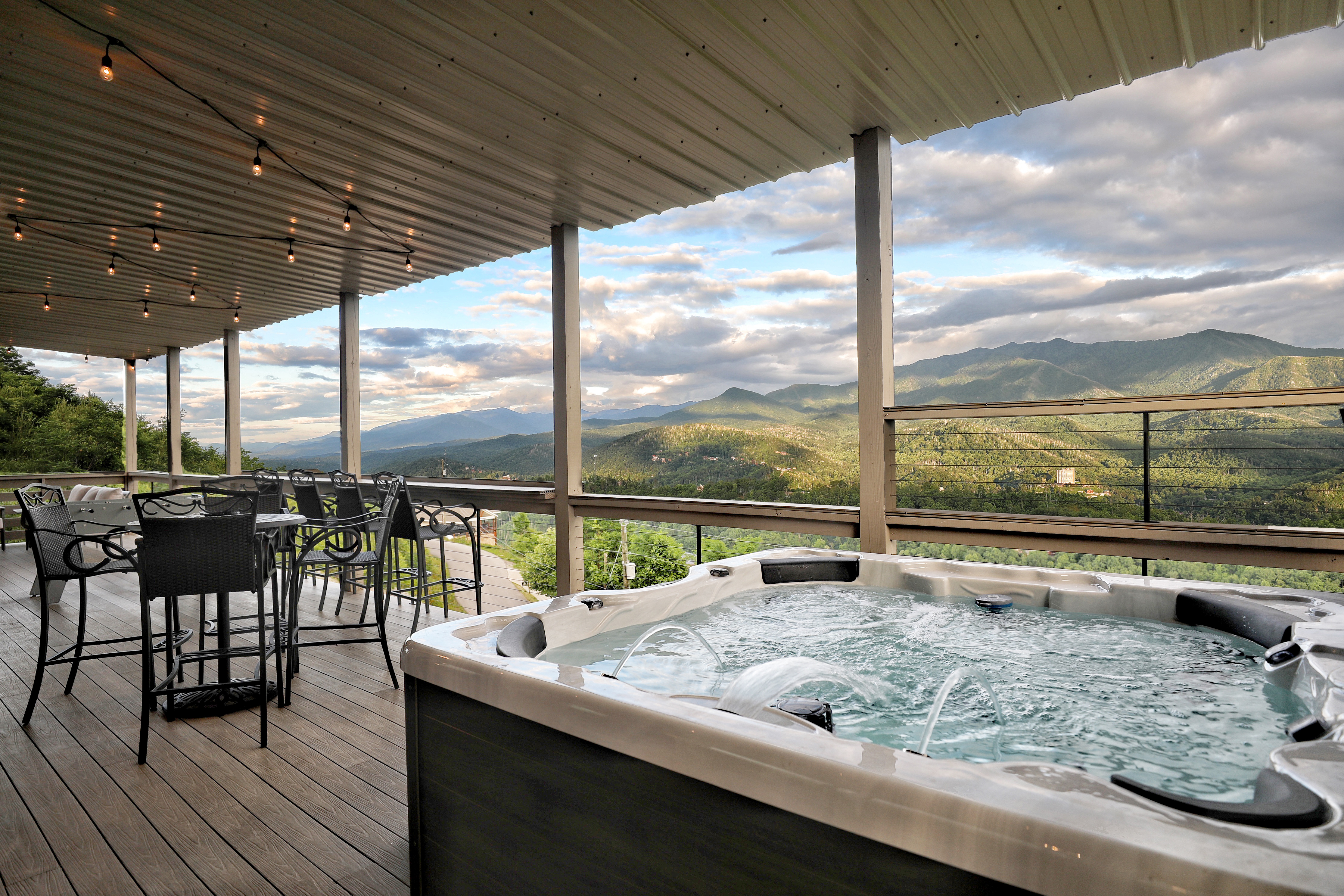 º AMENITIES: Hot tub, game room, fully stocked kitchen, fire pits, gas grill, ample outdoor seating, panoramic view.