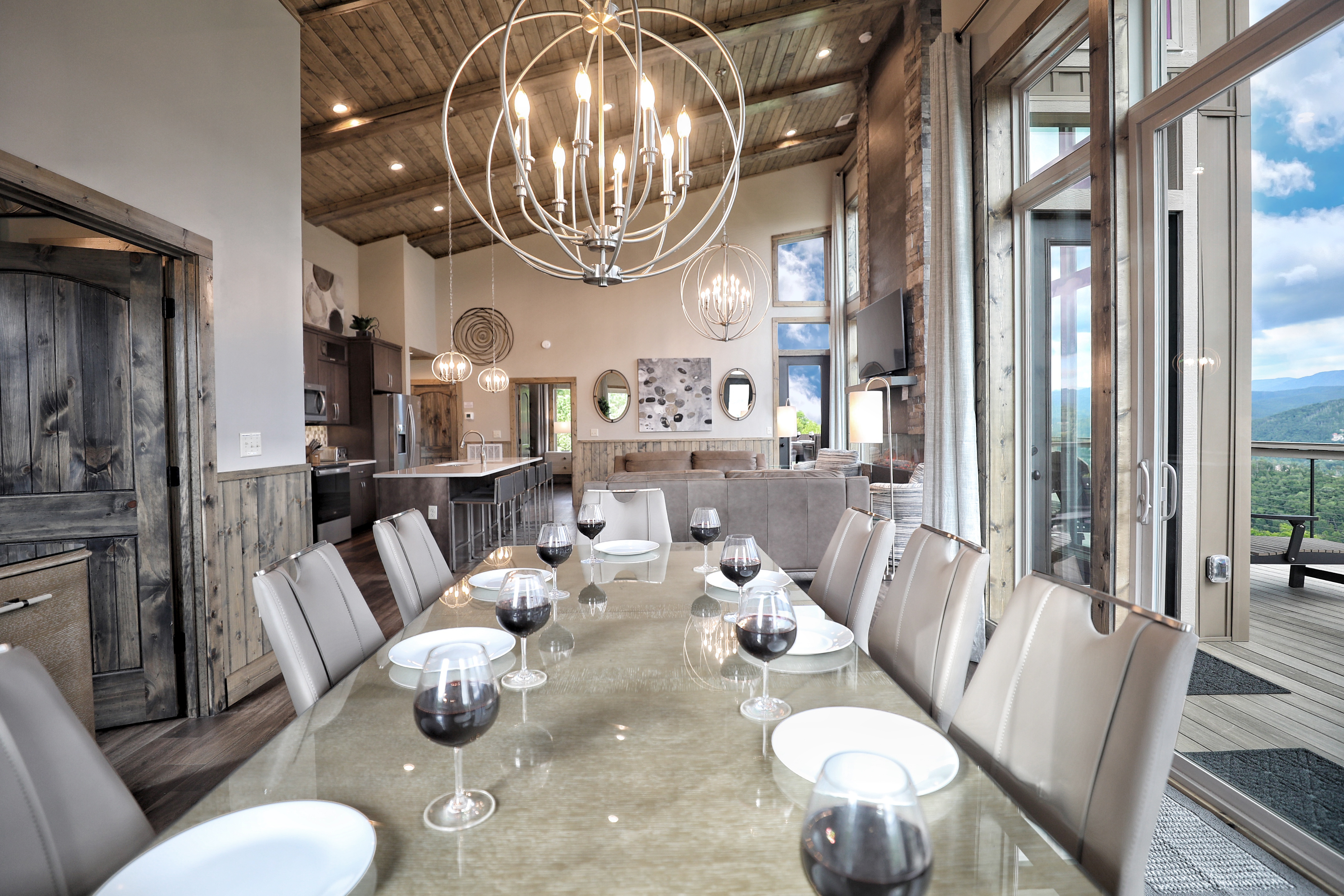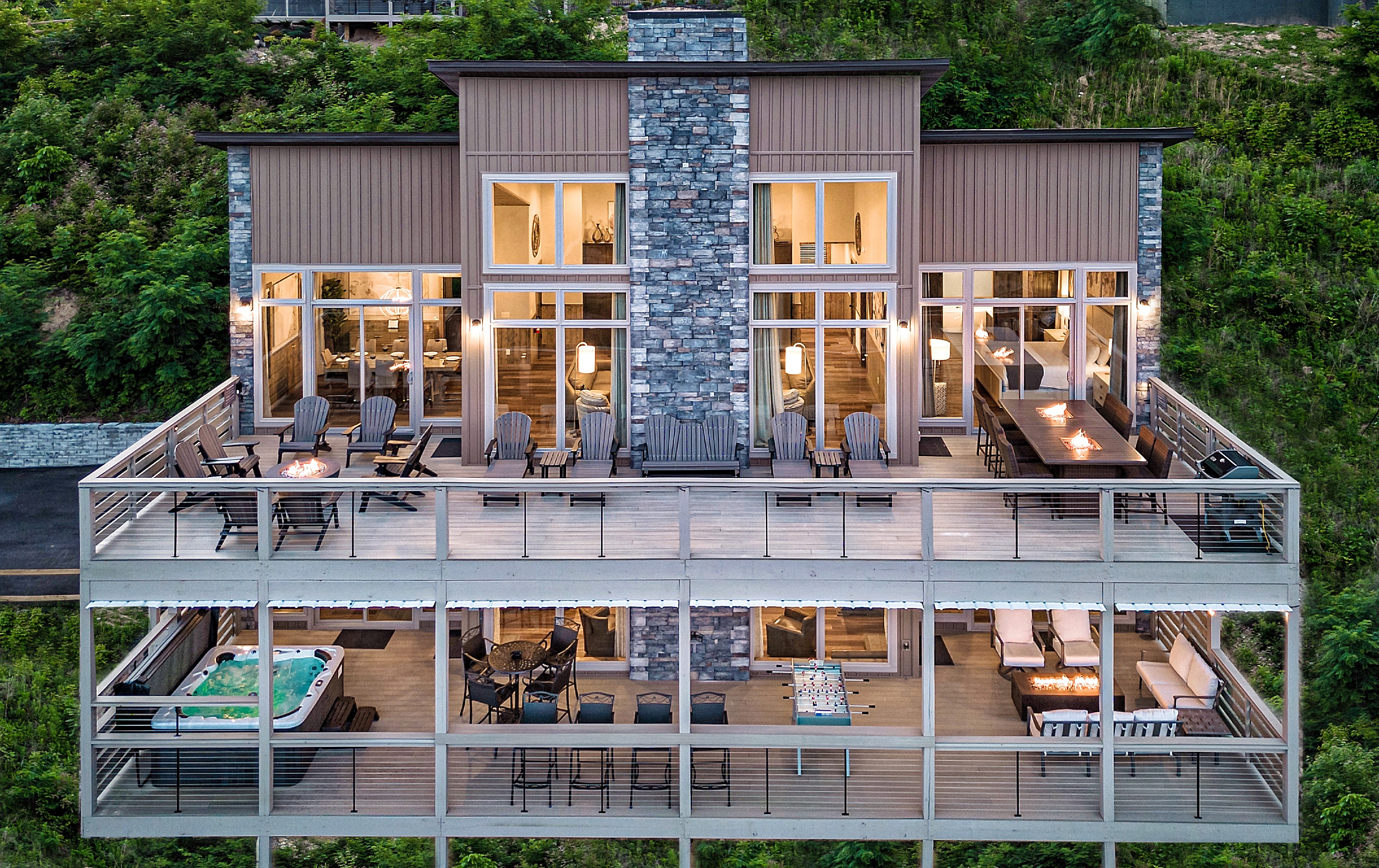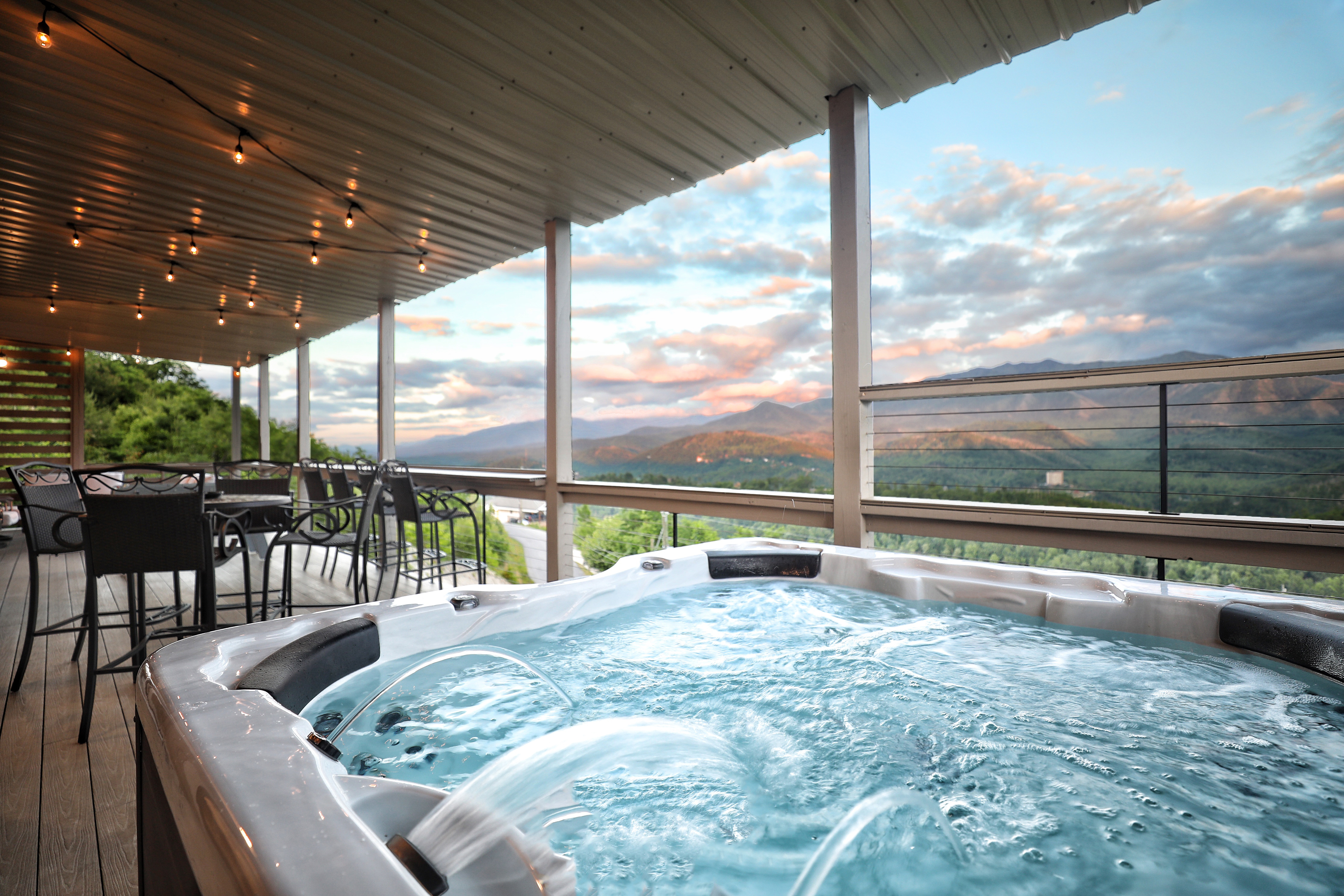 º AMENITIES: Hot tub, game room, fully stocked kitchen, fire pits, gas grill, ample outdoor seating, panoramic view.