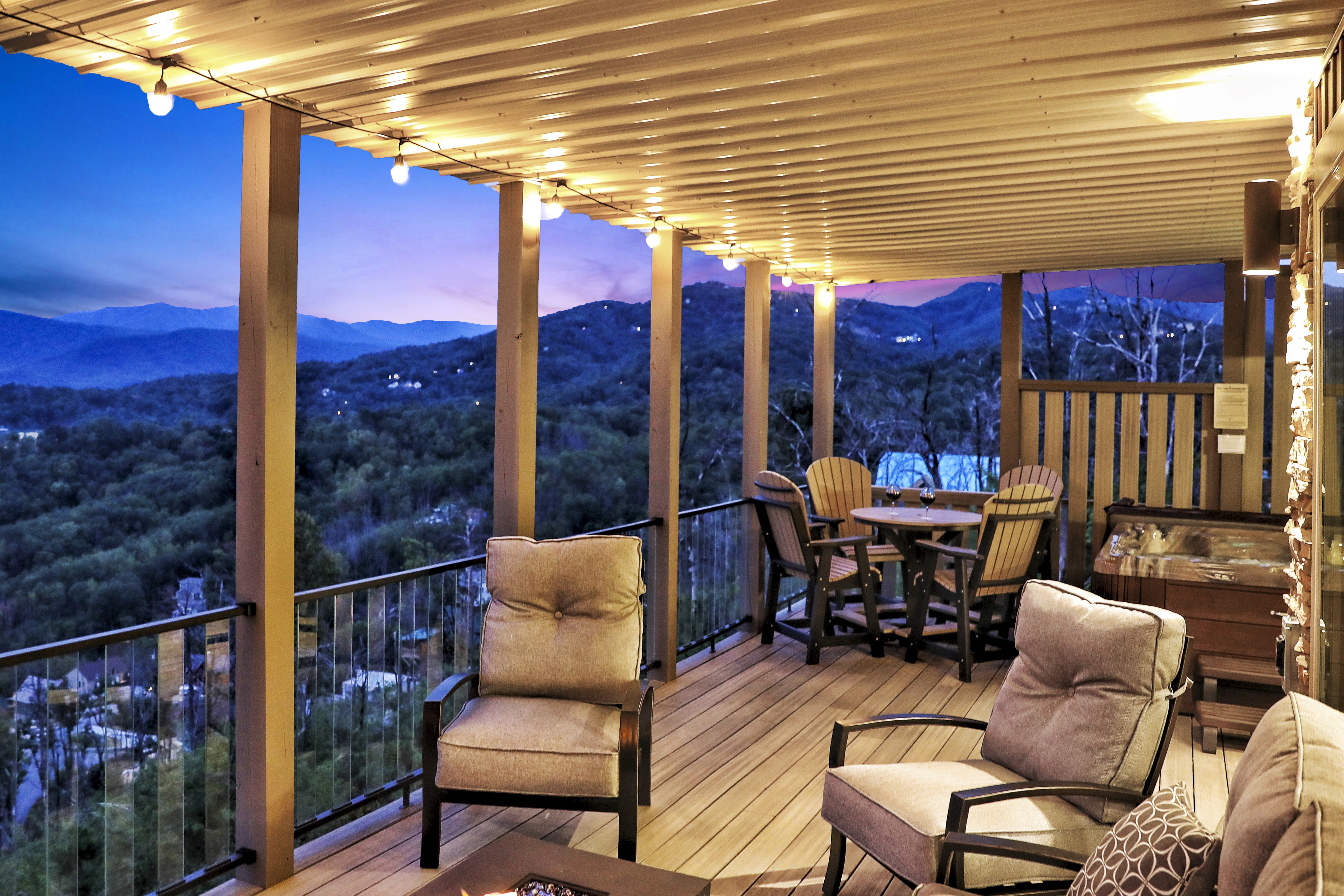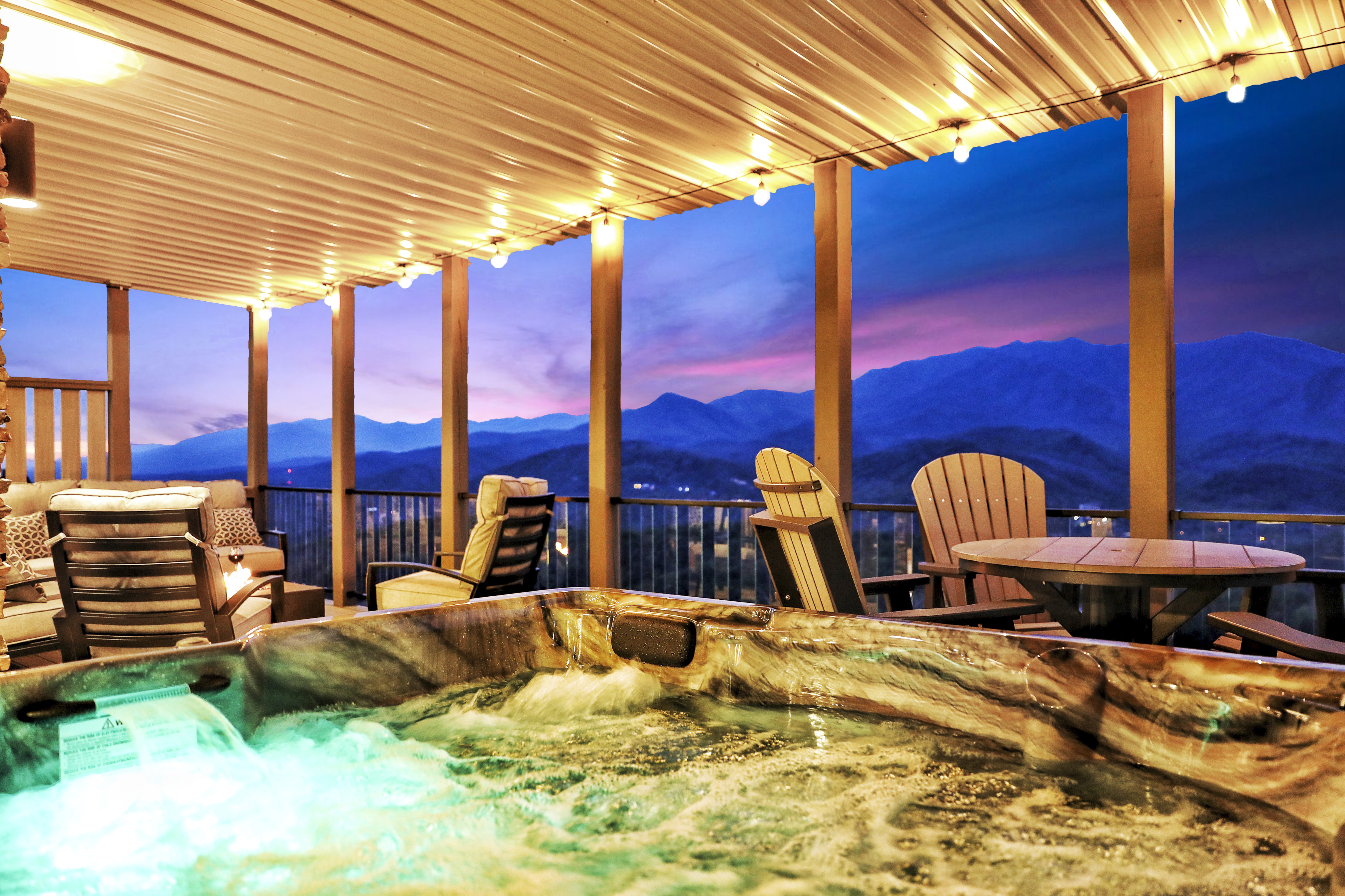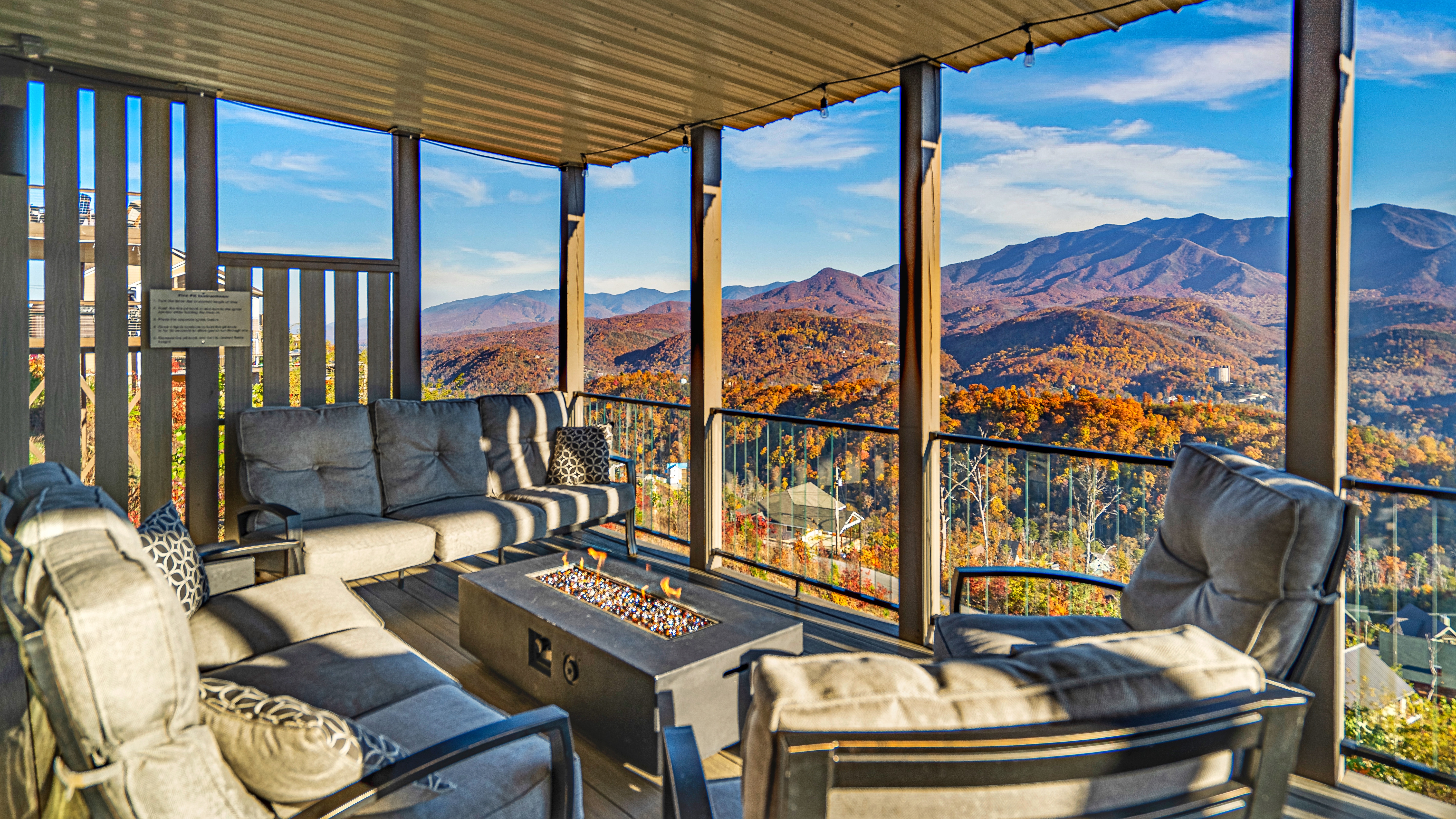 º AMENITIES: Hot tub, game room, fully stocked kitchen, fire pits, gas grill, ample outdoor seating, panoramic view.