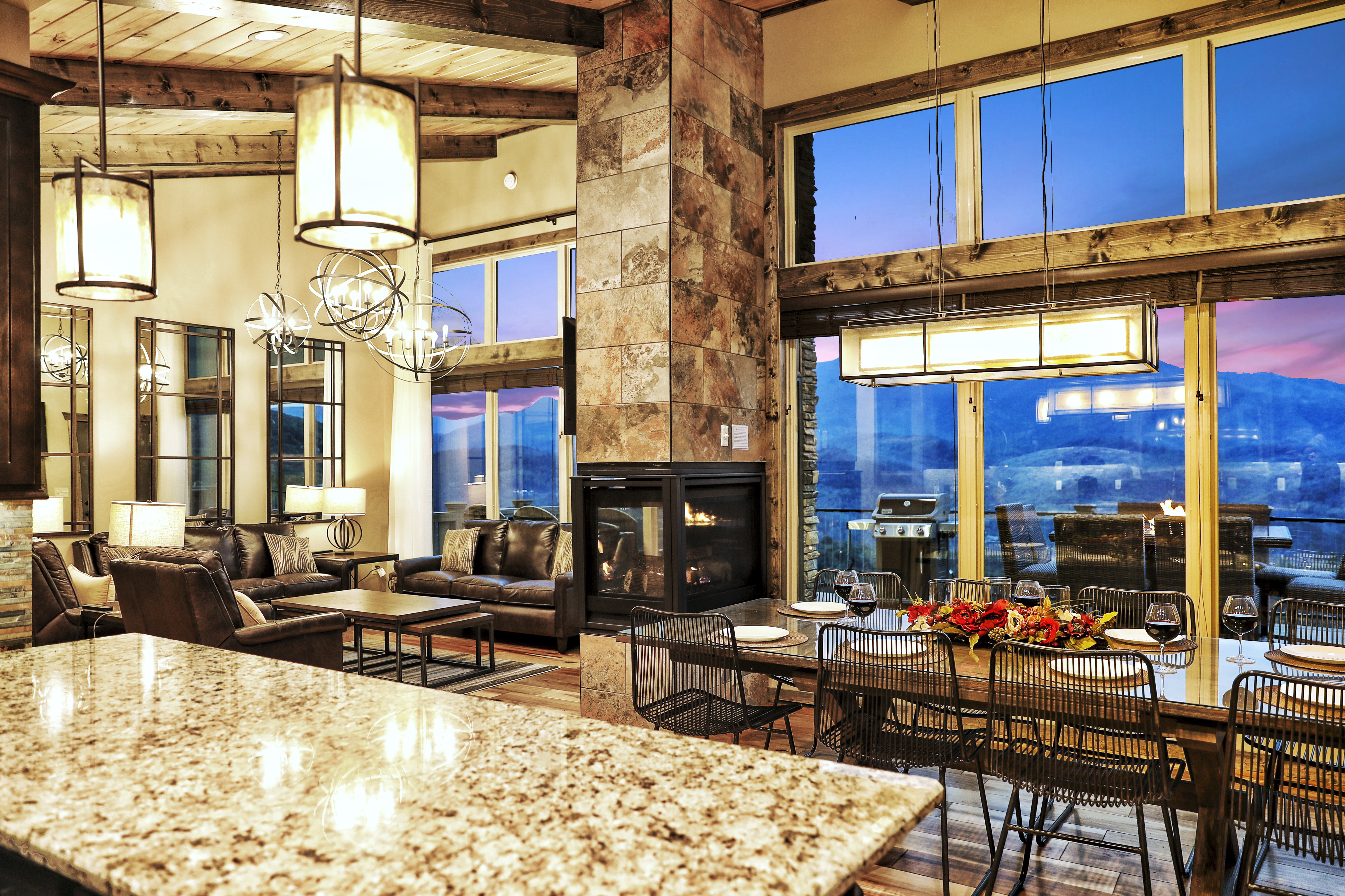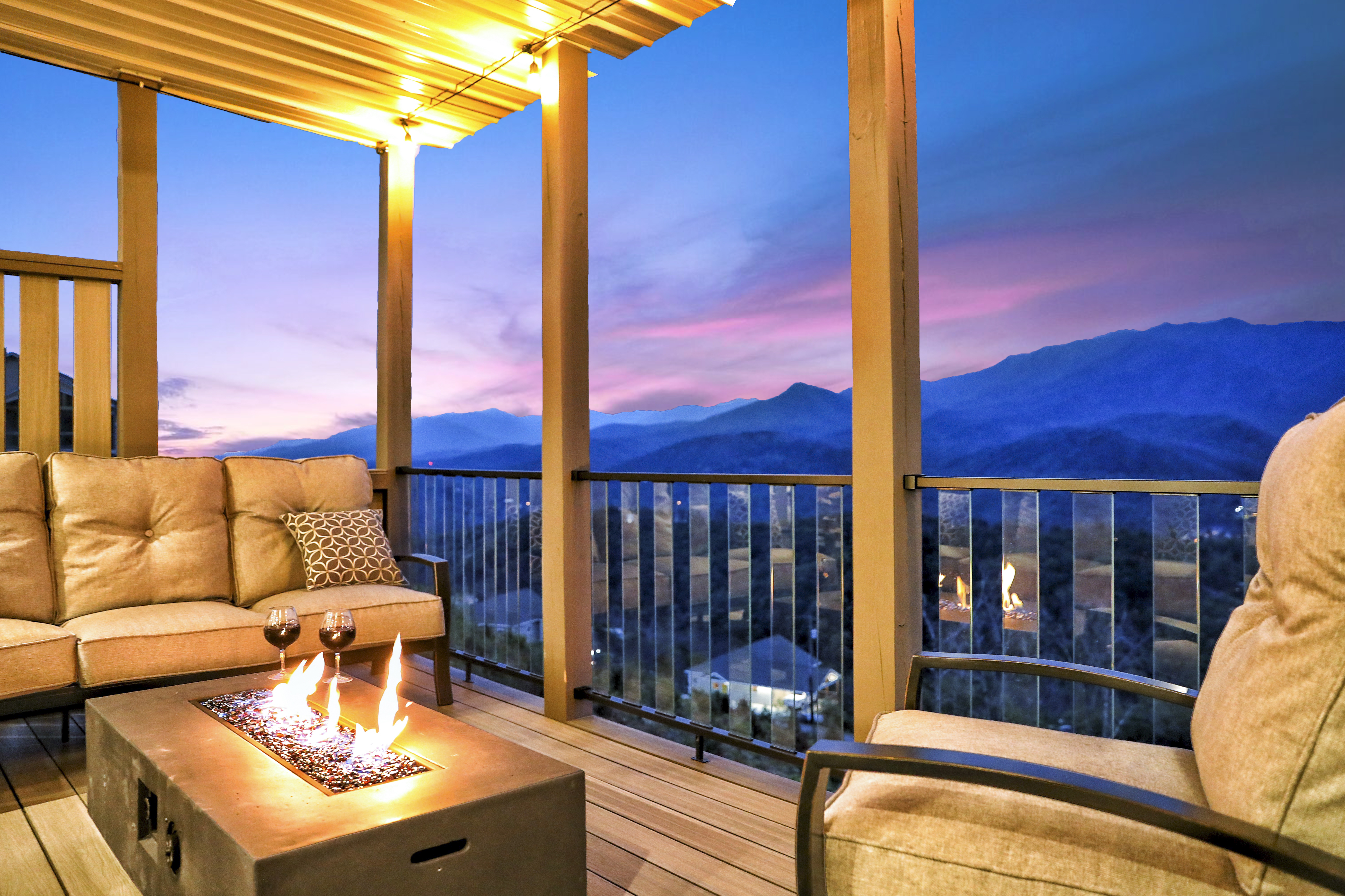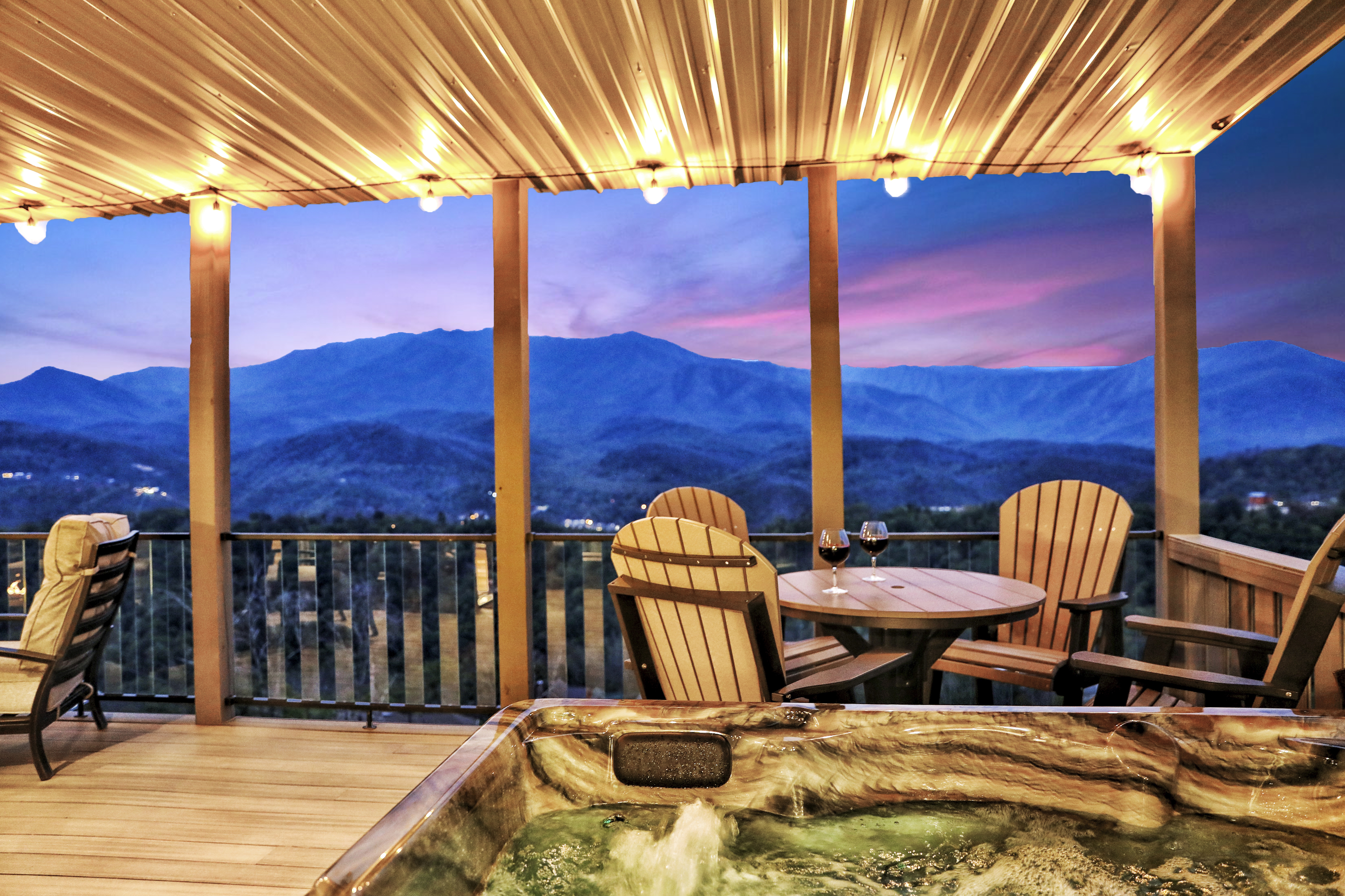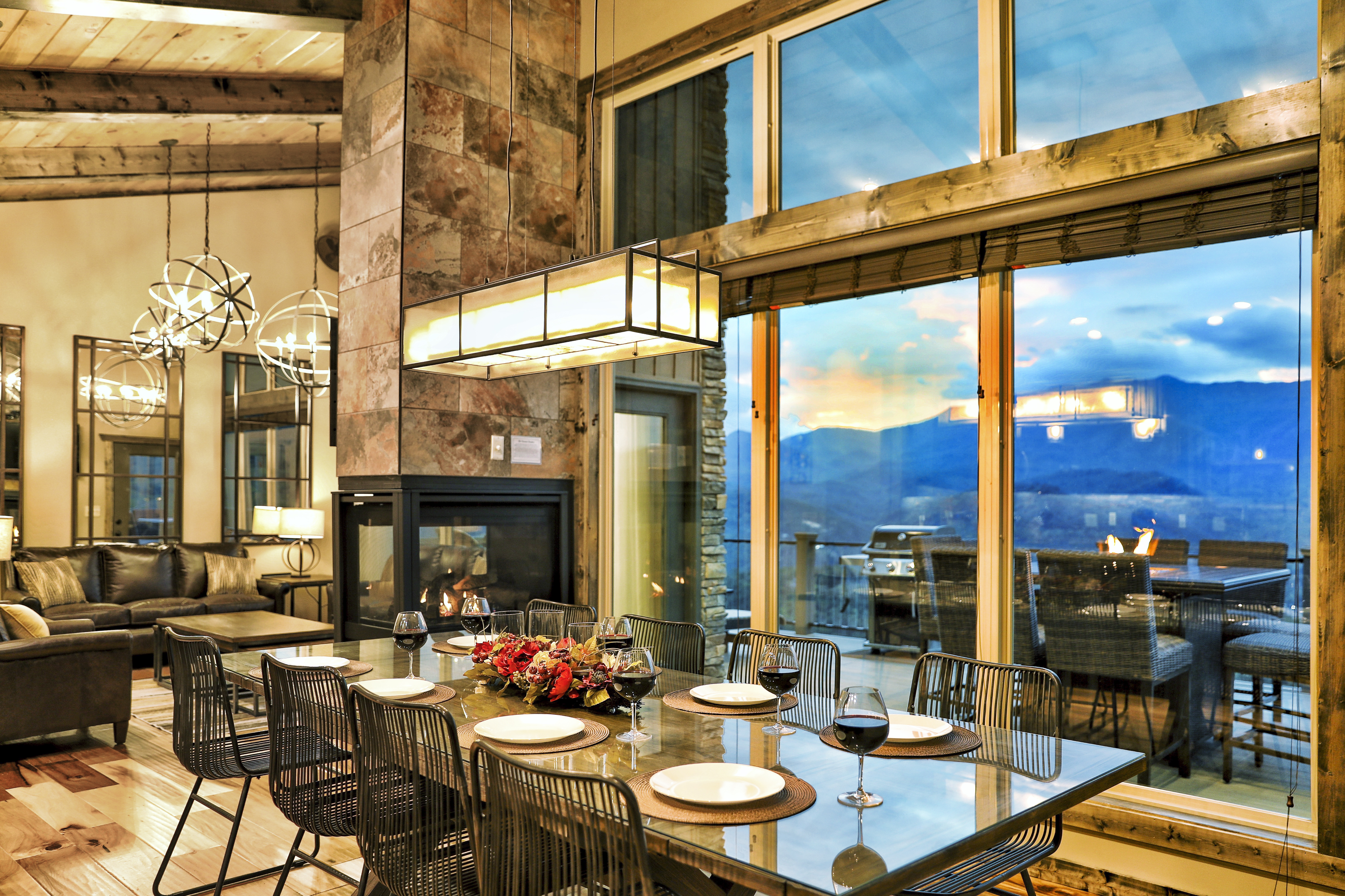 º AMENITIES: Hot tub, game room, fully stocked kitchen, fire pits, gas grill, ample outdoor seating, panoramic view.