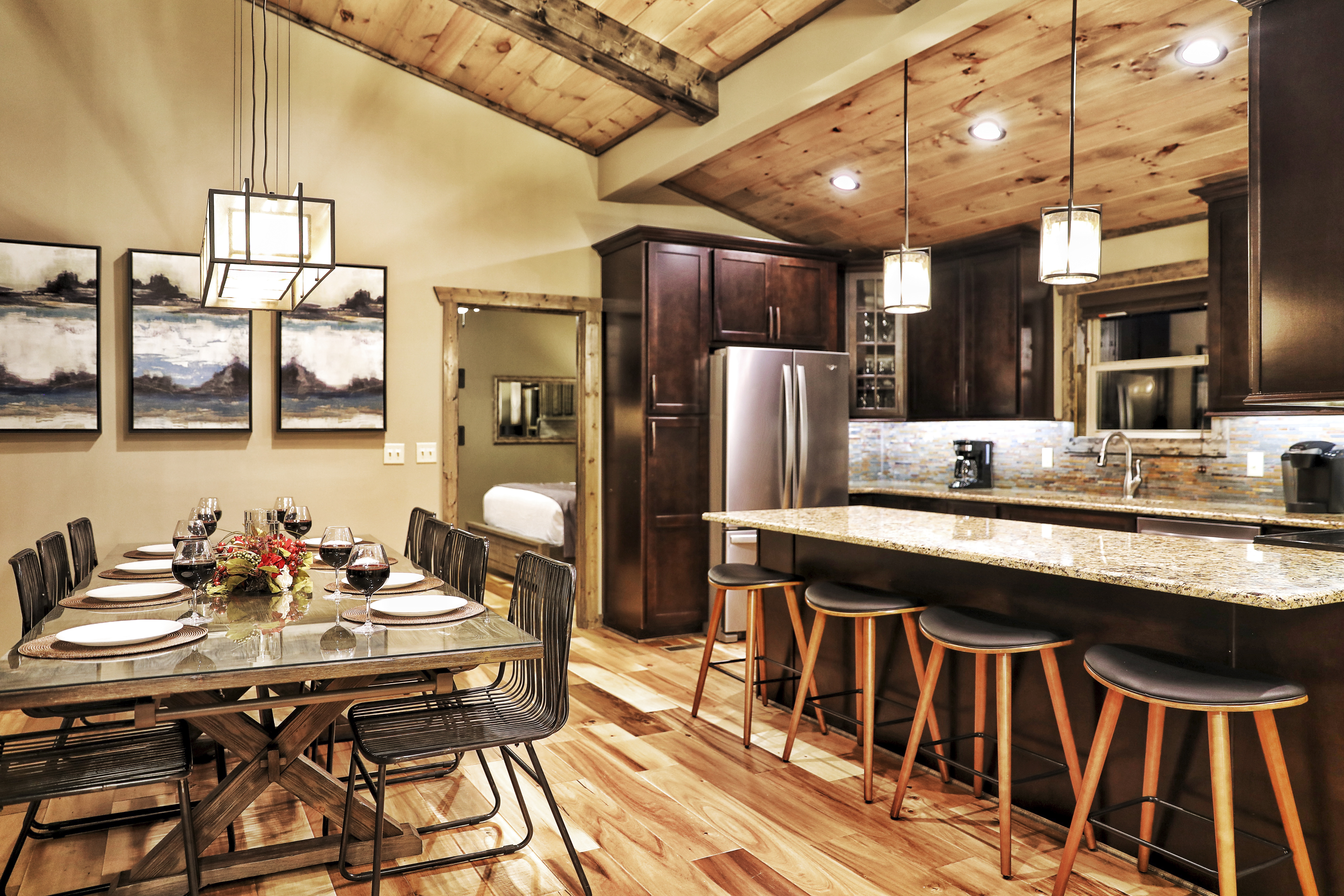 The views were fantastic from every room. We loved how the floorplan and room layouts made everybody feel like they equally got what they paid for. With everything inside the cabin we had absolutely no reason to leave. The only thing we were disappointed about was the fact that we had to leave, but hey time flies when you're having fun!- Adam G.