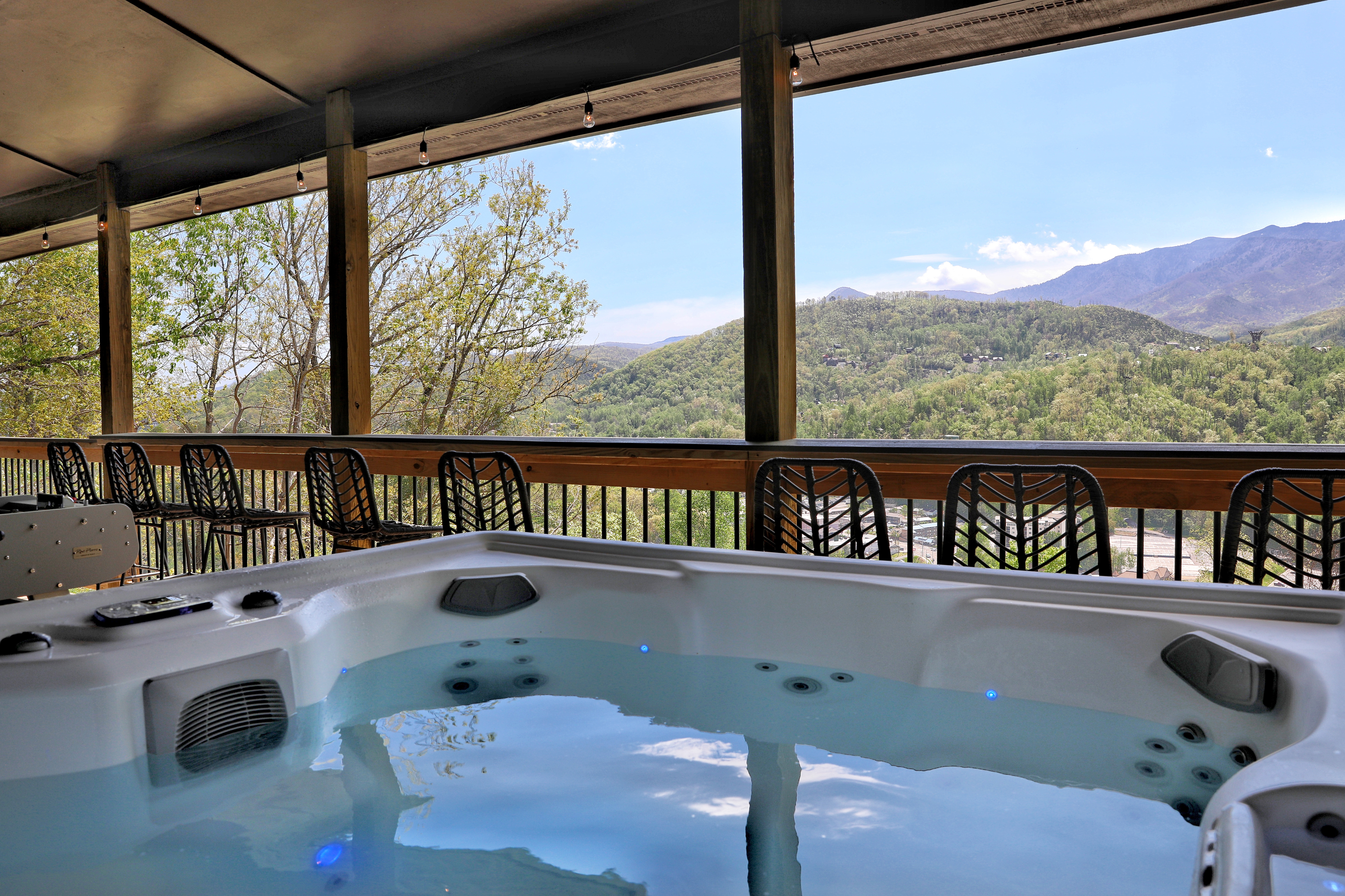 º AMENITIES: Hot tub, game room, fully stocked kitchen, gas grill, outdoor seating, private playground, 2 fire pits, outdoor electric fireplace and TV, Stunning view.