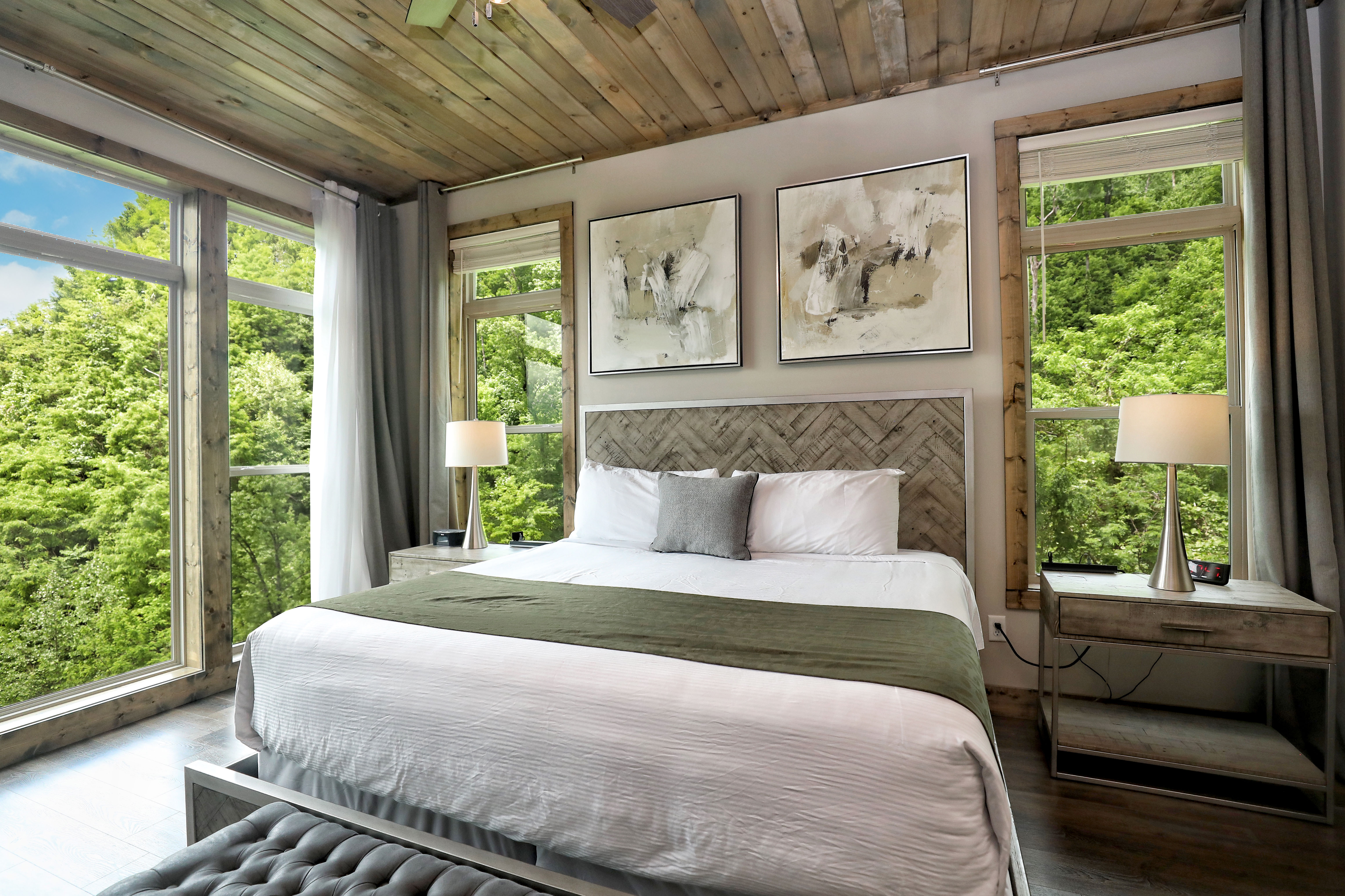 This cabin was spotless. Perfect for our couples retreat the beds/mattresses were very comfortable. The view was breathtaking as well. the noise from down below was not an issue for us at all. The name fits this cabin perfectly it was Truly Heavenly, we all give it a 10 out of 10.- Teressa B.