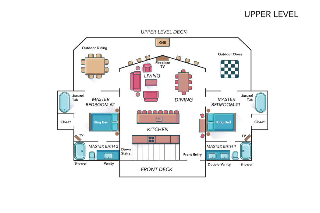 º FLOOR PLAN: The final 2 images in the photo gallery feature the cabin's floor plan.