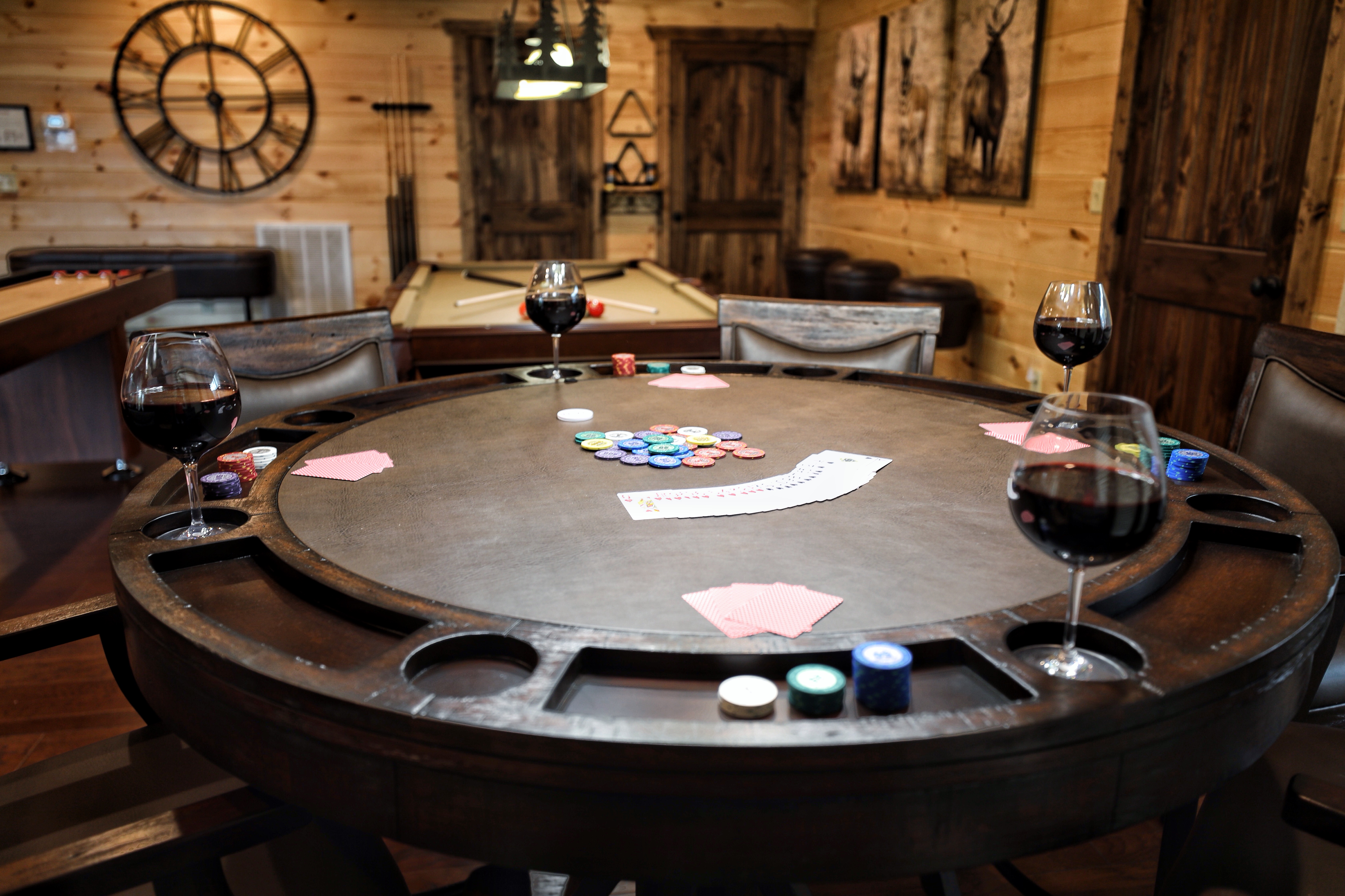 º ENTERTAINMENT: Game room with a poker table, billiards, shuffleboard, foosball, and a selection of board games.